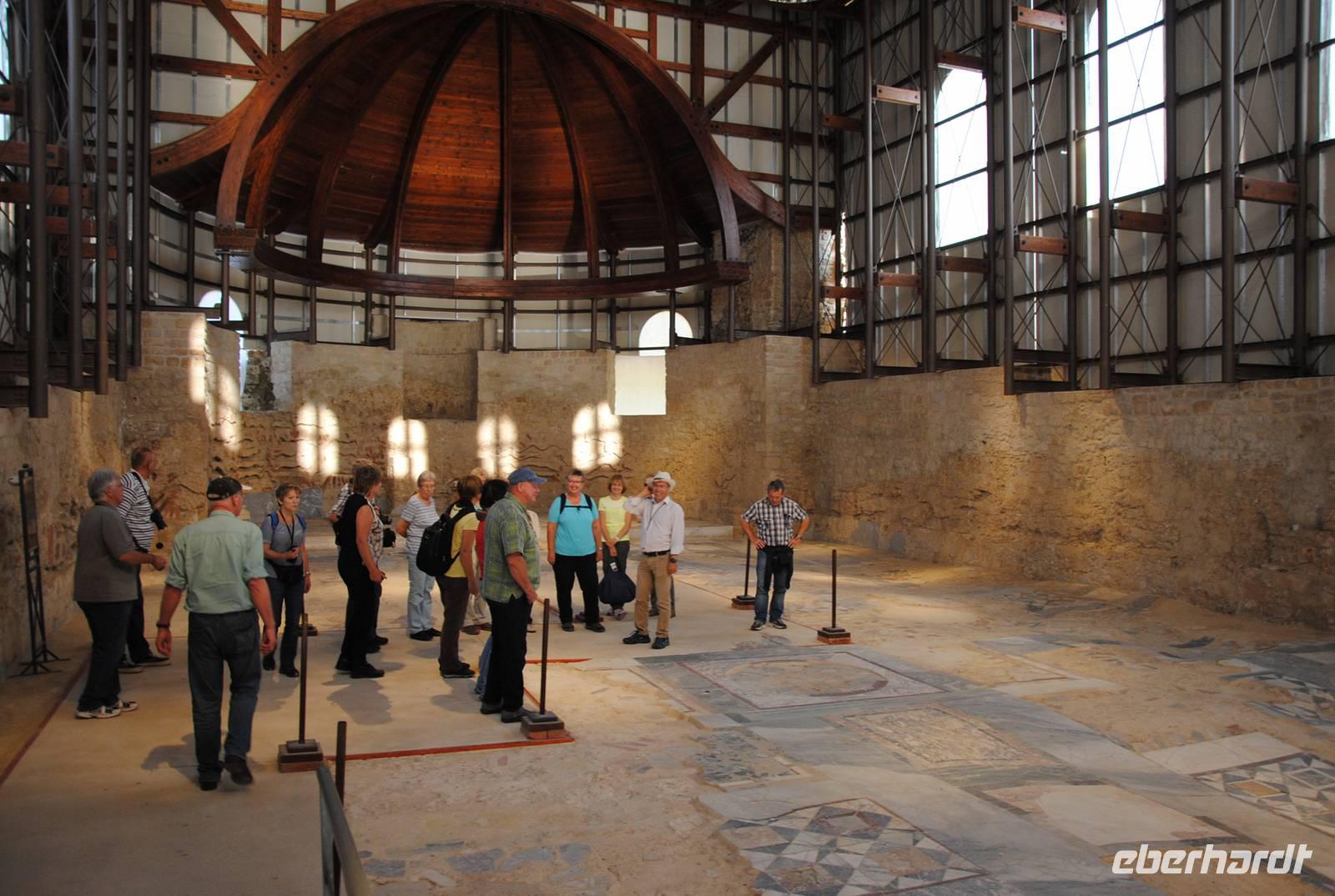 Auch heute wieder ein Hotelwechsel so dass wir erneut die Koffer packen mussten und anschließend nach dem Frühstück den Bus beluden. Danach machten wir uns auf ins Tal der Tempel bei Agrigent. Ein etwas missverständlicher Begriff, denn die Tempel stehen hoch auf dem Kamm der Hügelkette unmittelbar hintereinander gereiht. Neun der zehn Tempel sind heute noch gut erhalten. Darunter befinden sich u. a. der Hekrules-, Juno-, Jupiter- u. Concoriatempel. Seit 1997 Weltkulturerbe erhielten wir von Alberto viele Information zu den verschieden Bauweisen und Funktionen. Dennoch manchmal braucht es schon etwas Phantasie um sich die gigantischen Bauwerke, von denen manchmal nur Fragmente vorhanden sind vorzustellen. Da war es oft Hilfreich, wenn dies durch Bilder deutlich gemacht wurde. Danach machten wir uns auf nach Sant' Angelo Muxaro. In Begleitung von Filippo, einem Einheimischen von örtlichen Kooperative erkundeten wir den Ort. Schön waren die Stopps an Käserei und Bäckerei, bzw. in der Krippenausstellung bzw. beim Korbmacher. Umso schöner war es dann Mittag, dass wir so manche Leckerei zusammen mit dem sizilianischen Wein genießen konnten. Am frühen Nachmittag erreichten wir unser Hotel in Mazzara del Vallo. Der Ort, eine angenehme Kleinstadt mit wenig Touristen, ist überwiegend barock geprägt. Sehenswert ist z. B. die Kirche am Hauptplatz. Sie ist schon von außen ein Augenschmaus. Kleine Gassen, die immer wieder von bunten Mosaikfließen durchzogen sind laden direkt zu einem Spaziergang ein. Einige unternahmen diesen nach dem guten Abendessen.