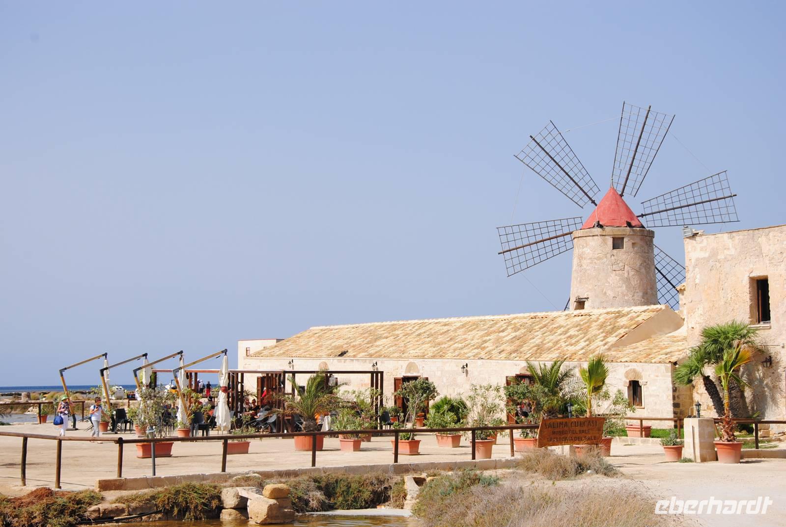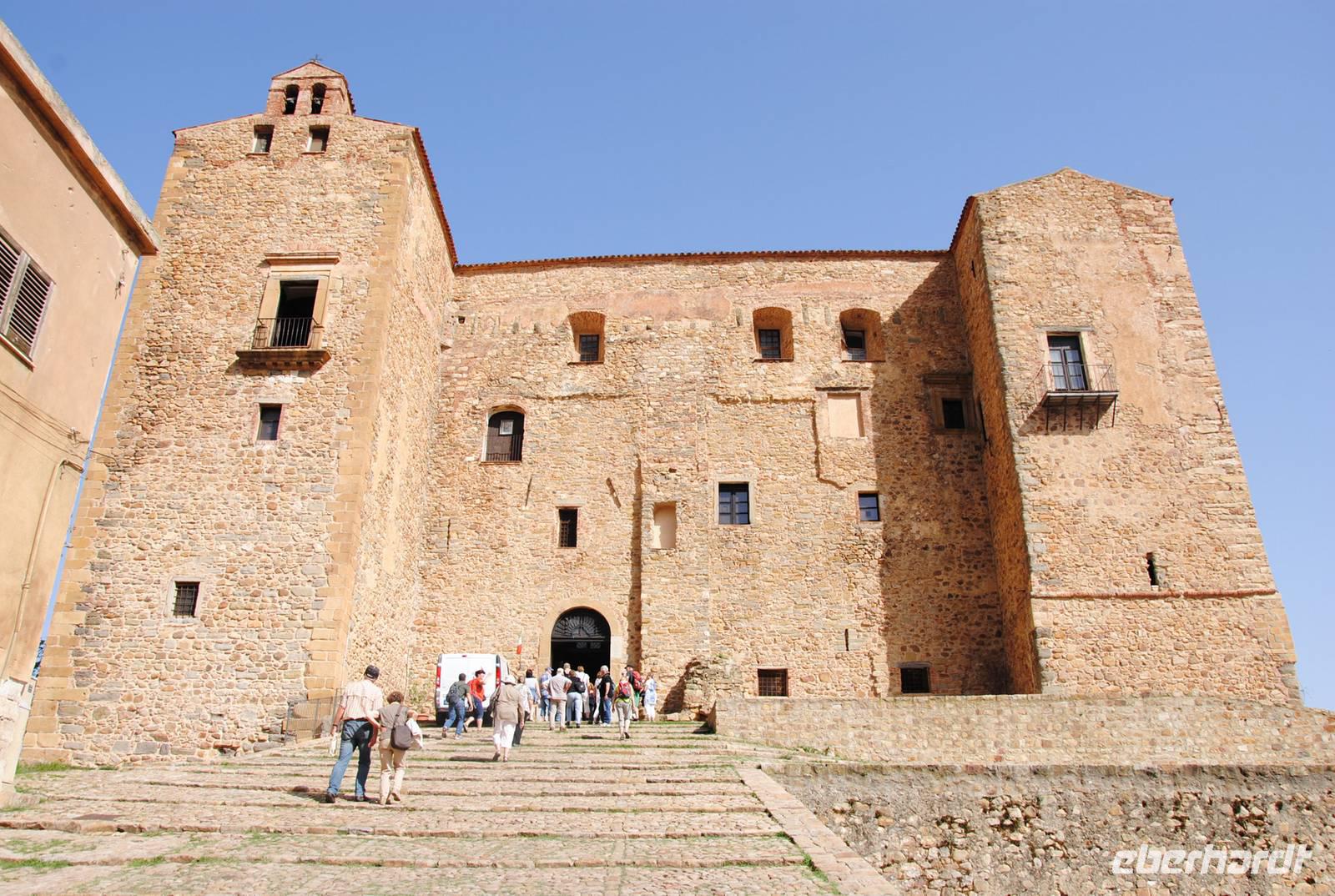 Koffer packen gehört wie das „Amen" in der Kirche eben zu einer Rundreise. So hatten wir heute wieder einen Hotelwechsel, der mit dem üblichen morgendlichen Procedere verbunden war. Alles war verstaut und dann ging es los auf den Spuren der Griechen. In Selinunte besuchten wir eine der größten archäologischen Ausgrabungsstätten Europas. Der Ort verdankt seinen Namen dem wilden Sellerie, der reichlich in den Tälern wuchs und heute nur noch selten vorkommt. Diese immergrüne Pflanze war schon Apollon heilig und auch auf selinuntinischen Münzen ist dieses Gewächs verewigt. So durchsteiften wir das Ausgrabungsgelände und das ABC erlernten wir erneut anhand der Bezeichnungen der Tempel. U. a. galt es den Tempel der Akropolis, die Säulen des Tempel E bzw. die gewaltigen Trümmer des Apollon-Tempels zu besichtigen. Auch hier waren wieder viel Phantasie und Vorstellungskraft gefragt. Aber dank der Erläuterungen von unserem Reiseführers Alberto gelang dies. Nach so vielen imposanten Eindrücken setzten wir die Fahrt in Richtung Westen der Insel fort. Vorbei an den Windmühlen und den Salzgewinnungsbecken gelangten wir zum Salinenmuseum bei Trapani, welches sich dort, neben dem Naturresevat für europäische Zugvögel auf dem Weg nach Afrika, befindet. Dort nahmen wir ein Mittagessen mit vielen Köstlichkeiten der Region ein. Einige hatten auch noch Zeit für die Besichtigung des Museum. Dann ging es gestärkt aber weiter nach Eric. Schon von weitem war der Anblick der „Stadt auf dem Berg" sehr beeindruckend. Zu Fuß ging es hinauf in die den Kern der mittelalterlichen Stadt. Hier hatten wir Zeit für eigene Erkundungen. Vielleicht noch Postkarten oder ein Eis oder doch mal das Mandelgebäck probieren, für das der Ort so bekannt ist. Alle hatte die Zeit gut genutzt und so ging es in Richtung Hotel, das in Campolfelice di Roccella lag. Nach dem Bezug der Zimmer ging es zum Abendessen und ein weiter Tag mit vielen Erlebnissen ging zu Ende.