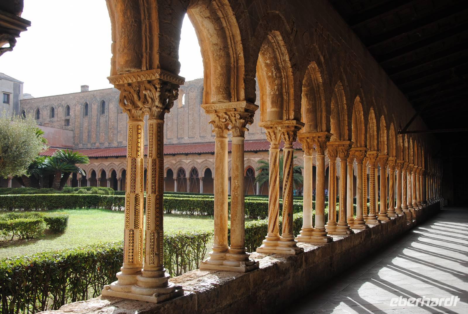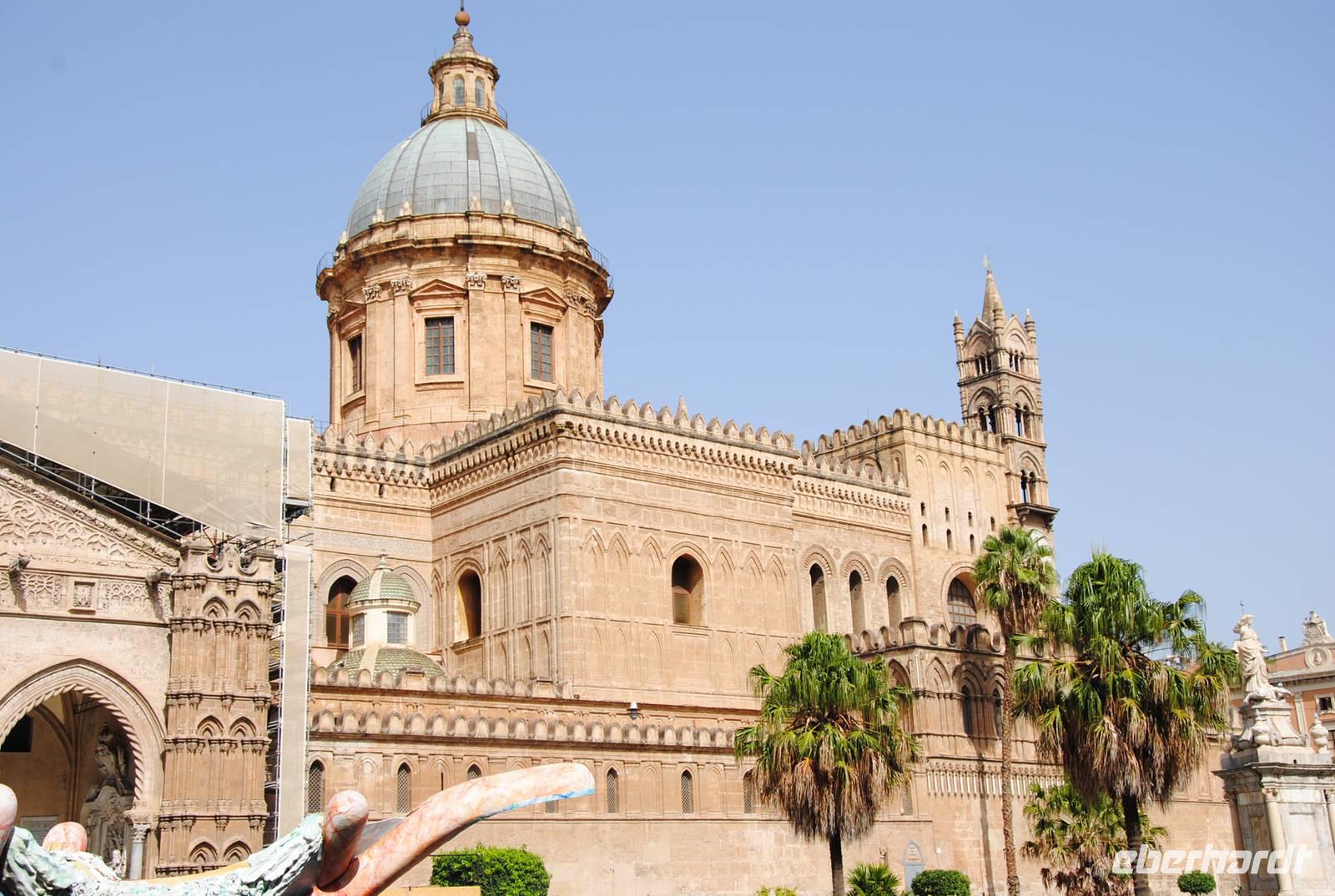 Am Meer die Seele baumeln lassen oder doch mitzugehen auf den Ausflug nach Palermo. Wer die Wahl hat, hat die Qual. Eine Entscheidung wurde getroffen und viele nutzen auch den heutigen Tag für einen Ausflug nach Palermo. Keine Ausgrabungsstätten sondern die Stadt pur erleben stand heute auf dem Programm. Den Anfang machten wir mit Monreale. Über 84 Stufen erreichten wir den Hauptplatz. Nun ging es zur Kathedrale, ein mächtiges Bauwerk an dem man den normannischen Einschlag aber auch der islamische Baustil noch erkennen kann. Im Rahmen der Besichtigung des Doms kamen wir natürlich auch in den imposanten Kreuzgang und an das Grab aus weißem Marmor, in dem Wilhelm II von Sizilien begraben ist. So kehrten wir Monreale den Rücken und es ging, wie schon angekündigt, nach Palermo, der Hauptstadt Siziliens. Bei einer Stadtführung sahen wir die wichtigsten Schätze der Stadt. Ob Dom, Palazzo Reale Normannenpalast mit Capella Palatina um nur einige zu nennen. Natürlich blieb auch Zeit für eine ausgiebige Mittagspause, die viele in den kleinen Lokalen in den engen Gassen nutzten. Da war es schon hilfreich, dass der Reiseleiter einige Tipps gab. Am Ende eines erlebnisreichen Tages ging es dann wieder zurück zum Hotel.