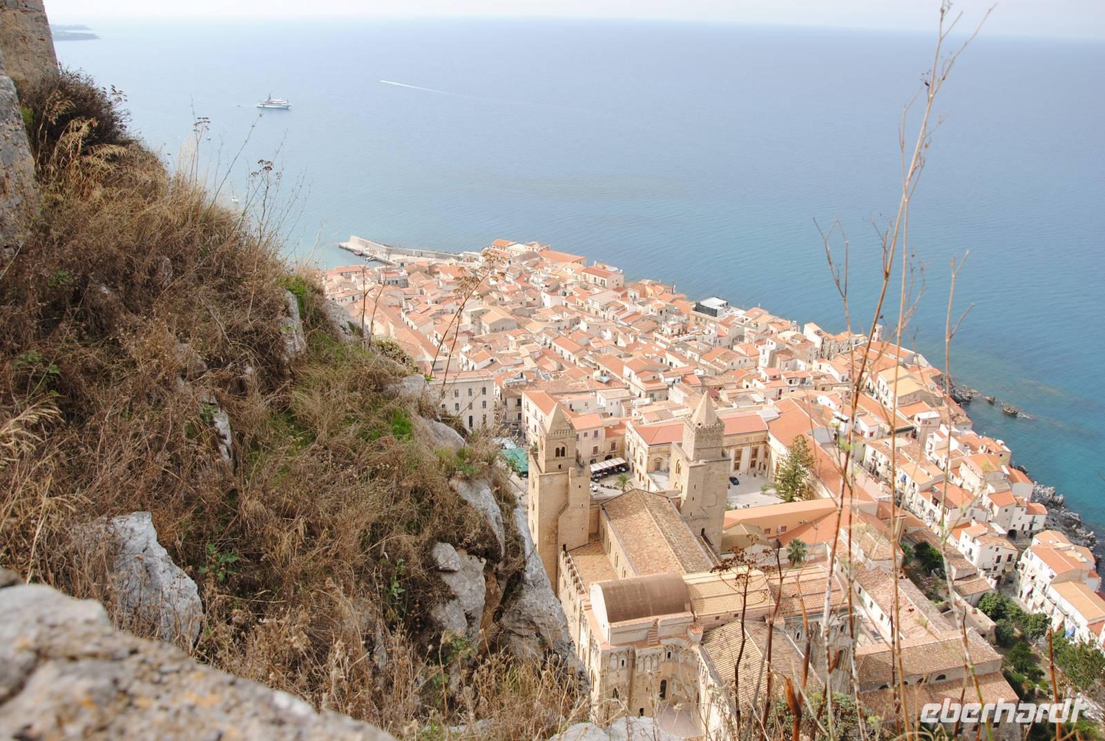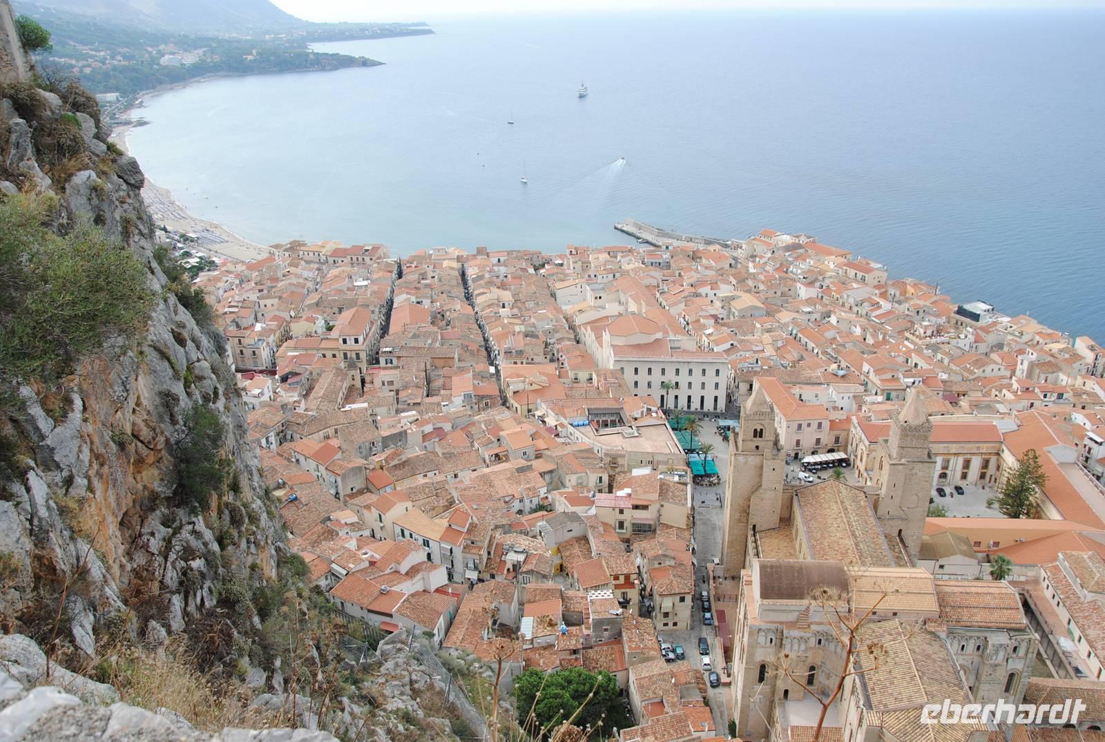 Heute der Tag an dem wir nochmal Natur pur erleben konnten. Nach einem reichlichen Frühstück machten wir uns auf den Weg ins Madonie-Gebirge. Ein 40.000 m² großer Naturpark zwischen Palermo und Cefalu. Während des ganzen Tages hatten wir an so manchen Aussichtspunkt einen herrlichen Panoramablick. An diesem Tag waren nicht die großen Städte angesagt. Nein vielmehr besuchten wir noch ursprünglich und verschlafen gebliebene Dörfer im Landesinneren. Ob Gratteri oder Lascari - alle mit individuellem Charm. Fotostopp in Isnello. Von hier aus einen ersten schönen Blick aufs Meer. In Castellbuono, einem kleinen Ort umgeben von Mandelbäumen und Olivenhainen machten wir als nächsten Halt. Hier besichtigten wir das Kastell der Familie Ventimiglia. Alte Kleidungen, Münzen und vieles mehr konnte man betrachten. Über Kunst oder das was es sein soll waren wir etwas irritiert. Aber dennoch war es schon wegen der Anlage ein Erlebnis. Entlang des Weges genossen wir immer wieder die herrliche Aussicht. Die kleinen Dörfer wirken oft wie an den Bergrücken angeklebt. Natürlich hörten wir auch etwas über den weißen Nektar der Esche auch bekannt als „Tränen der Esche", der in dieser Region erzeugt wird. Eine kleine Verkostung dieses Produktes in Form verschiedener Süßigkeiten durfte natürlich nicht fehlen. Am Nachmittag statteten wir noch dem kleinen vor Charme sprühenden Städtchen Cefalo einen Besuch ab. Nach einem kleinen Spaziergang gingen einige noch auf den Hausberg der Stadt und hatten von dort einen grandiosen Blick auf die Bucht und die Stadt. Mit vielen Naturerlebnissen ging es dann zurück zum Hotel. Nach dem Abendessen hieß es für die Meisten von uns Koffer packen, denn Morgen geht es zurück nach Hause.