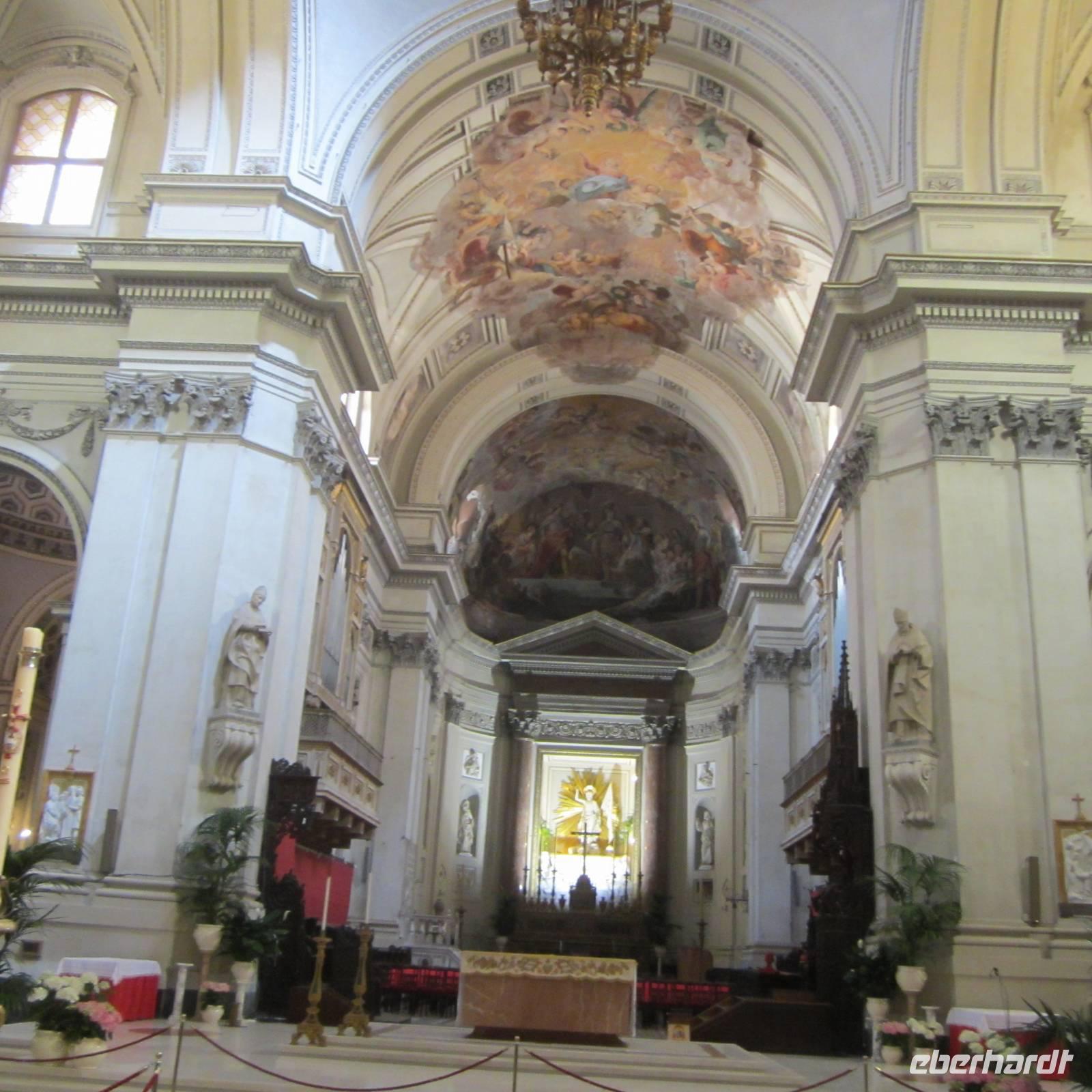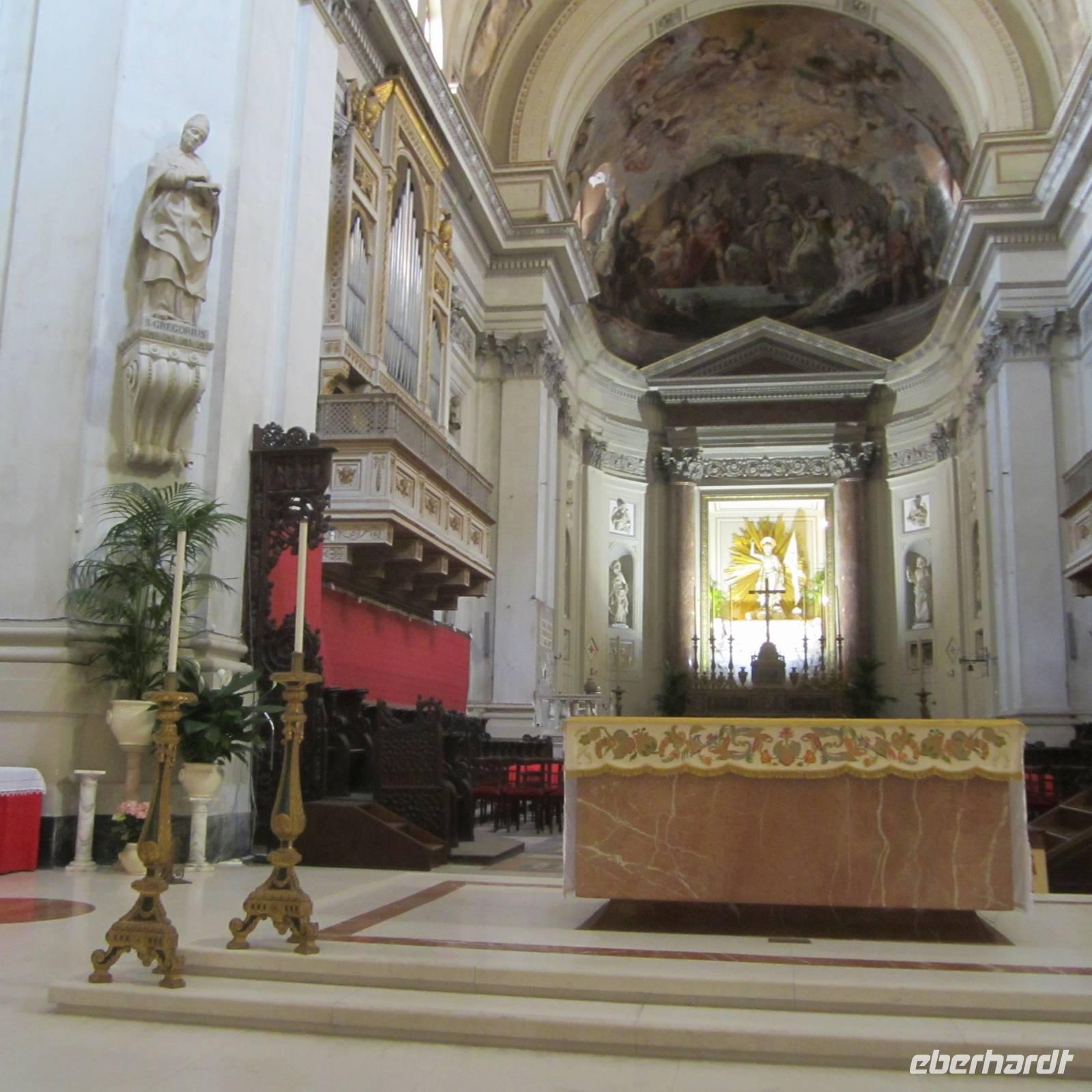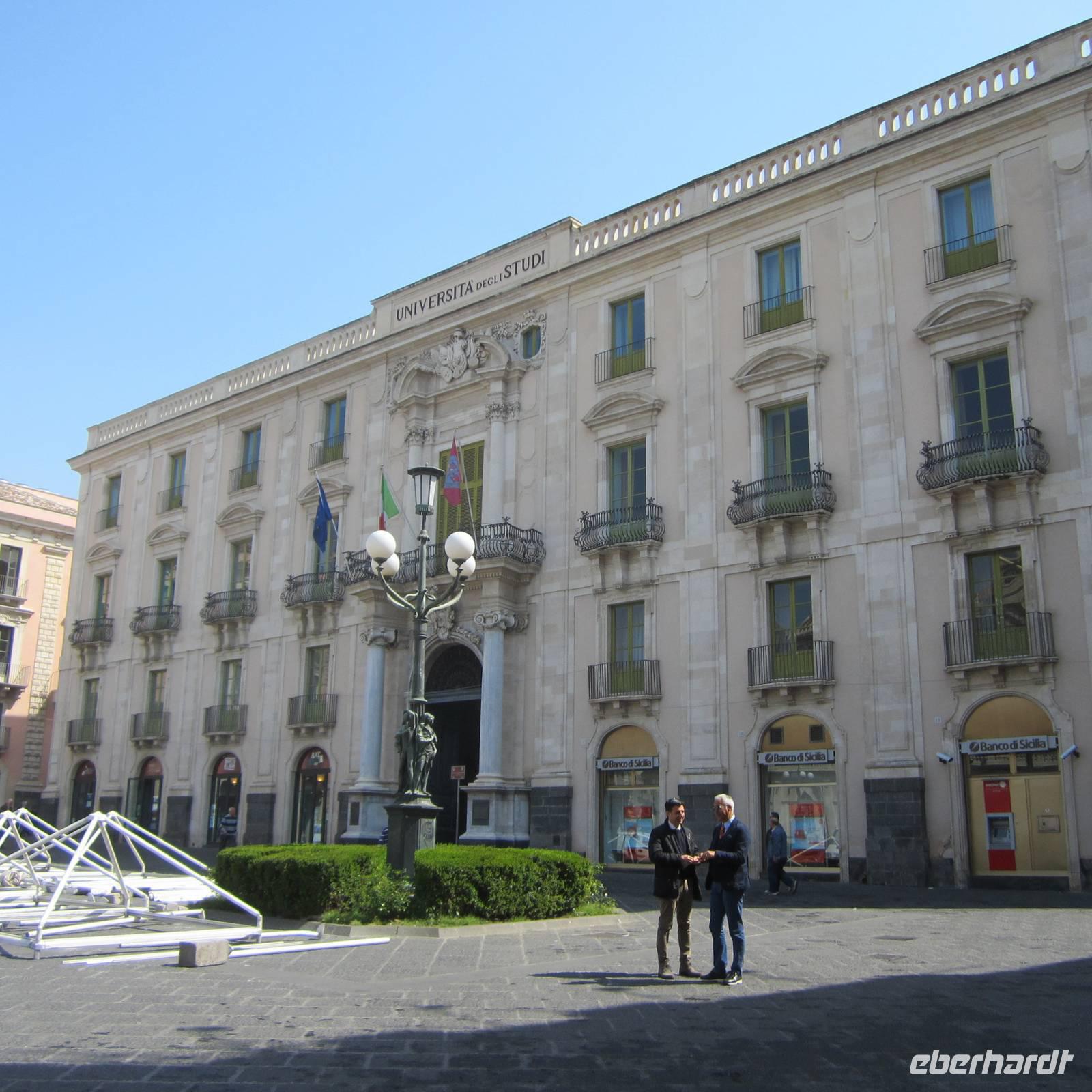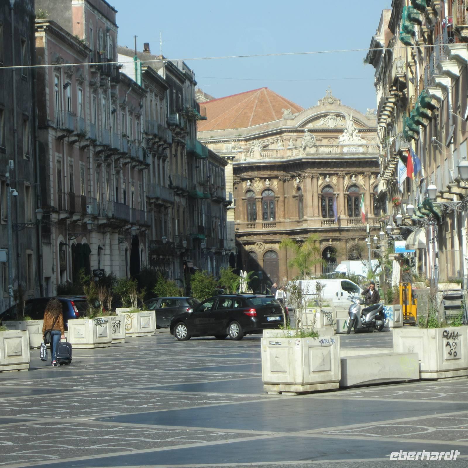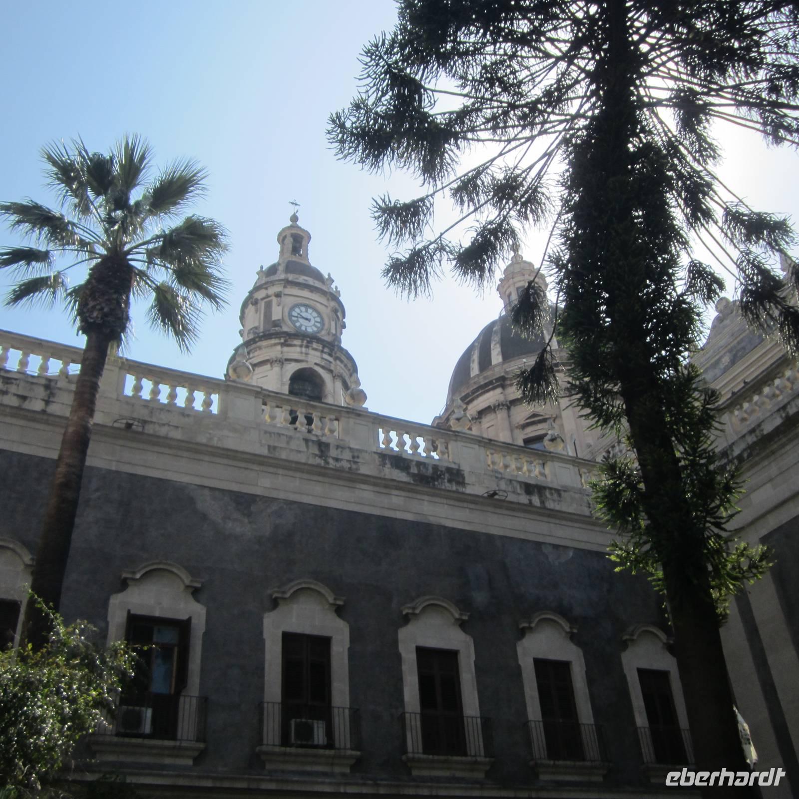 Auf dem Programm für heute stehen zwei Städte an der Ostküste. Catania ist die erste Stadt, die wir kennen lernen. Sie liegt in einer fruchtbaren Ebene zwischen Ätna und Meer, der Piana di Catania. Wir erleben eine vitale Stadt mit der ältesten Universität von Sizilien und entlang der Via Etnea erkennen wir ihre barocken Sakral-und Profanbauten. Auf dem Piazza del Duoma sehen wir den Elefantenbrunnen, das Symbol der Stadt. Der Elefant aus schwarzer Lava trägt einen kleinen ägyptischen Obelisken.(Vorbild war Berninis Elefantenobelisk in Rom). Dem Brunnen gegenüber besuchen wir den Dom Sant Agata. An dem Ort soll die heilige Agathe 251 den Märtyrertod erlitten haben.