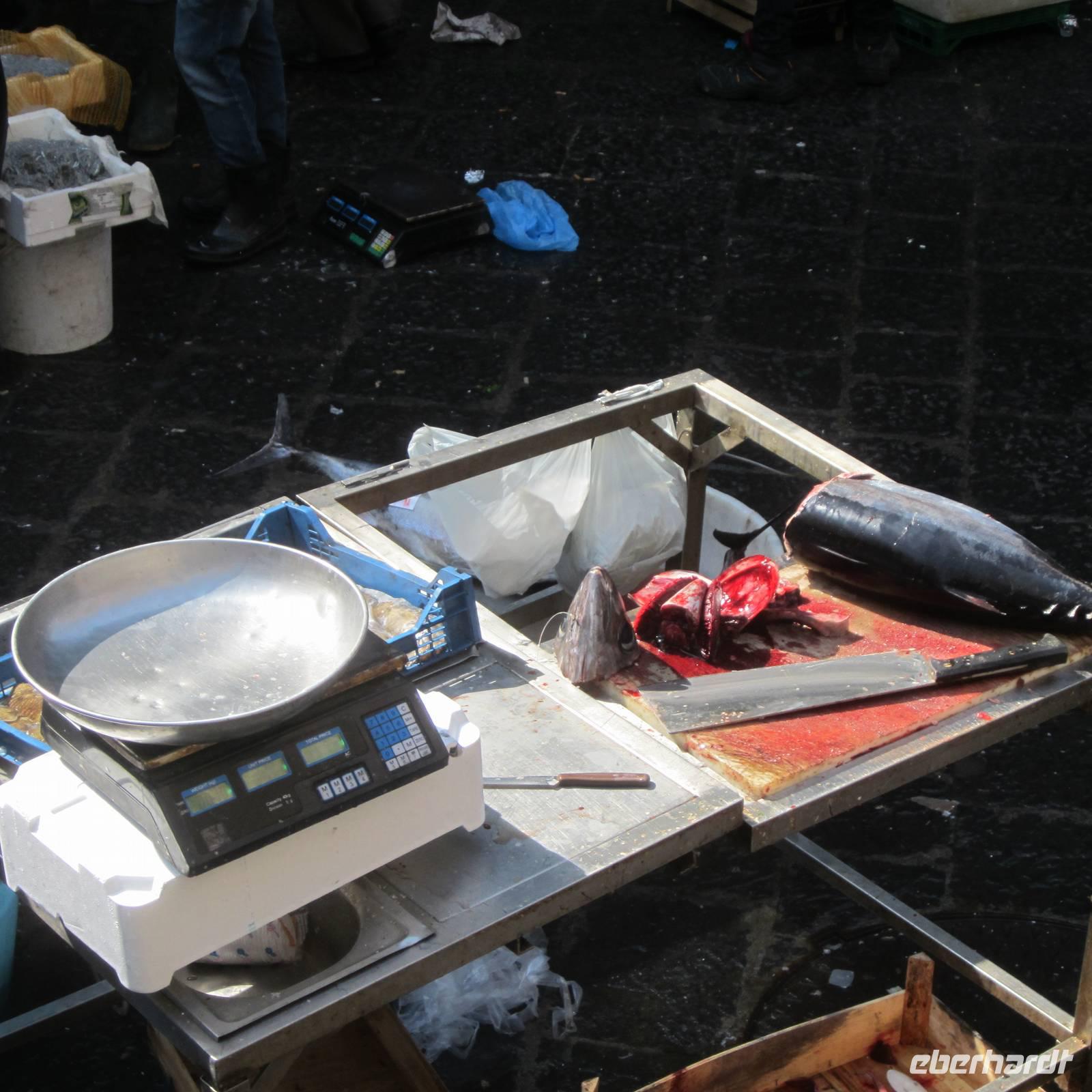 Anschließend gönnen wir uns eine hinreißende Abwechslung. Wir besuchen den Fisch-und Lebensmittelmarkt in der Südwestecke des Domplatzes. Marktschreier, die sich gegenseitig übertreffen und ein Fischangebot, welches wir in Deutschland kaum finden. Der Markt gehört zu den farbenprächtigsten Märkten der Welt und wir sind mittendrin. Anschließend haben wir Freizeit und einige nutzen die Zeit zur Villa Bellini zu gelangen, der gepflegte Stadtpark mit Grünanlagen.