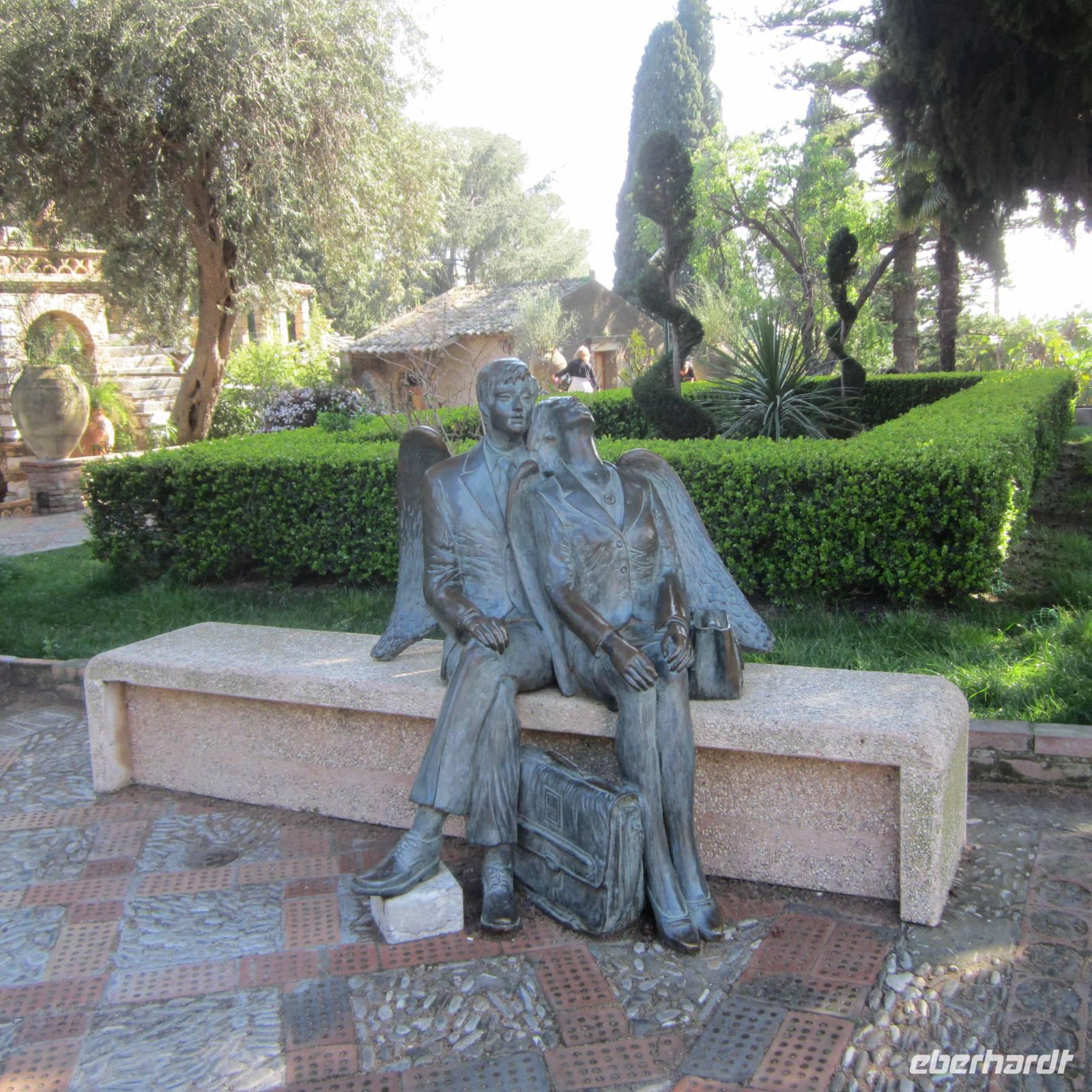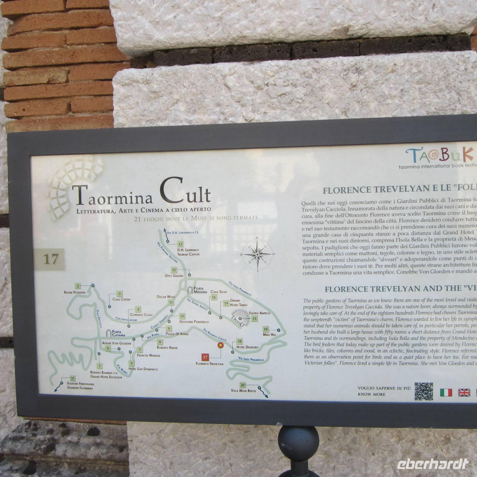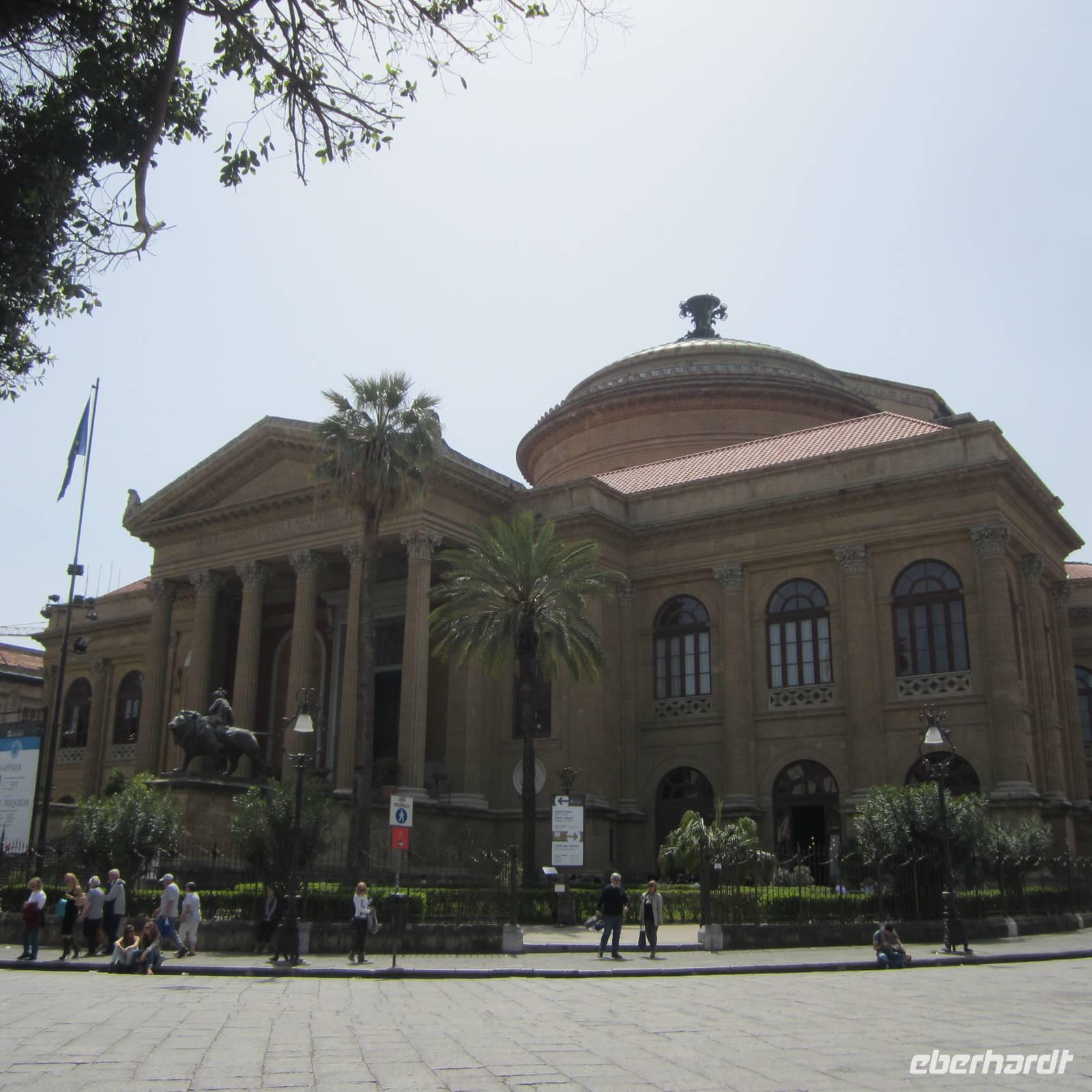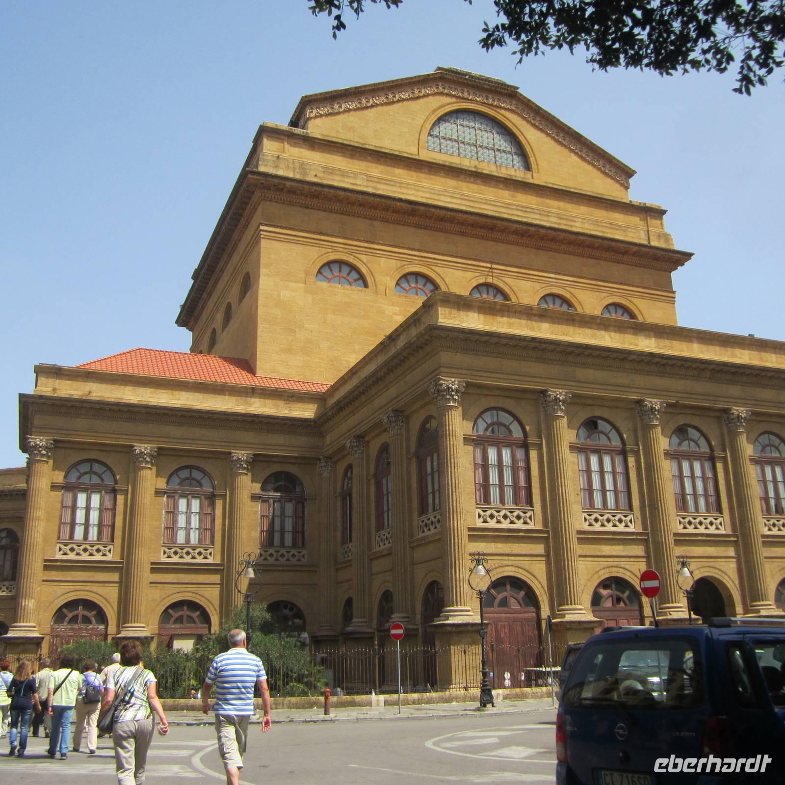 Nur von Weitem sehen wir das Opernhaus (Teatro Bellini), in dem 1890 die bekannteste Oper von Vincenzo Bellini, "NORMA" uraufgeführt wurde. Gegen Mittag verlassen wir die Stadt und steuern den Bauernhof - Limoneto- an und hier werden wir mit den unterschiedlichen sizilianischen Speisen verwöhnt. Danach fahren wir nach Taormina, es soll die schönste Stadt der Insel sein. Hoch über uns und nicht weit entfernt von unserem Hotel liegt sie. Wir fahren mit einem Shuttlebus in die Stadt und besuchen als Erstes das griechische Theater. Es beinhaltet aber auch alle Merkmale eines spezifisch römischen Theaters. Begründet ist es darin, dass das Theater im 3.Jh.v,Christus unter Hieron II. von Syrakus angelegt wurde. In der römischen Zeit wurde es rundum erneuert und deshalb sehen wir auch ein römisches Theater. Christiane wird nicht müde uns dieses Wissen zu vermitteln und alle hören gespannt zu. Weiter geht unser Rundgang durch die Stadt und wir sehen noch die Villa Comunale und den Stadtpark.