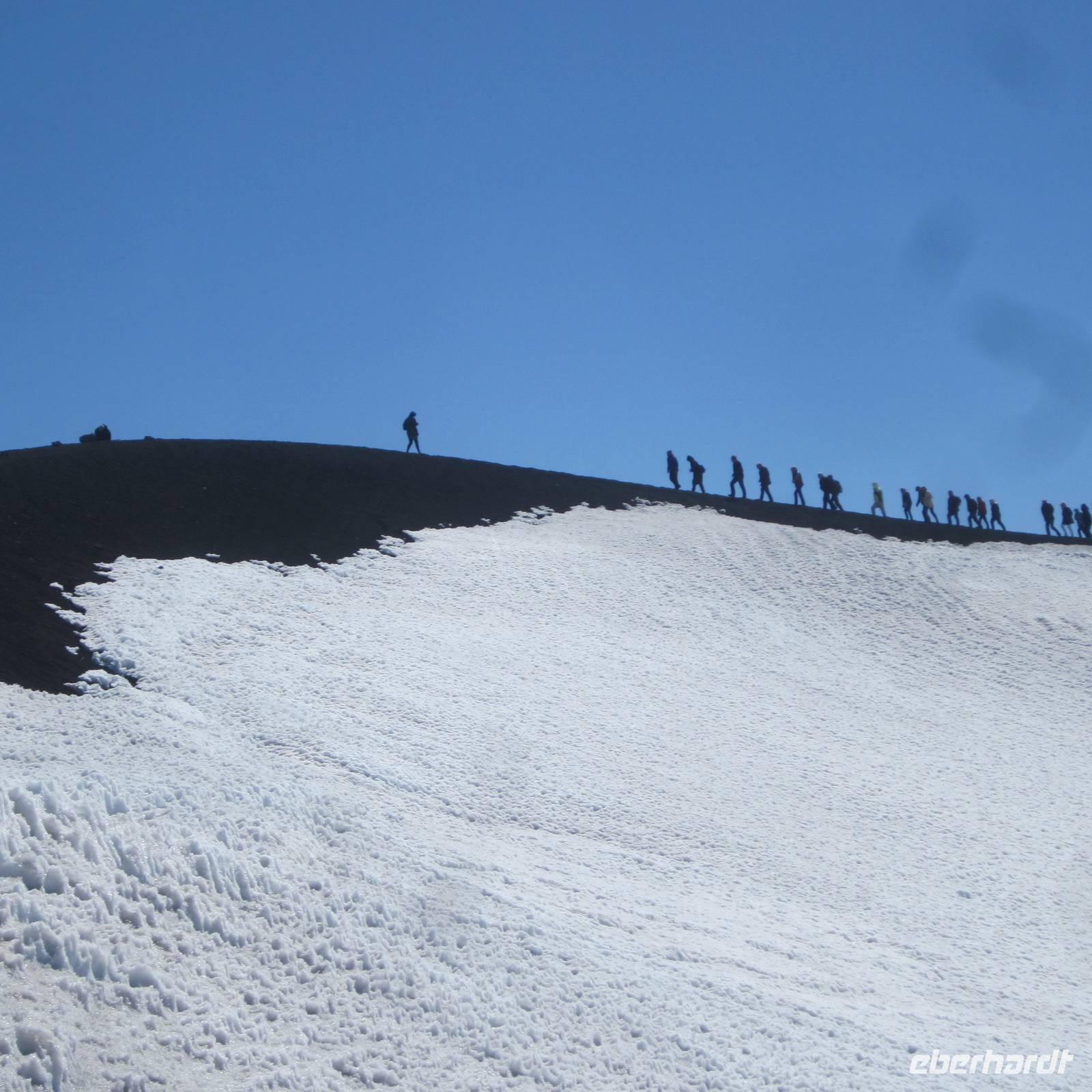 Viel Schlaf bleibt uns nicht, gegen 2.00 Uhr werden wir nach Berlin zum Flughafen Tegel gebracht. Hier trifft sich der Großteil unserer Gruppe. Weitere Gäste fliegen vom Flughafen Frankfurt/Main und München. Mit der AIR Berlin und einer Boeing 737-800 heben wir 08.00 Uhr ab. Wir haben eine gute Sicht und können die Flugroute bei einer Höhe von rund 12000 Metern gut beobachten. Wir fliegen über Dresden, Prag, Kroatien nach Italien. Split ist ganz deutlich zu erkennen und viele kroatische Inseln. Nach dem Wir den Stiefel überquert haben und den Sinkflug nach Catania eingeleitet haben, ist es eine Freude den Ätna in Schnee gehüllt zu sehen. In Catania erwartet uns bereits