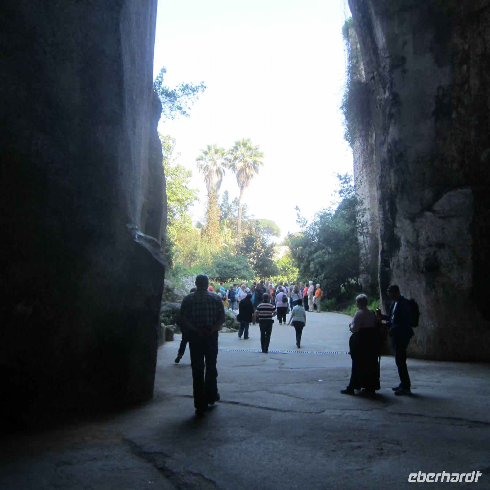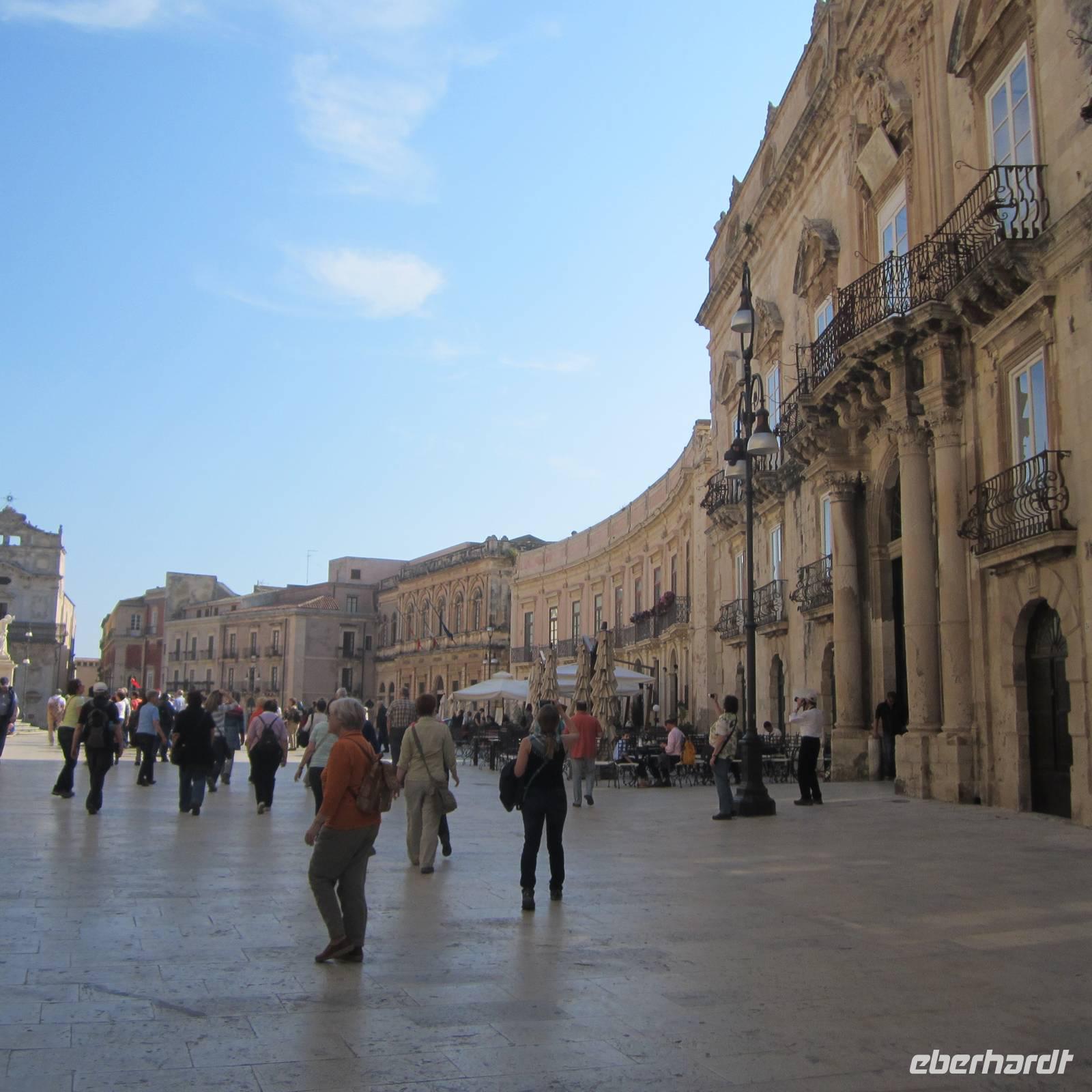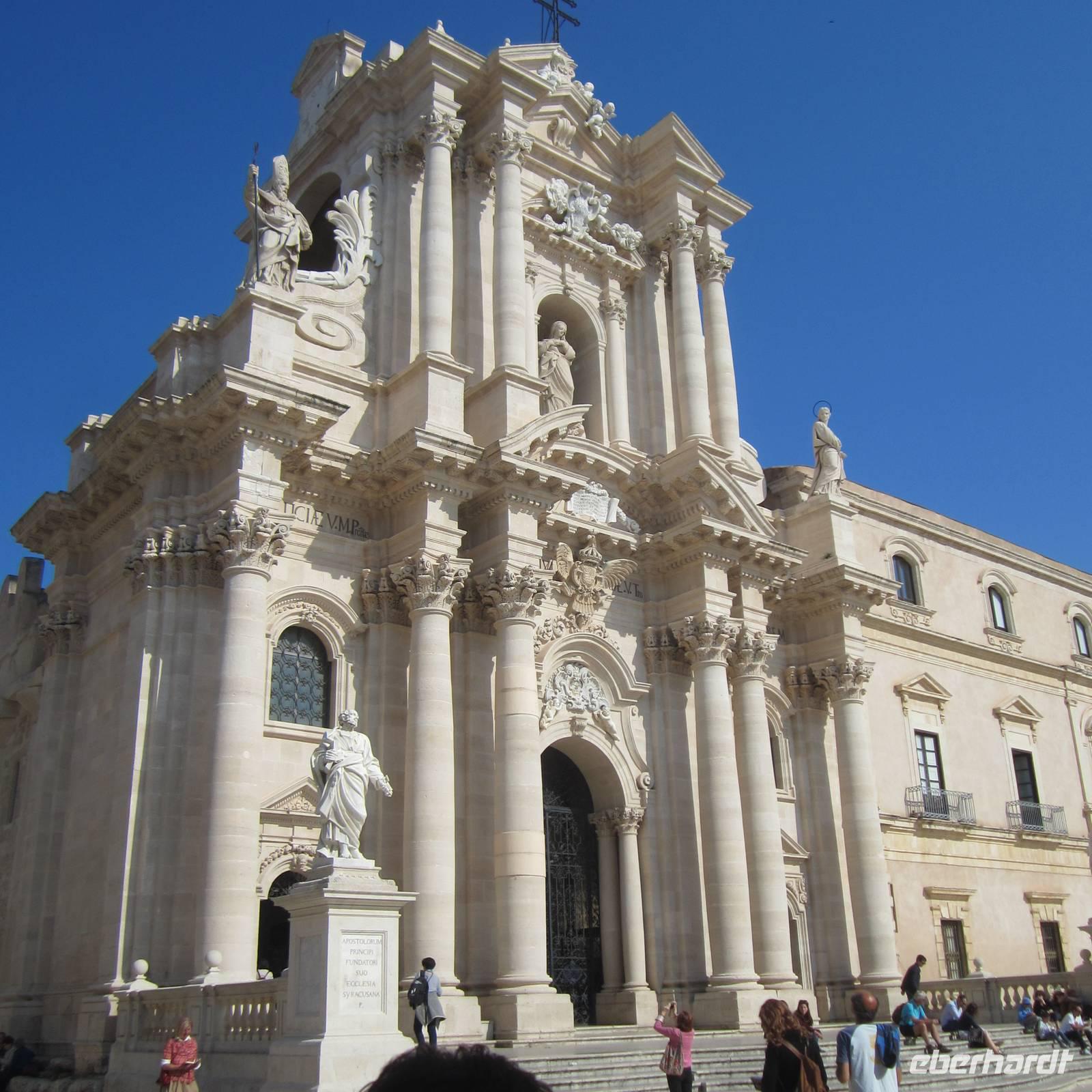 Wieder am Parkplatz angekommen. Fahren wir weiter nach Syrakus, der Stadt, die jahrhundertelang die größte und mächtigste Stadt der Insel war. Wir beginnen unsere Führung auf der Landzunge, die Keimzelle der Stadt liegt aber auf der Insel Ortygia. Wir besuchen als Erstes den archäologischen Park Neapolis mit seinem griechischen Theater, dem prachtvollen Alter von Hieron II., dem römischen Amphitheater und die unterirdische Grotte -Ohr des Dionysios. Auf der Insel Ortigia besuchen wir die Kathedrale dem ältesten Bauwerk Italiens. Mit einem Eis ausgerüstet spazieren wir zurück zum Bus und sind heute der Geschichte der Insel wieder ein Stück näher gekommen.