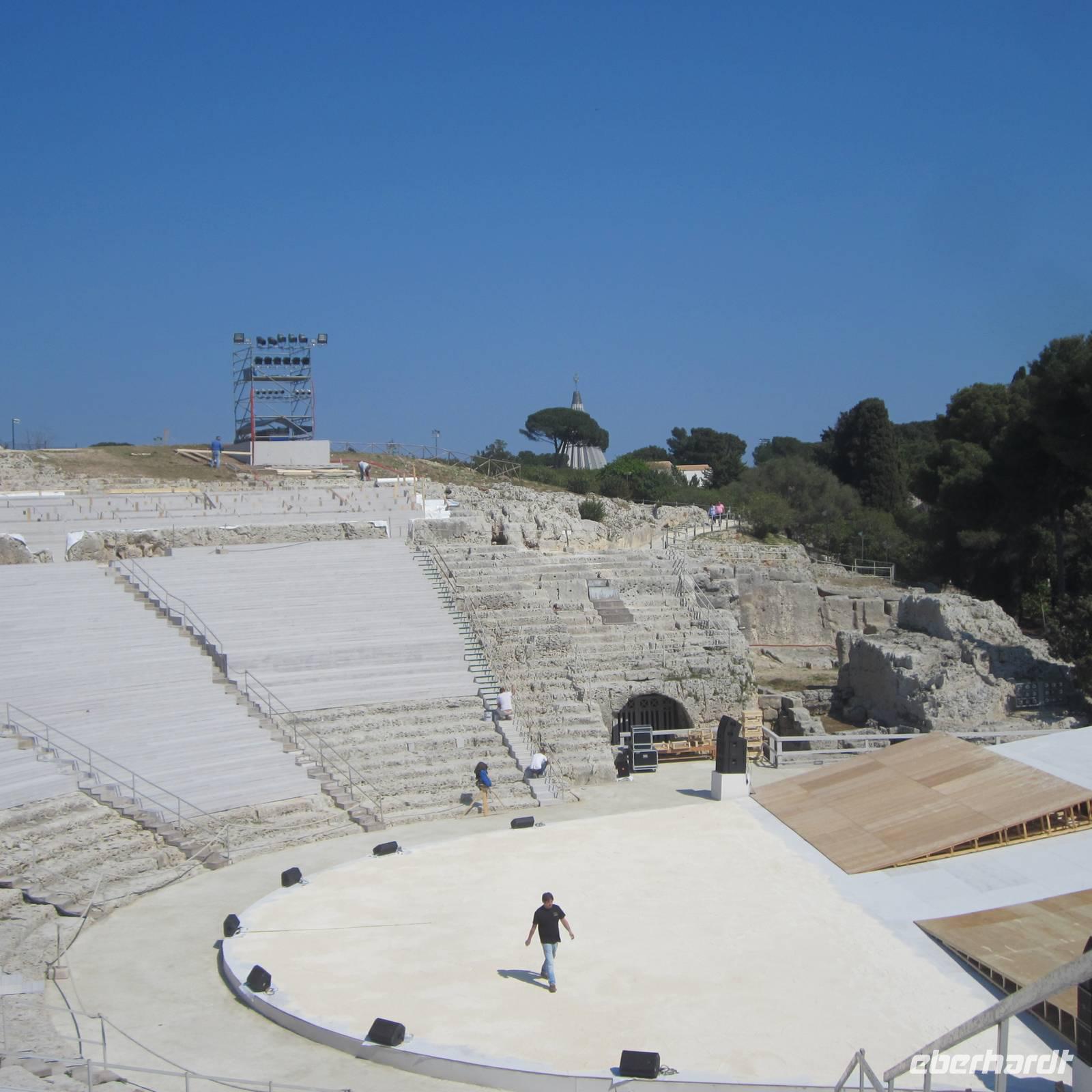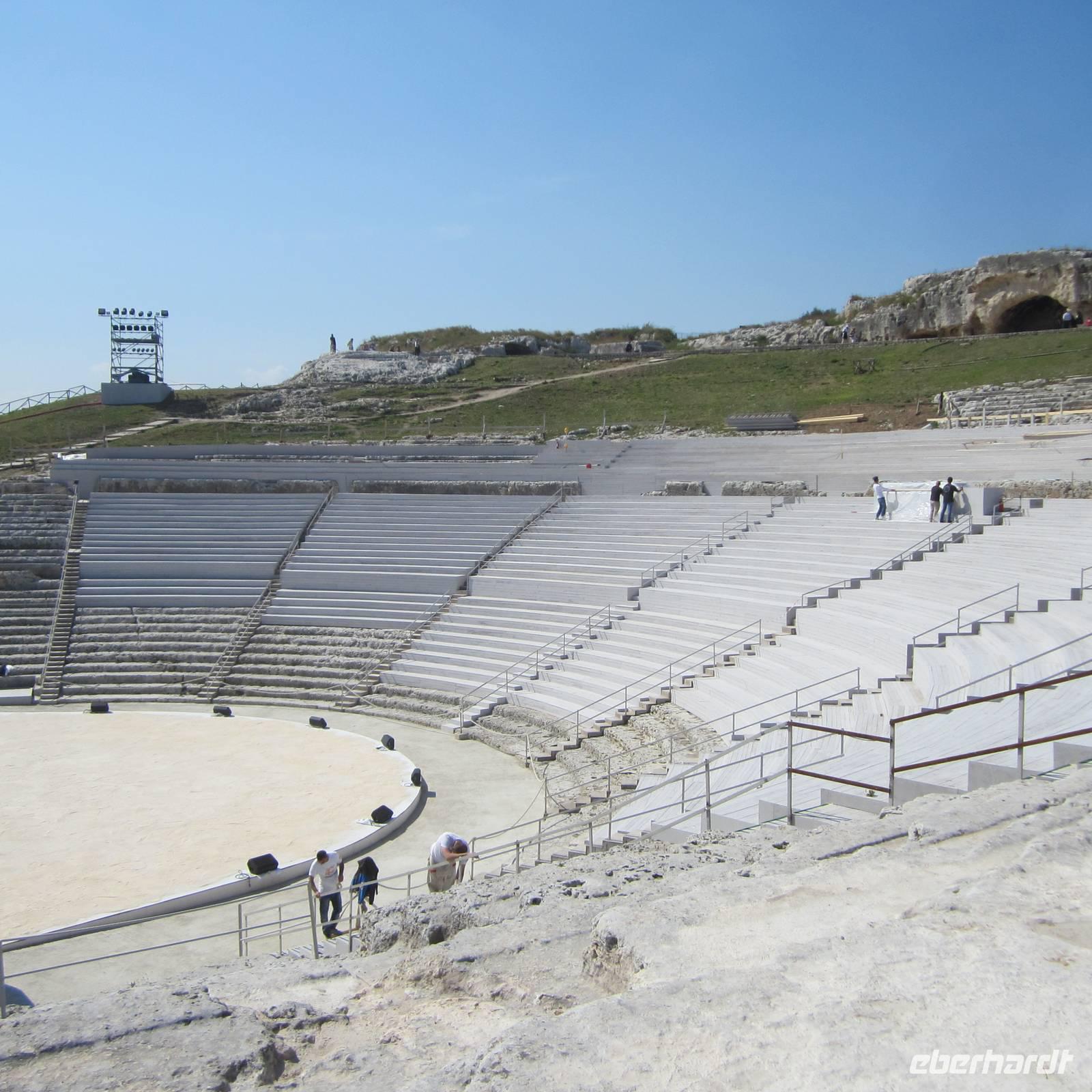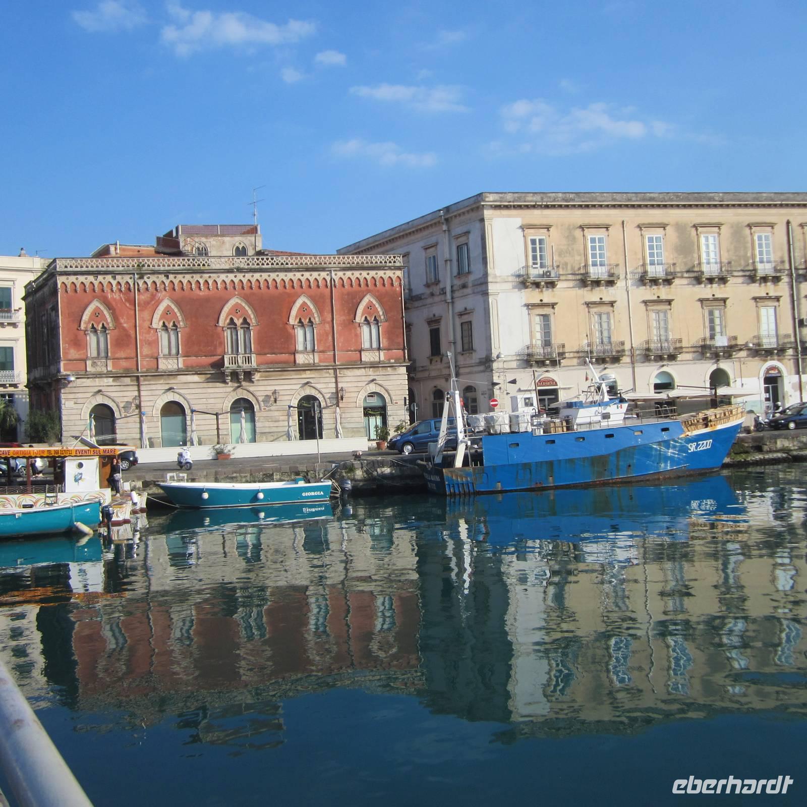 Wieder am Parkplatz angekommen. Fahren wir weiter nach Syrakus, der Stadt, die jahrhundertelang die größte und mächtigste Stadt der Insel war. Wir beginnen unsere Führung auf der Landzunge, die Keimzelle der Stadt liegt aber auf der Insel Ortygia. Wir besuchen als Erstes den archäologischen Park Neapolis mit seinem griechischen Theater, dem prachtvollen Alter von Hieron II., dem römischen Amphitheater und die unterirdische Grotte -Ohr des Dionysios. Auf der Insel Ortigia besuchen wir die Kathedrale dem ältesten Bauwerk Italiens. Mit einem Eis ausgerüstet spazieren wir zurück zum Bus und sind heute der Geschichte der Insel wieder ein Stück näher gekommen.