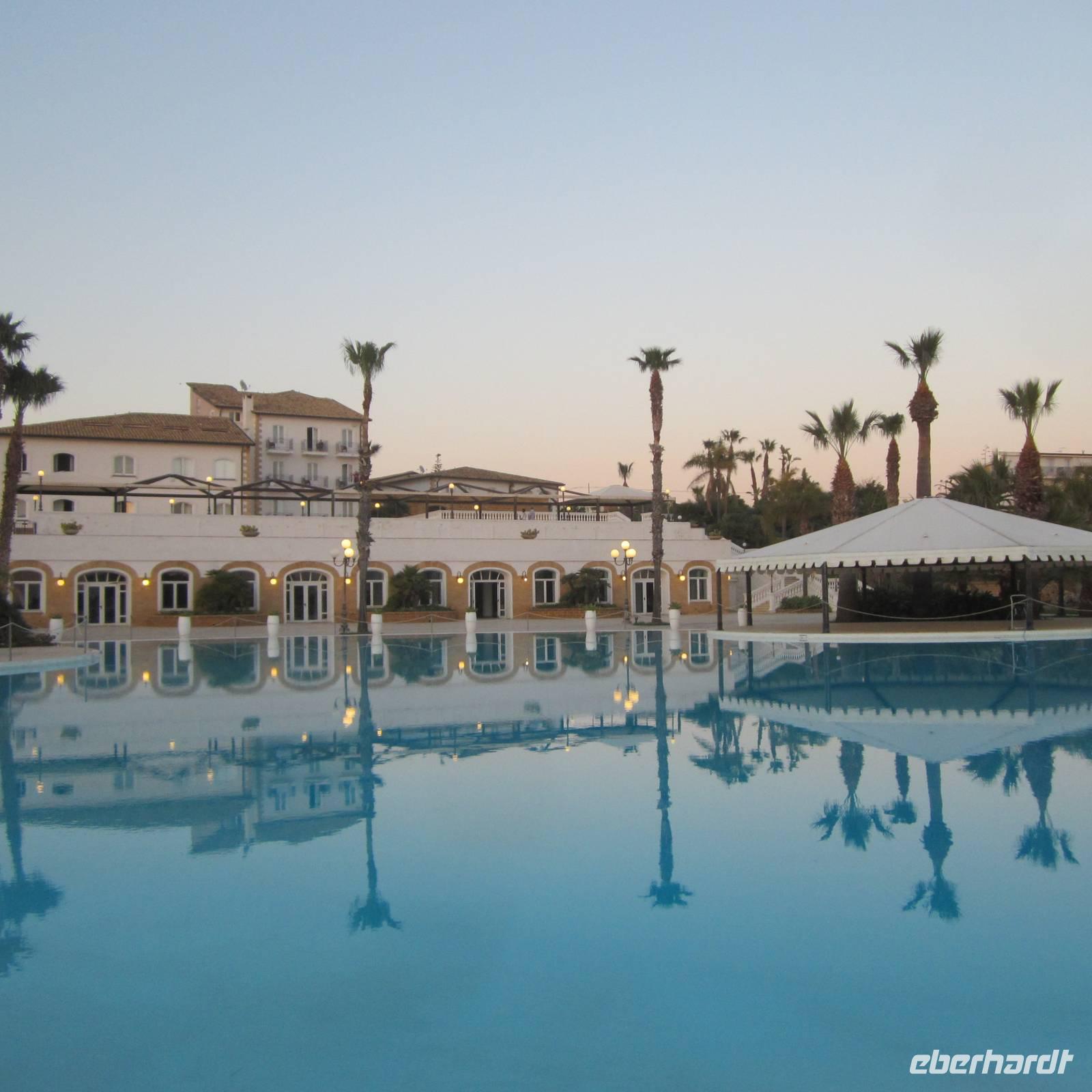 Campofelice di Rocella in das Hotel Fiesta Athenee Palace. Eine große aber wiederum beeindruckende Hotelanlage mit einem Abendbüfett, welches keine Wünsche offen lässt.
