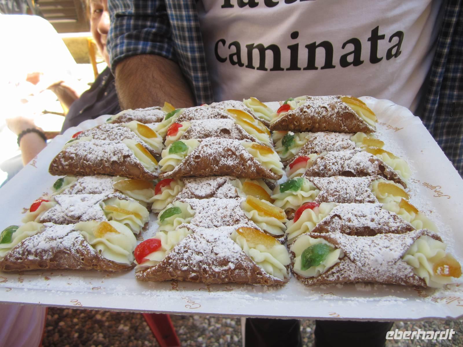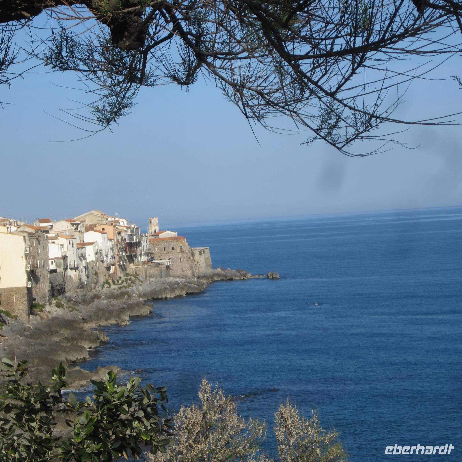 So langsam geht der Urlaub zu Ende und wir haben heute noch einmal einen Ausflug in die Berge. Doch bevor es so weit ist, besuchen wir Cefalu an der Nordküste der Insel. Der Dom Santissimo Salvatore ist eines der ersten arabisch-normannischen Juwelen der Insel. Wir erleben im Dom die Vorbereitung einer Hochzeit. Zeit für einen Bummel durch Ort und den Kauf der letzten Souvenirs bleibt noch. Danach beginnen wir die Fahrt ins Gebirge. Die Berge in der Madonie sind beeindruckend und erreichen mit dem Pizzo Carbonare eine Höhe von 1979 m. Er ist nach dem Ätna der zweithöchste Gipfel auf der Insel. Vincenzo fährt uns sehr ruhig die Serpentinen nach Castelbuono hinauf. Große Korkeneichen säumen den Weg und überall haben wir eine üppige Vegetation. Wir sind zur richtigen Zeit auf der Insel unterwegs. In dem Ort lernen wir die Tränen der Esche kennen. Wir kosten in der bekannten Konditorei Fiasconaro Pistaziencreme und Mannacrem. Manna kennen wir als "Tränen der Esche". Es bleibt noch etwas Zeit entlang der Gassen des beschaulichen Ortes zu spazieren. Danach geht unsere Fahrt weiter durchs Gebirge, in Geraci haben wir auch wieder einen Blick auf den Ätna. In Castelano Sigula werden wir bereits zum Mittagessen erwartet und mit leckerer sizilianischer Bratwurst, Pasta, Buscetta, grünen Salat u.a. verwöhnt. Zum Abschluss probierten wir noch den Orangenkuchen. Mit dem Rezept für den Kuchen ausgerüstet müssen wir jetzt aber wieder die Rückfahrt beginnen ein kurzer Stopp unterwegs nutzen wir um mit einem guten Schluck "Liguore di Limone" auf die schönen Tage auf Sizilien zu trinken und Christiane und Vincenzo zu danken und sie zu verabschieden. Beide haben uns mit ihren Können und Wissen schöne Tage bereitet. Vielen Dank! Im Hotel angekommen, bleibt noch Zeit im Meer zu baden oder wenigstens die Temperatur des Wassers zu prüfen.