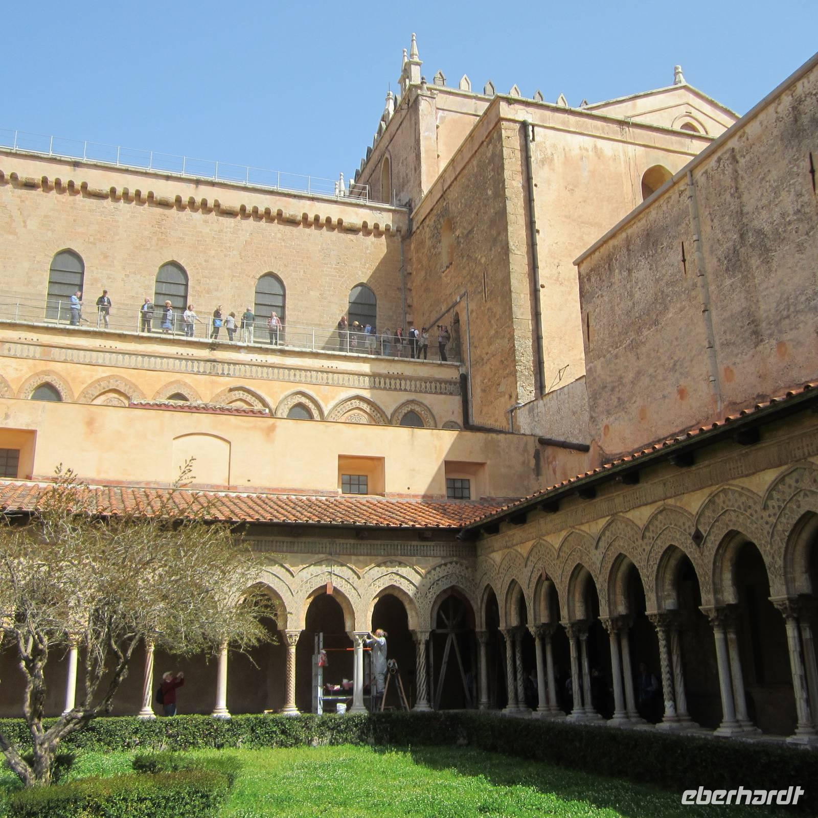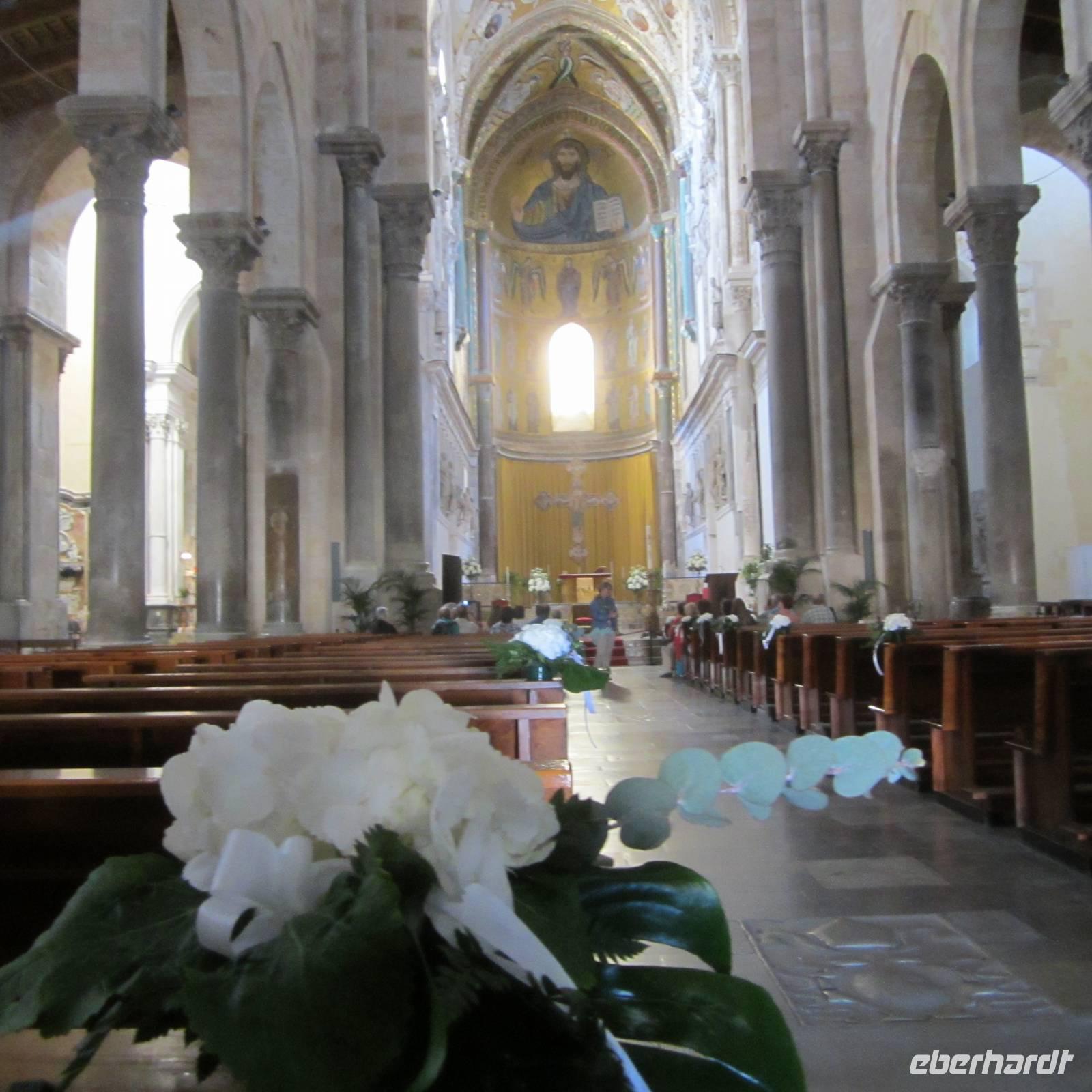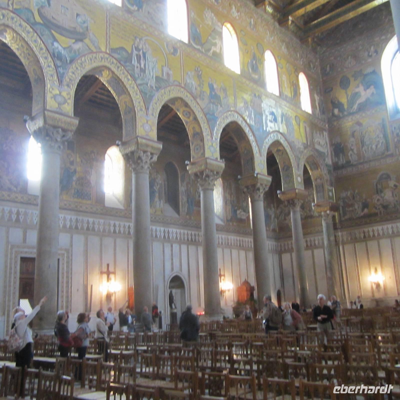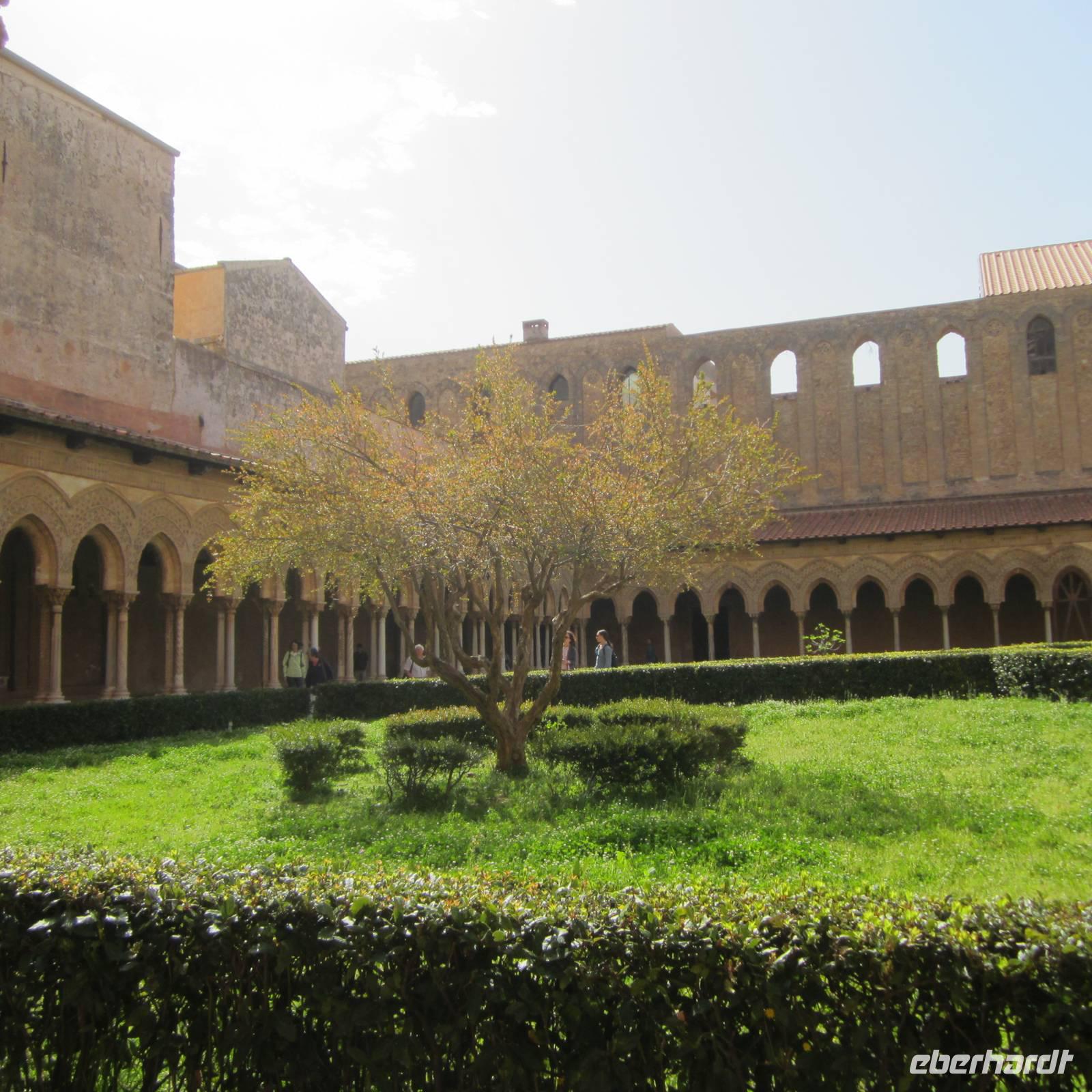 Das Hoch, das uns in den letzten Tagen das schöne Wetter bescherte, hält an und trotzdem möchte keiner den Tag am Meer verbringen, sondern die Hauptstadt der Insel erleben. Wir beginnen die Führung in Monreale und besuchen das bedeutendste Denkmal der Normannenkunst auf Sizilien. Nach den 90 Stufen, die wir gehen oder aber mit einem Taxi fahren, stehen wir vor dem prächtigen Dom. Im Inneren sind wir von den kostbaren Mosaiken überwältigt. Was Künstler hier im 12. Jd. geschaffen haben, ist einmalig. Im Anschluss gehen wir durch den berühmten