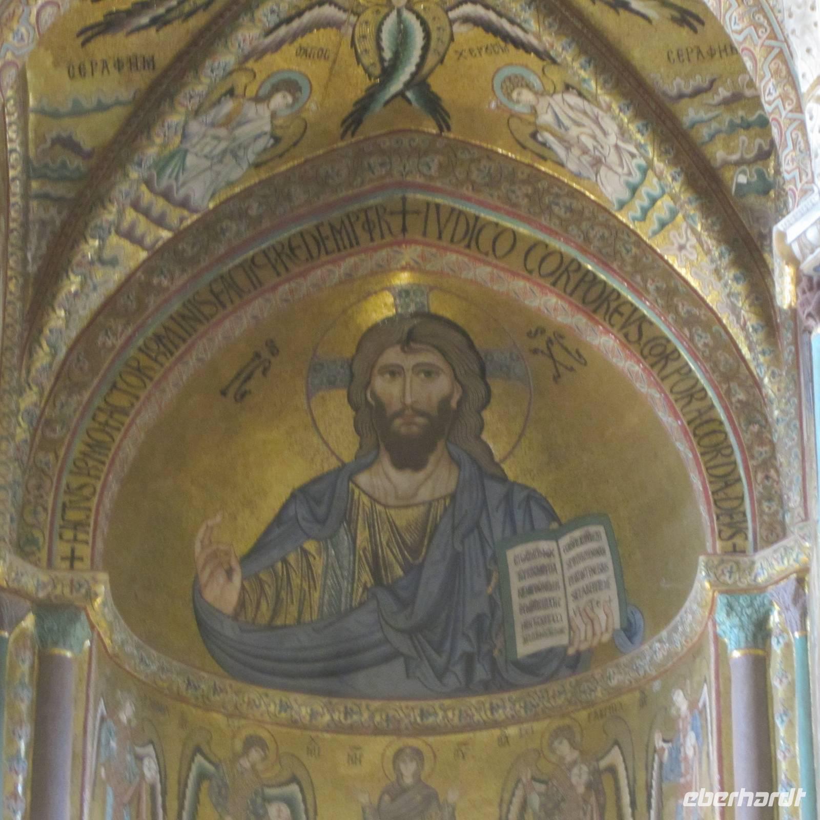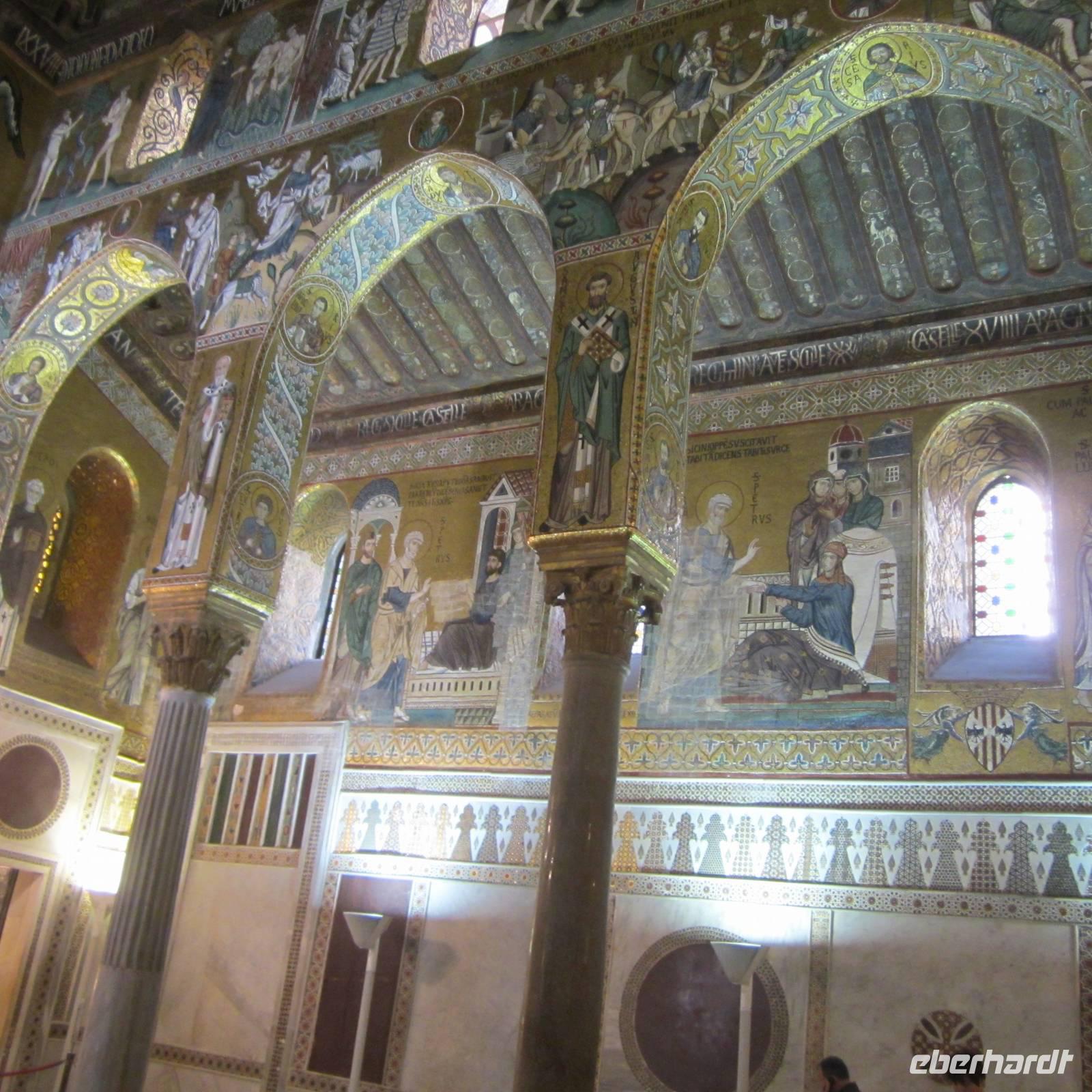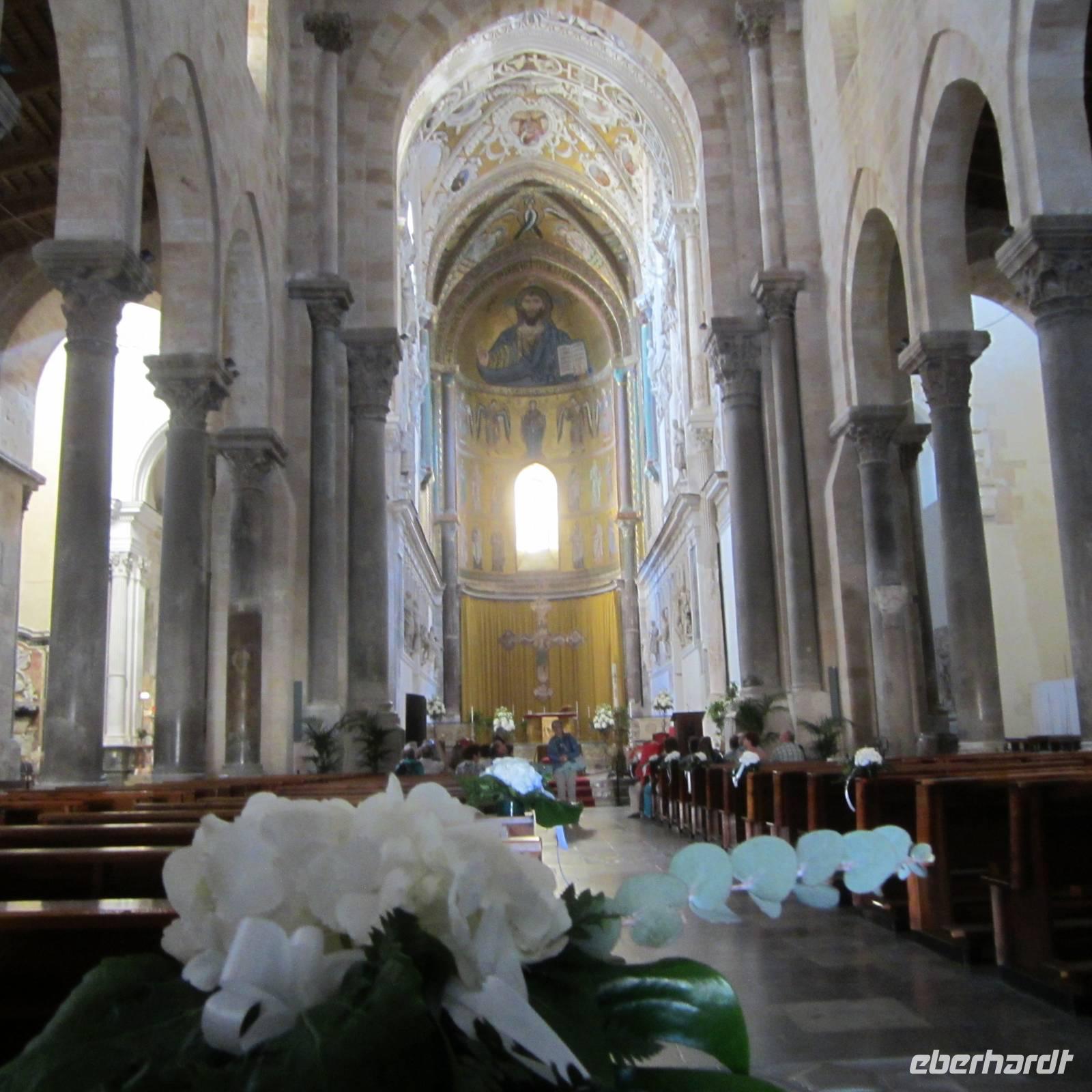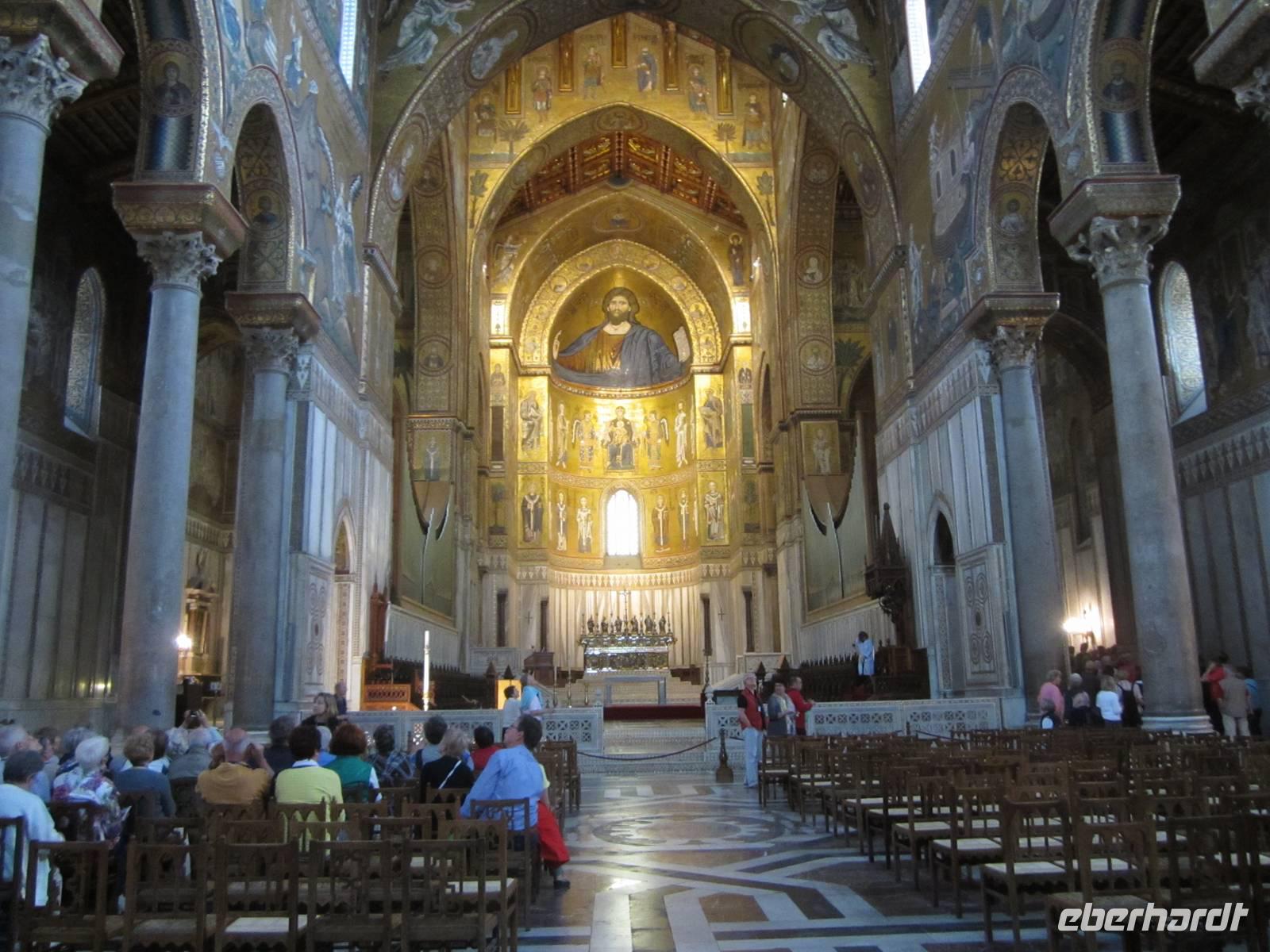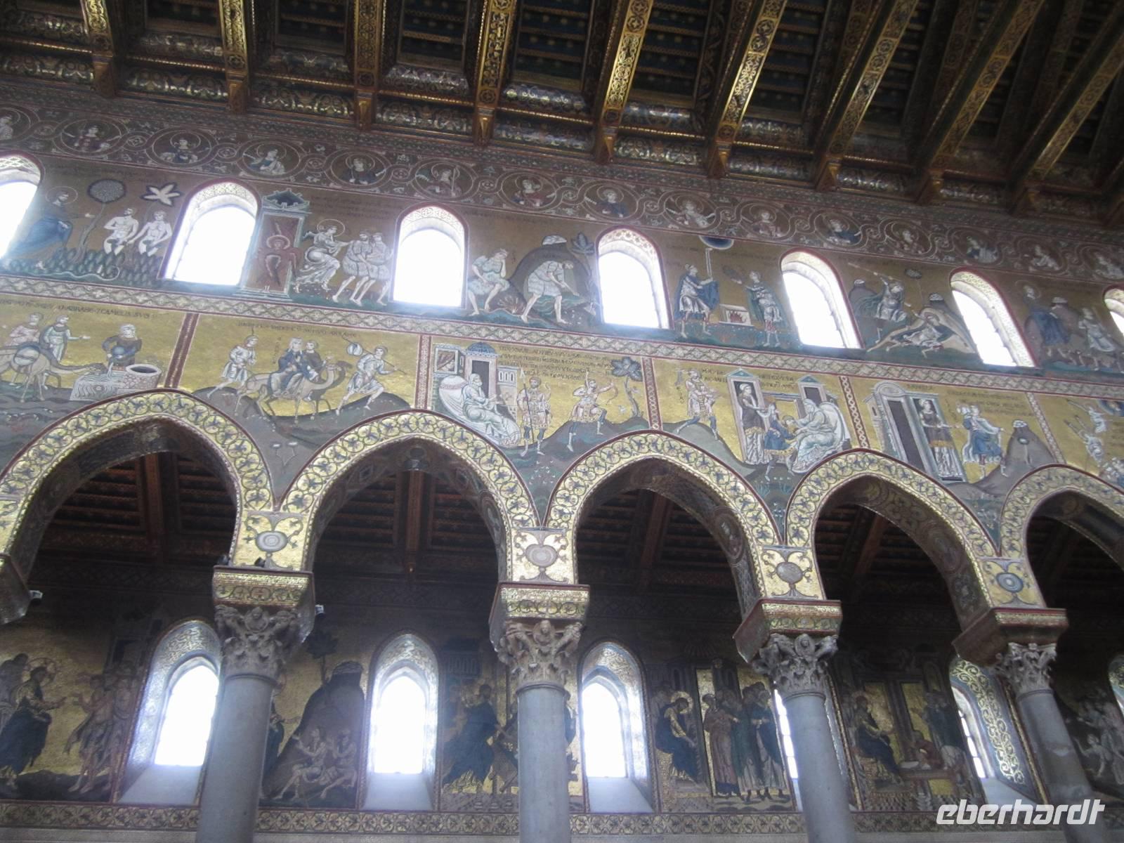 Das Hoch, das uns in den letzten Tagen das schöne Wetter bescherte, hält an und trotzdem möchte keiner den Tag am Meer verbringen, sondern die Hauptstadt der Insel erleben. Wir beginnen die Führung in Monreale und besuchen das bedeutendste Denkmal der Normannenkunst auf Sizilien. Nach den 90 Stufen, die wir gehen oder aber mit einem Taxi fahren, stehen wir vor dem prächtigen Dom. Im Inneren sind wir von den kostbaren Mosaiken überwältigt. Was Künstler hier im 12. Jd. geschaffen haben, ist einmalig. Im Anschluss gehen wir durch den berühmten