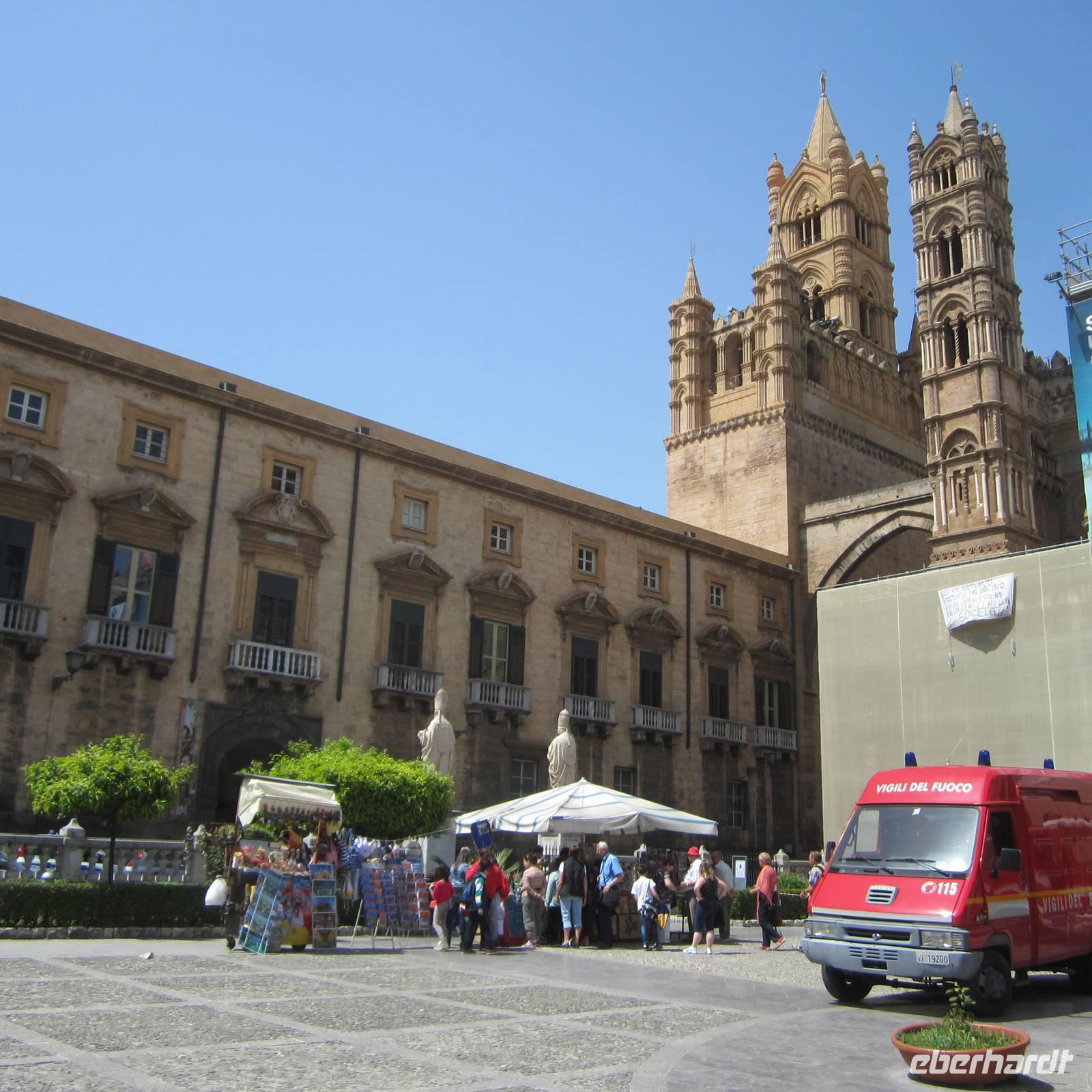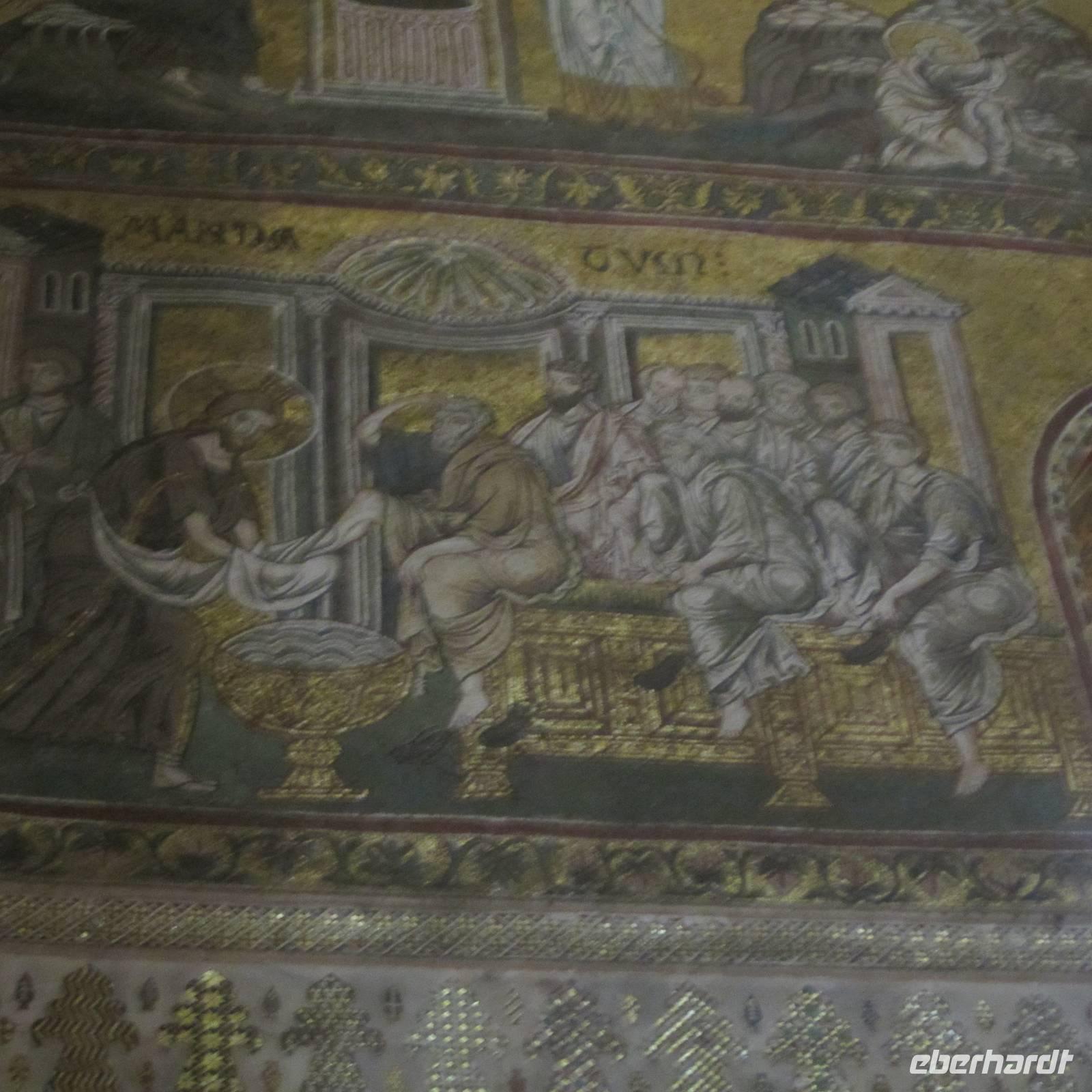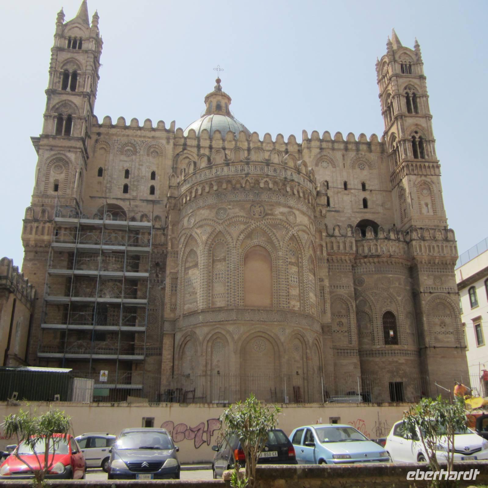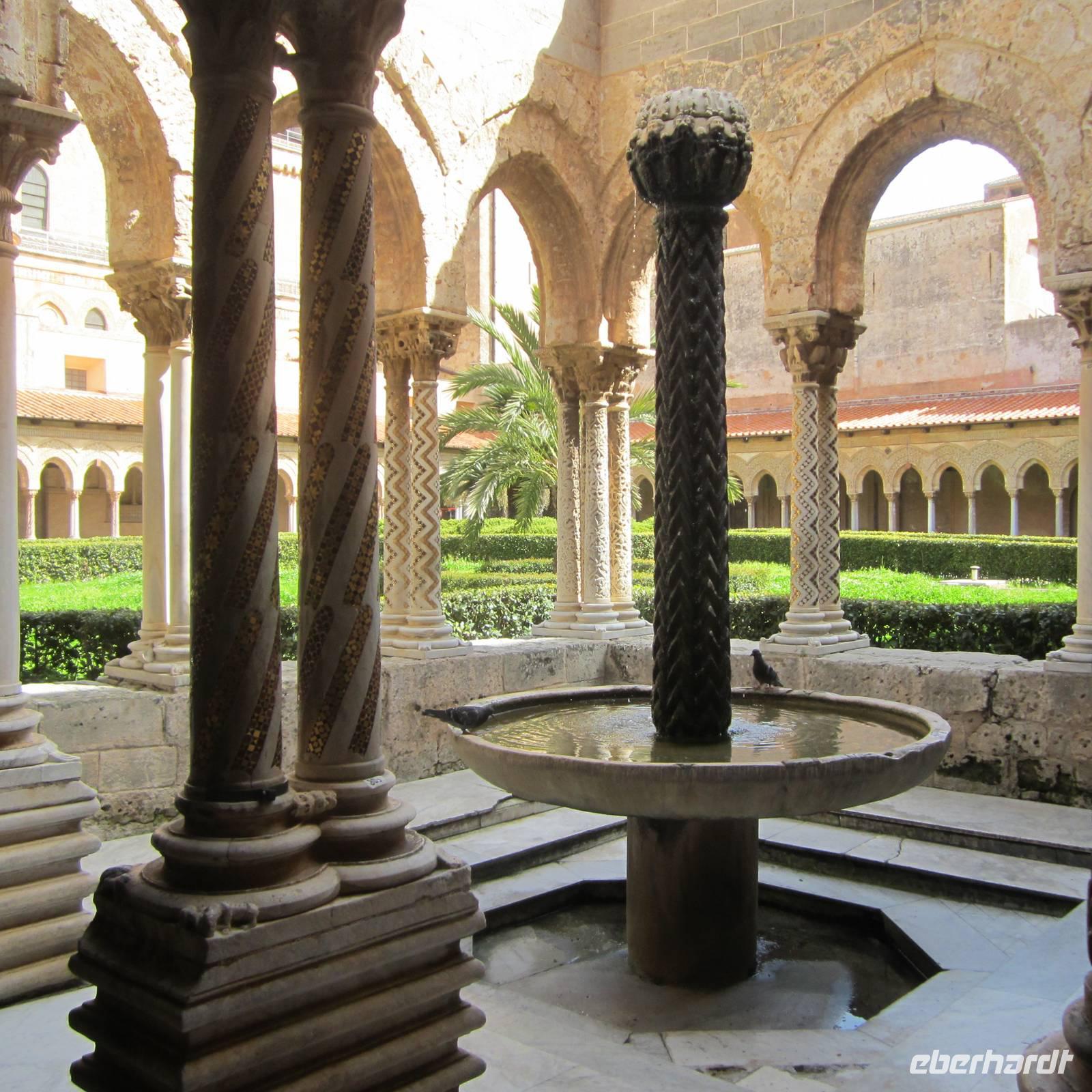 Das Hoch, das uns in den letzten Tagen das schöne Wetter bescherte, hält an und trotzdem möchte keiner den Tag am Meer verbringen, sondern die Hauptstadt der Insel erleben. Wir beginnen die Führung in Monreale und besuchen das bedeutendste Denkmal der Normannenkunst auf Sizilien. Nach den 90 Stufen, die wir gehen oder aber mit einem Taxi fahren, stehen wir vor dem prächtigen Dom. Im Inneren sind wir von den kostbaren Mosaiken überwältigt. Was Künstler hier im 12. Jd. geschaffen haben, ist einmalig. Im Anschluss gehen wir durch den berühmten