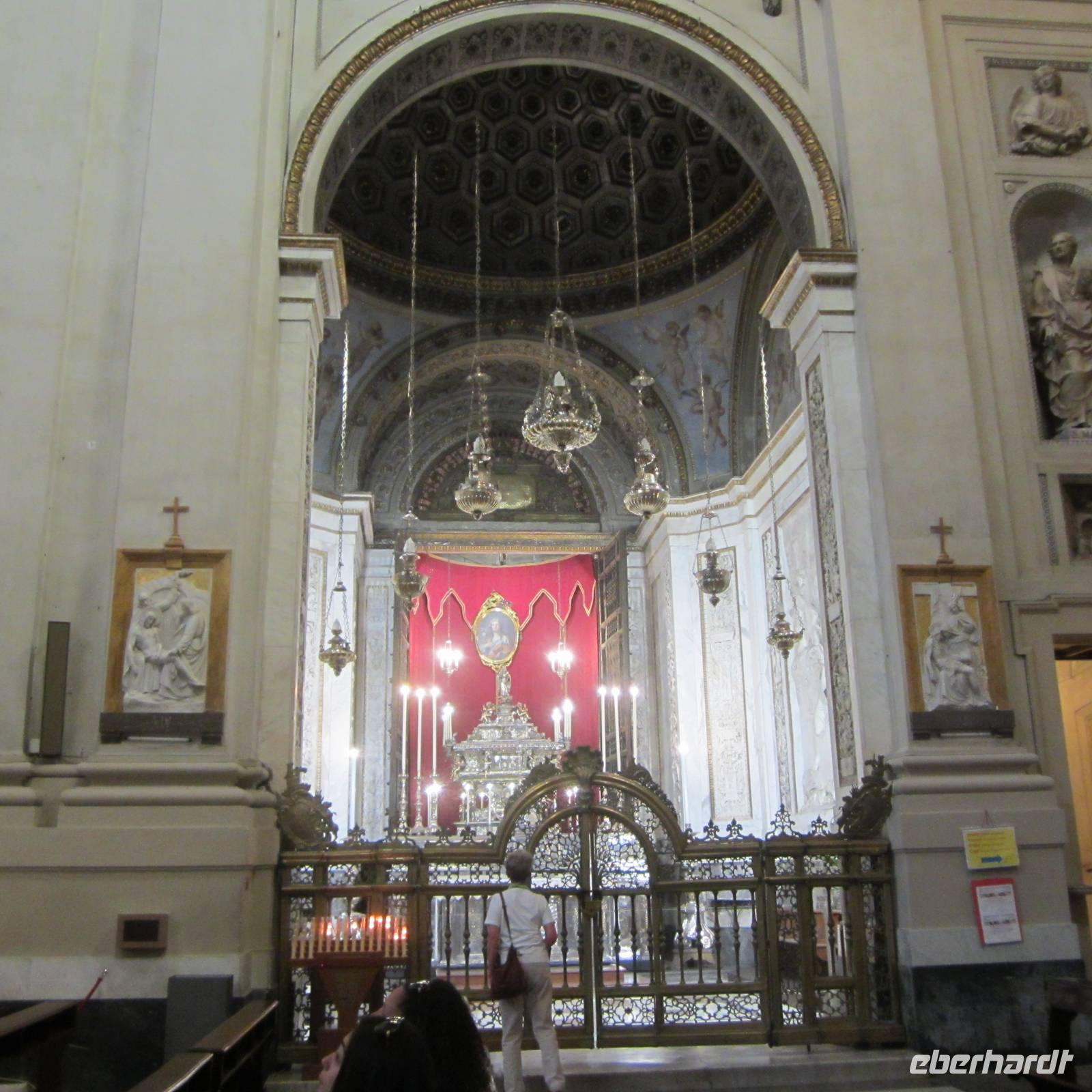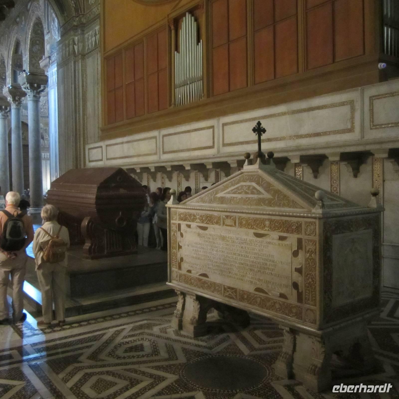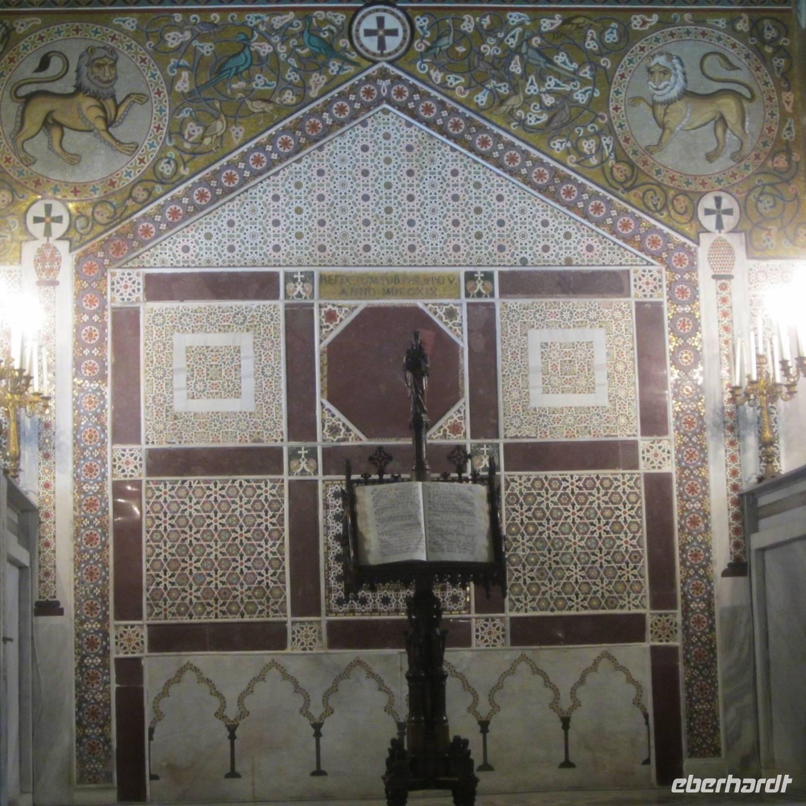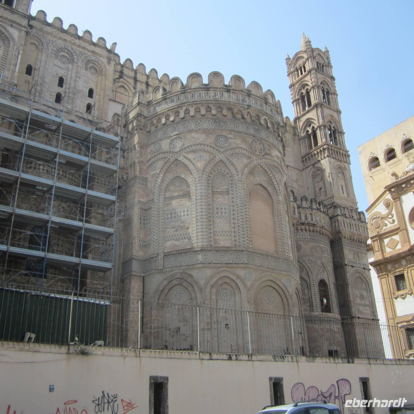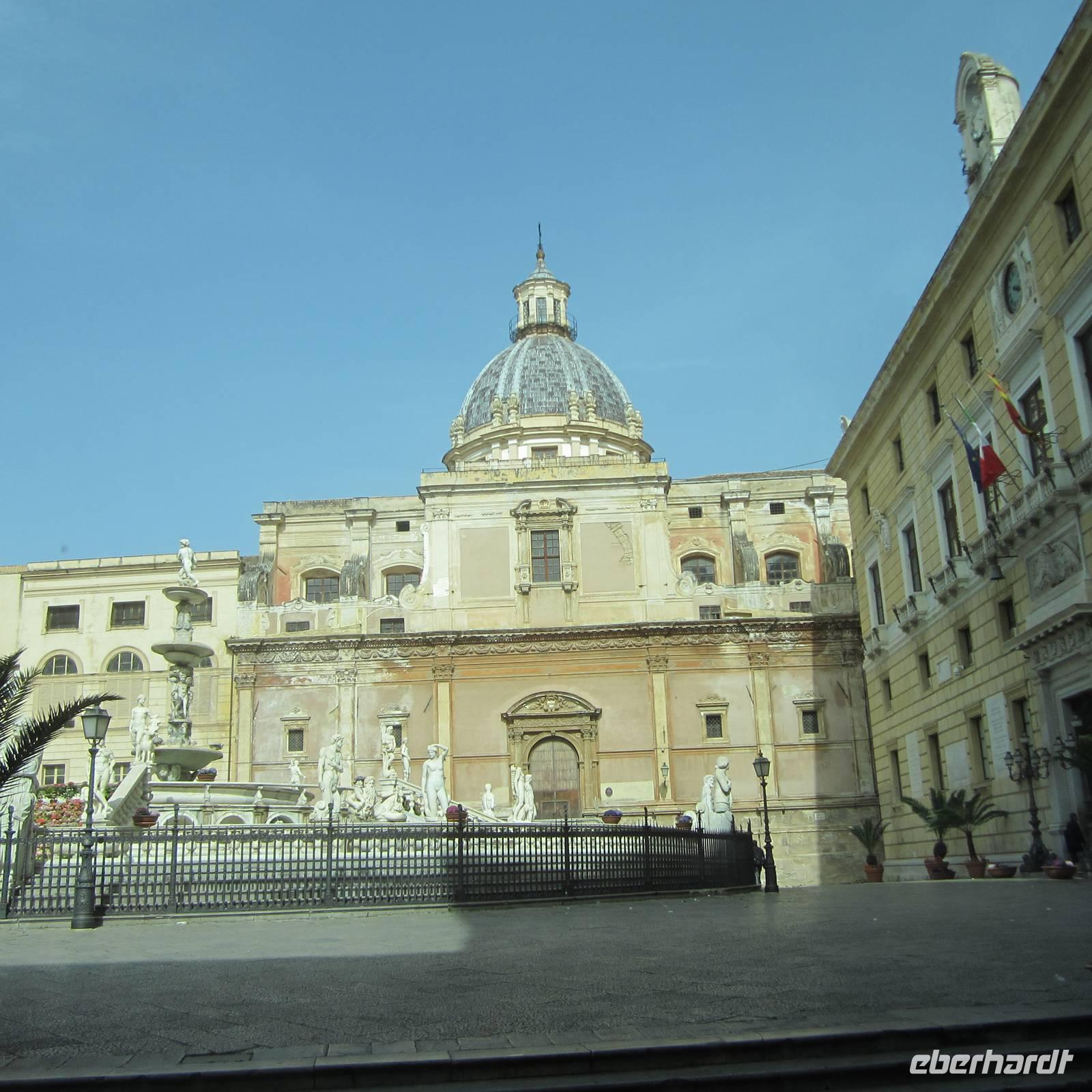 Das Hoch, das uns in den letzten Tagen das schöne Wetter bescherte, hält an und trotzdem möchte keiner den Tag am Meer verbringen, sondern die Hauptstadt der Insel erleben. Wir beginnen die Führung in Monreale und besuchen das bedeutendste Denkmal der Normannenkunst auf Sizilien. Nach den 90 Stufen, die wir gehen oder aber mit einem Taxi fahren, stehen wir vor dem prächtigen Dom. Im Inneren sind wir von den kostbaren Mosaiken überwältigt. Was Künstler hier im 12. Jd. geschaffen haben, ist einmalig. Im Anschluss gehen wir durch den berühmten