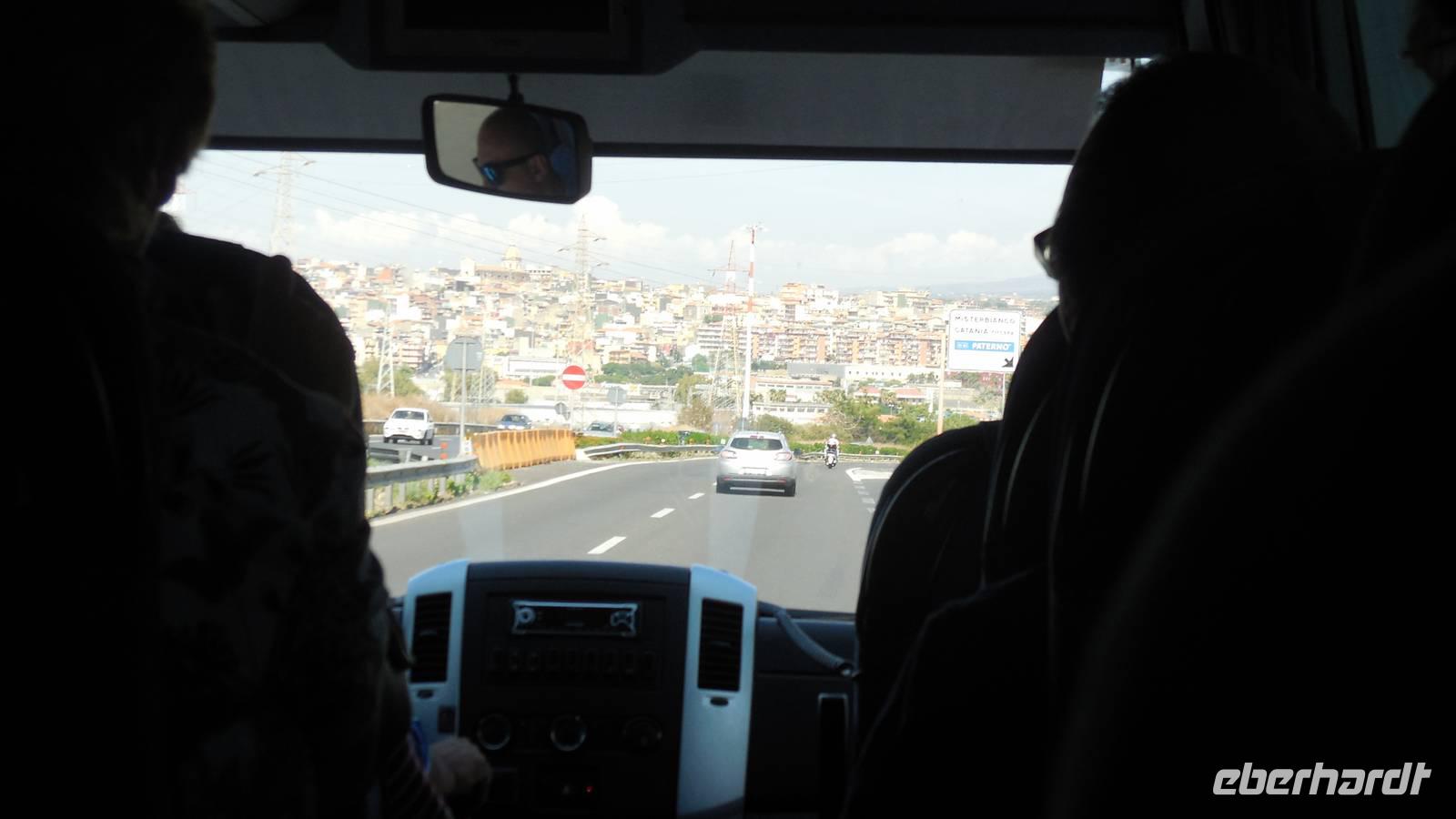 Als wir uns beim reichhaltigen Frühstück gestärkt hatten ging es los zu unserem ersten Ausflug mit unserem Rundreise-Bus und unserem Busfahrer Gaitano nach Catania.