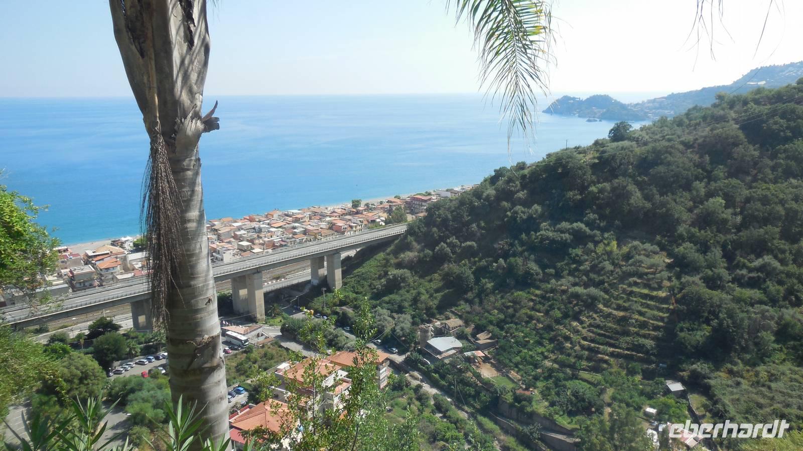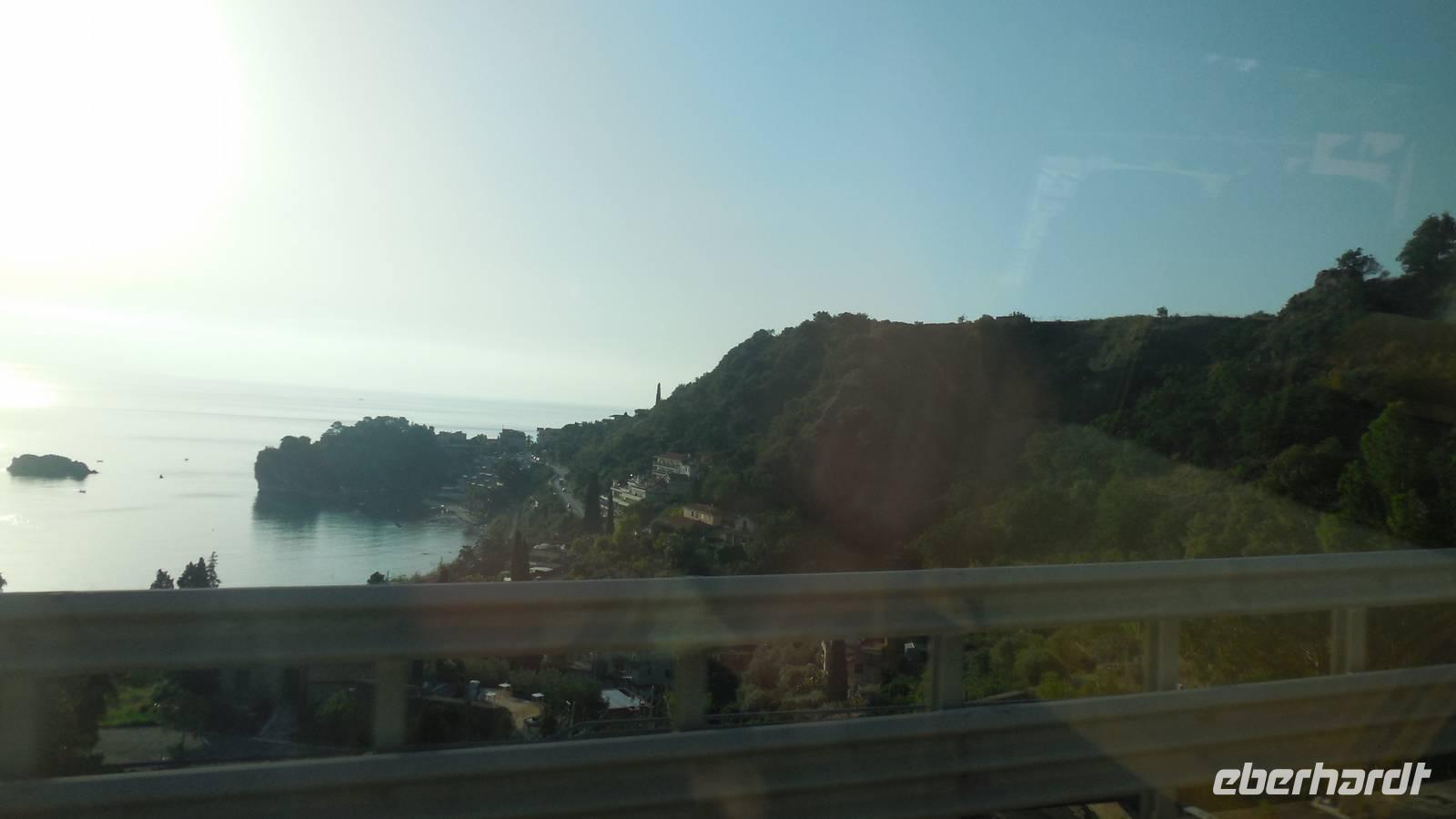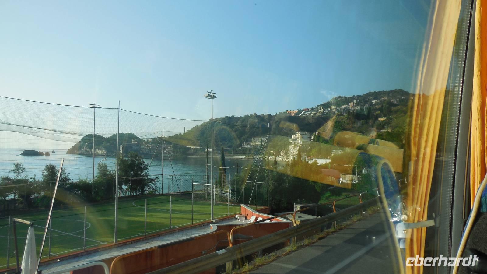 Wir fuhren dann zu unserem ersten Hotel in Letojanni, es war das auf einem Berg liegende Olimpo Antares. Wir bezogen unsere Zimmer und haben uns die Zeit bis zum Abendessen mit der wundervollen Aussicht über Letojanni vertrieben.