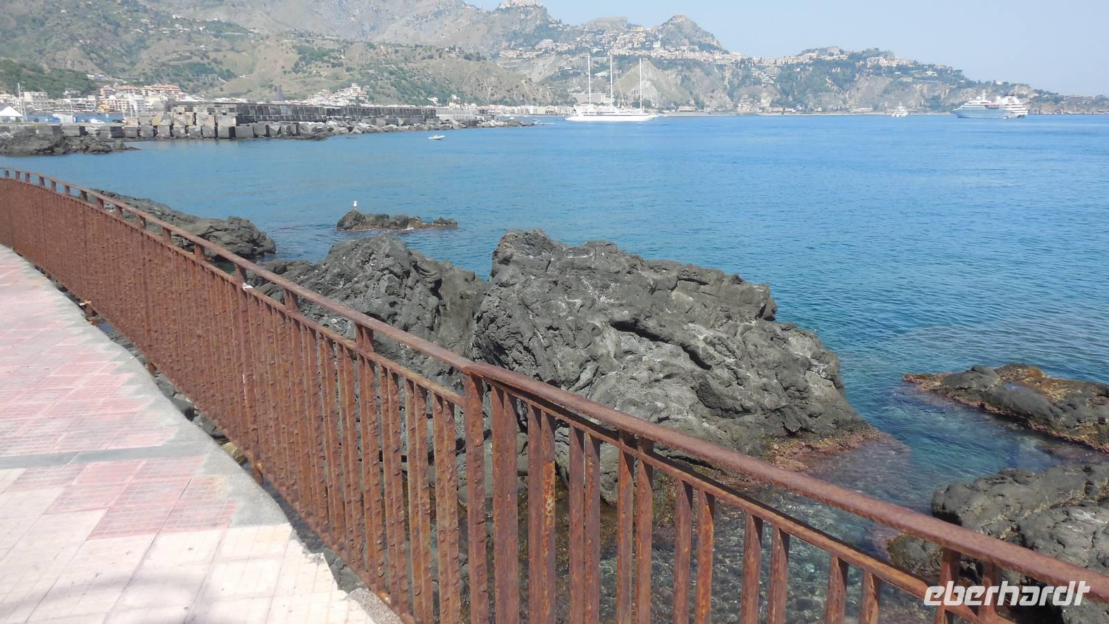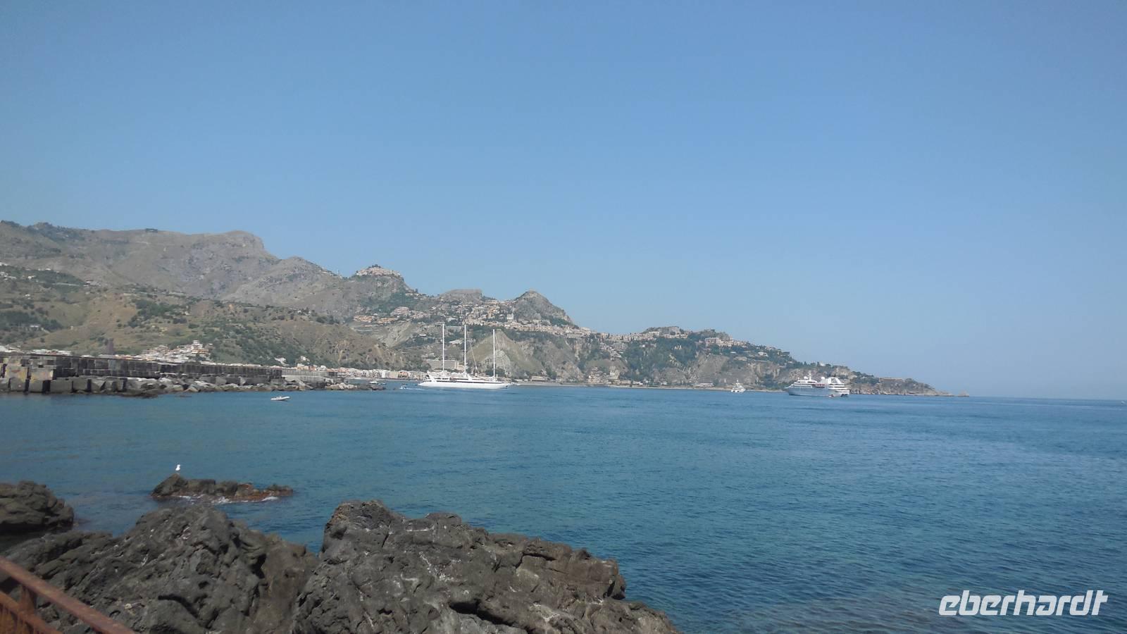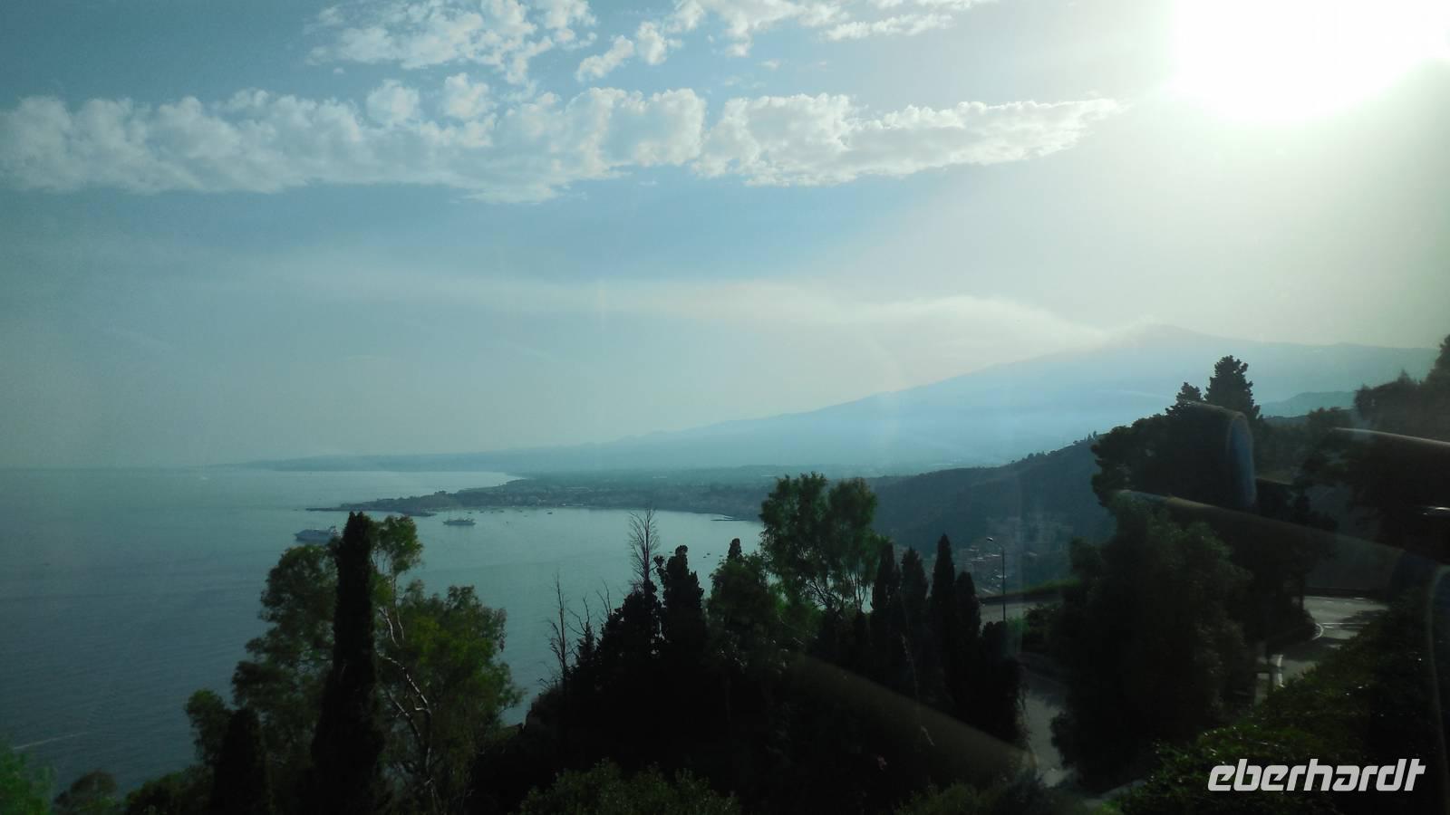 Wir fuhren dann zu unserem ersten Hotel in Letojanni, es war das auf einem Berg liegende Olimpo Antares. Wir bezogen unsere Zimmer und haben uns die Zeit bis zum Abendessen mit der wundervollen Aussicht über Letojanni vertrieben.