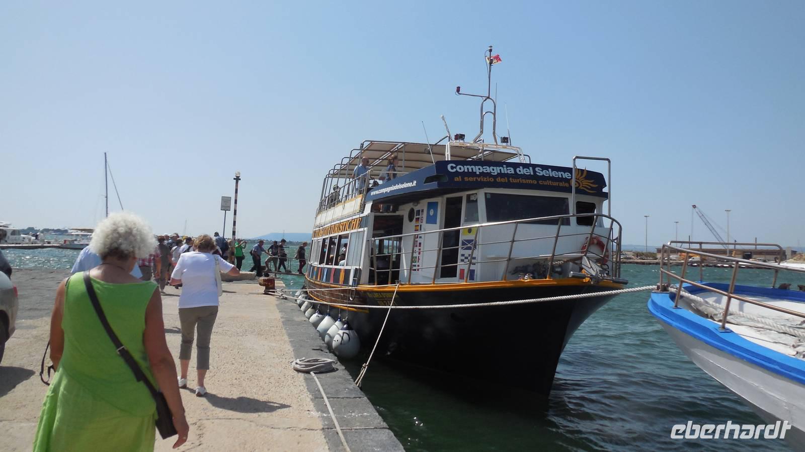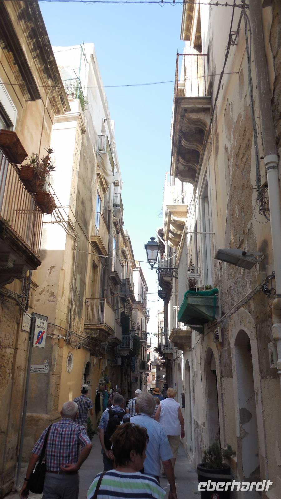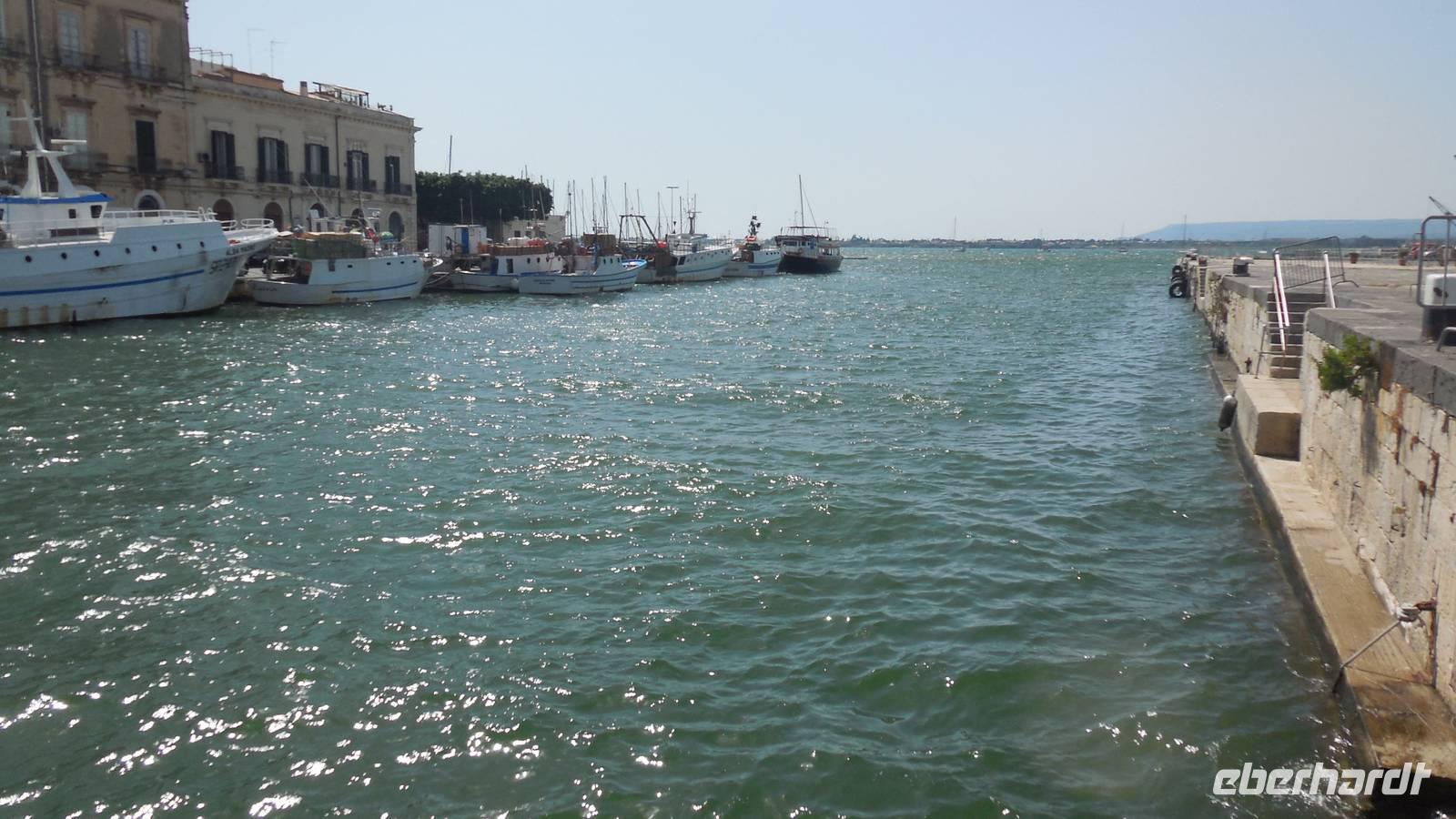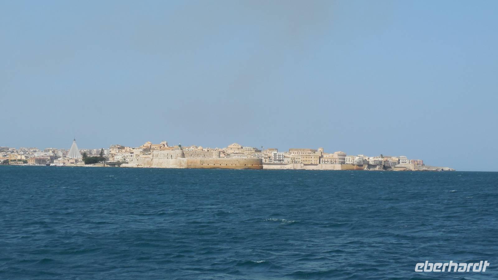 Als wir die archäologische Zone dann erkundet hatten fuhren wir in die Stadt Syrakus und unternahmen eine Schiffsrundfahrt durch die Bucht. Nachdem wir alle wieder gut im Hafen angekommen waren, durchstreiften wir die Stadt und Renate erklärte uns Interessantes über Land und Leute, währenddessen wir uns das Rathaus, die Kathedrale und die Überbleibsel des Apollo-Tempels anschauten.