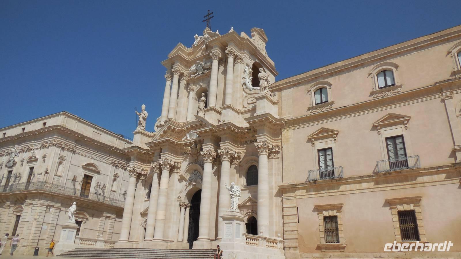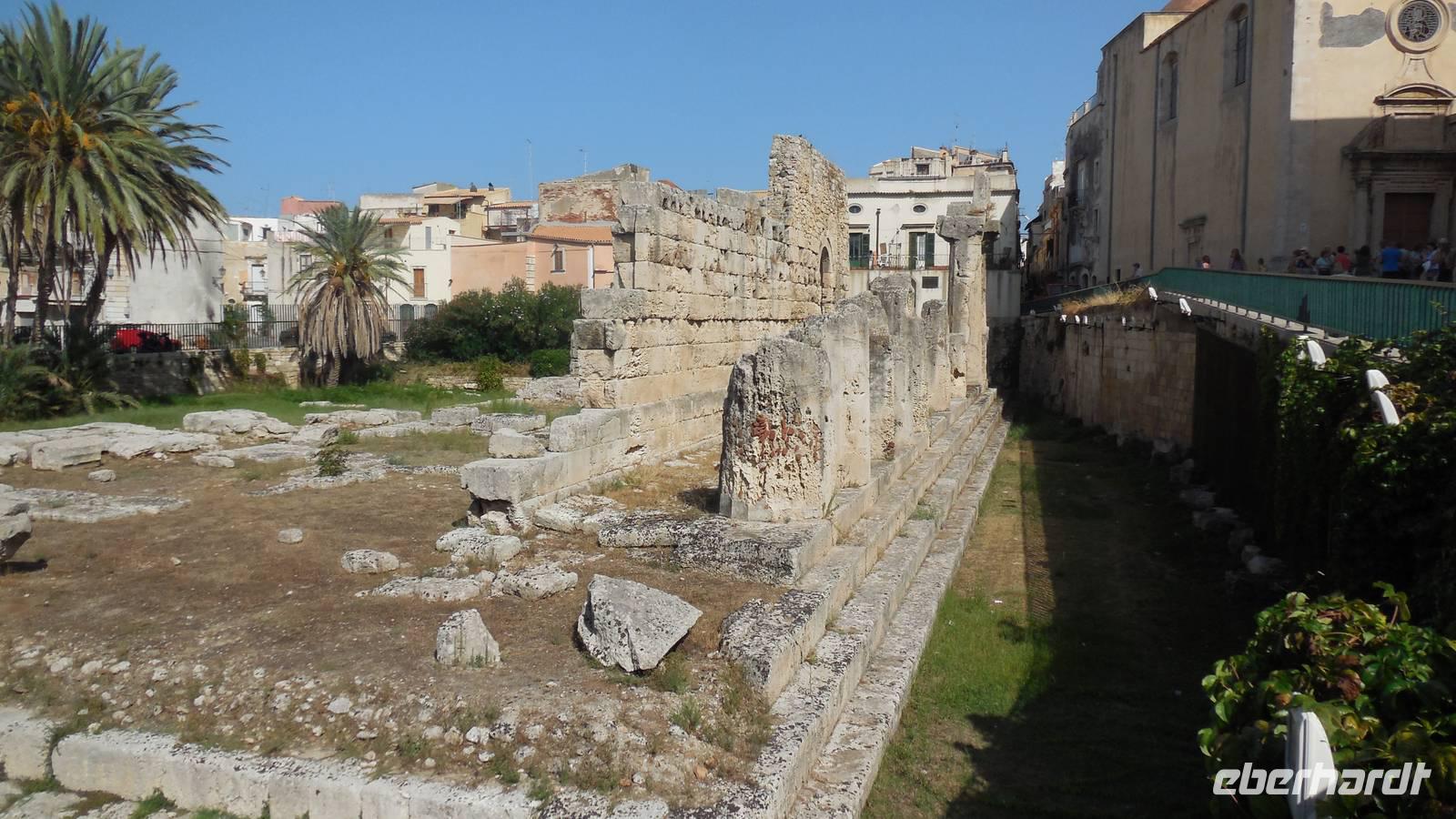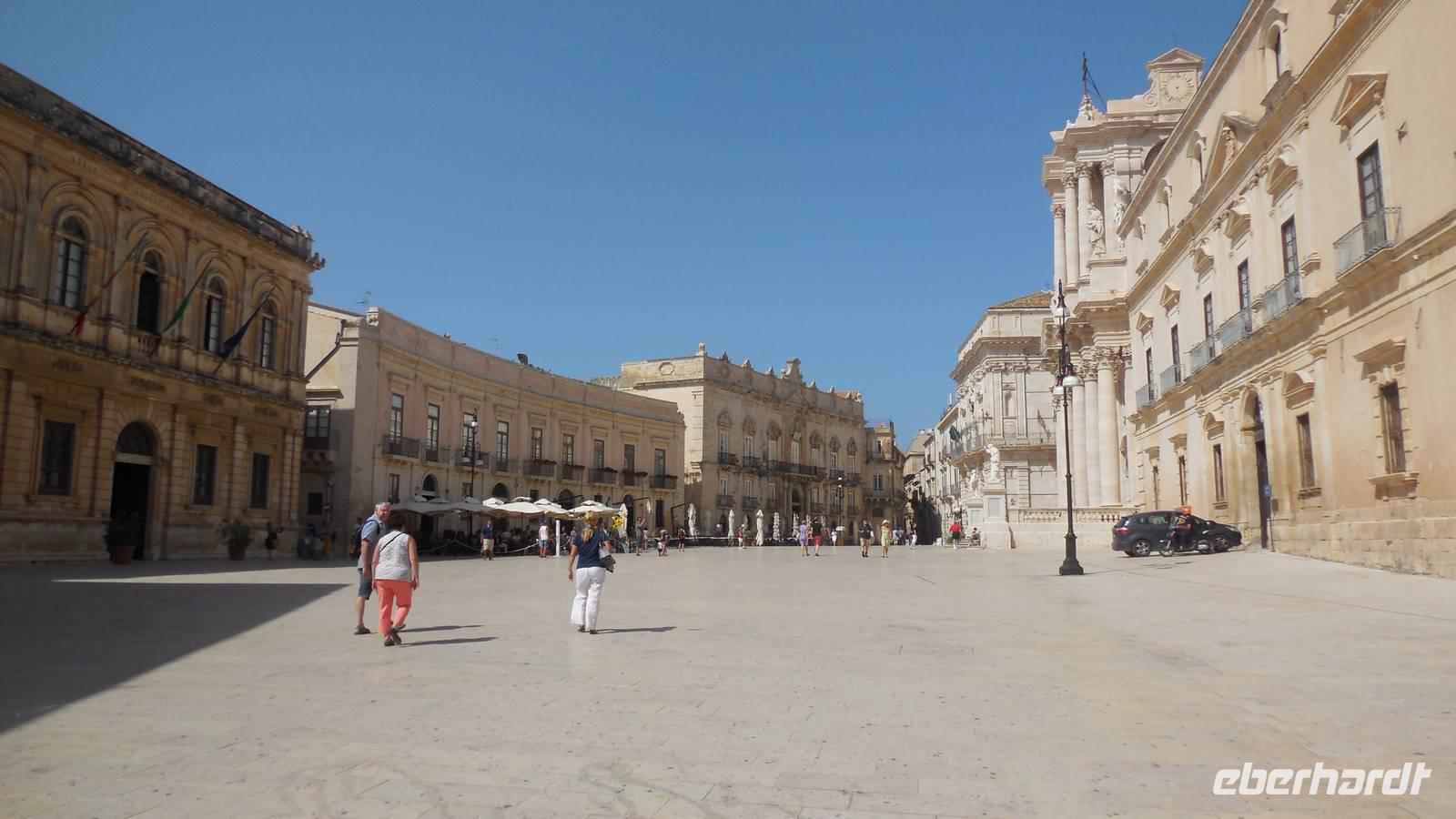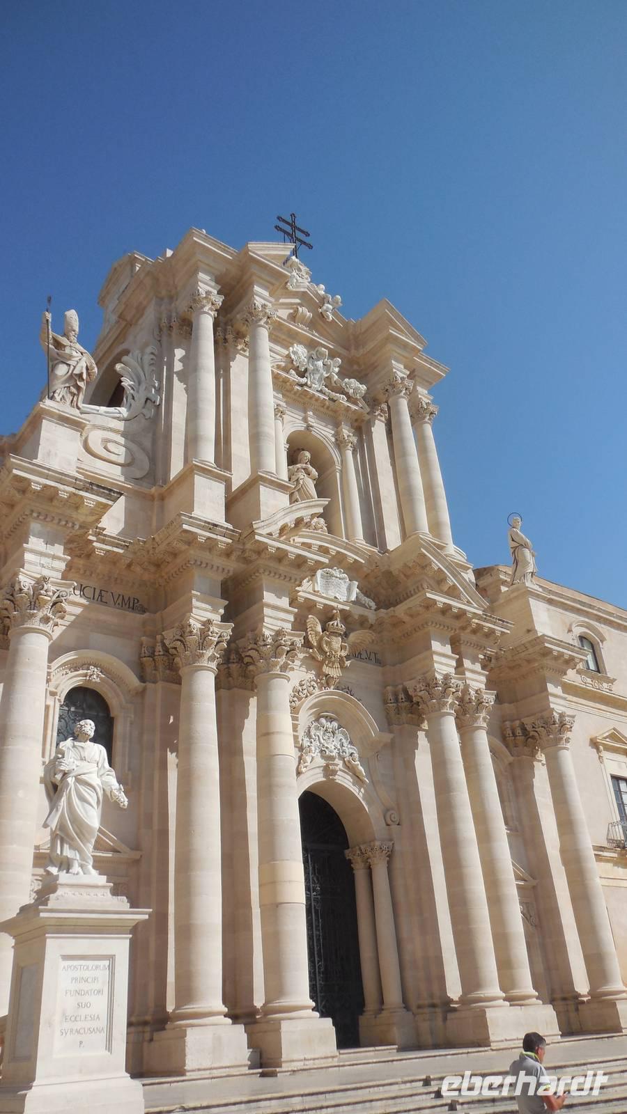 Als wir die archäologische Zone dann erkundet hatten fuhren wir in die Stadt Syrakus und unternahmen eine Schiffsrundfahrt durch die Bucht. Nachdem wir alle wieder gut im Hafen angekommen waren, durchstreiften wir die Stadt und Renate erklärte uns Interessantes über Land und Leute, währenddessen wir uns das Rathaus, die Kathedrale und die Überbleibsel des Apollo-Tempels anschauten.