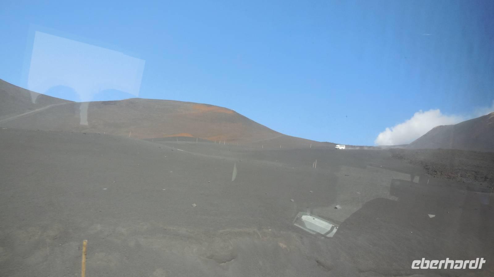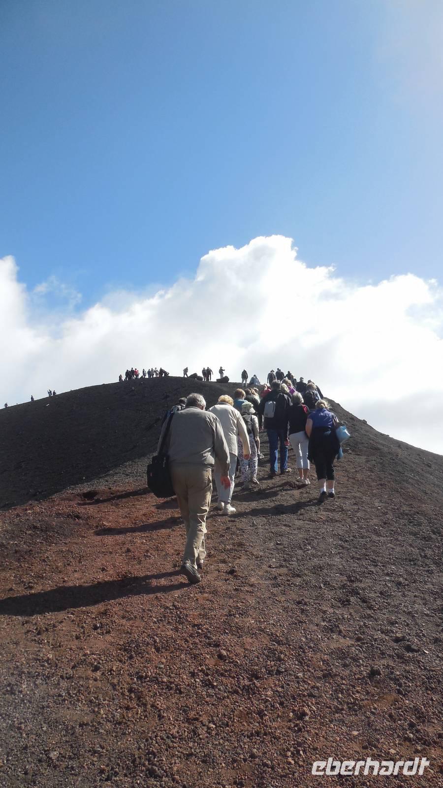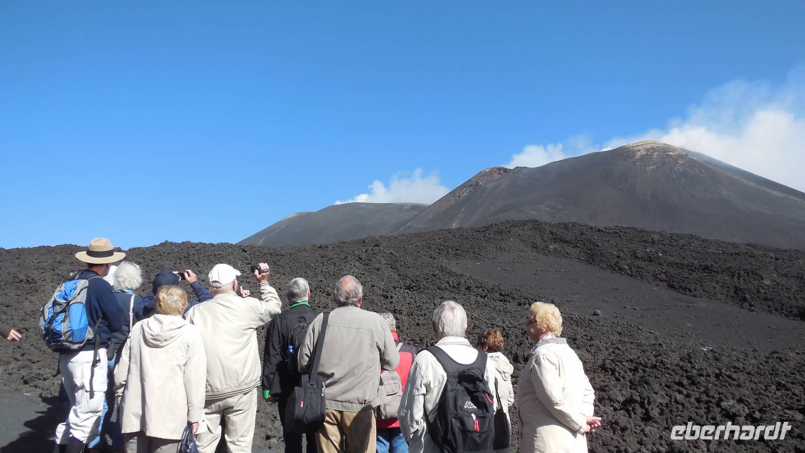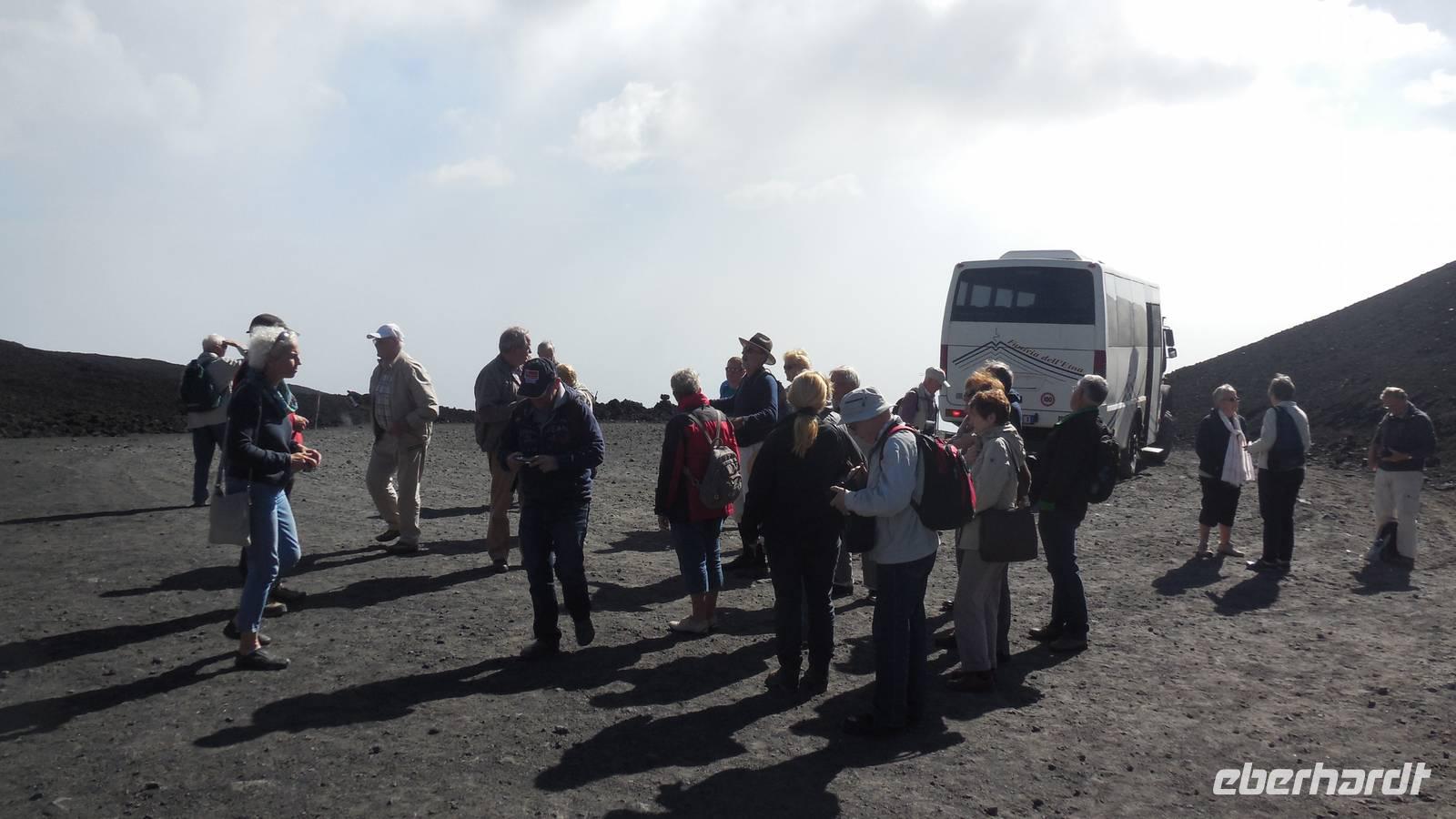Heute entschlossen wir uns dazu unsere Tour auf den Ätna anzugehen und nach dem Frühstück starteten wir direkt mit dem Bus in die luftige Höhe von ca. 2200 Metern. Nachdem wir dort angekommen waren fuhren wir mit der Seilbahn auf etwa 2400 Meter und stiegen in die Jeeps um, denn das letzte Stück war nicht anders zu erklimmen. Auf 2960 Metern über dem Meeresspiegel erkundeten wir die Kraterlandschaft des Ätnas und seiner vielen faszinierenden Nebenkrater. Nach der Führung durch den Bergführer fuhren wir wieder zur Talstation der Seilbahn und trafen uns alle am Bus um wieder ans Meer zu fahren. Unser Mittagessen nahmen wir im Restaurant "La Terrazza" zu uns und hatten dabei einen weiten Blick über das Mittelmeer.