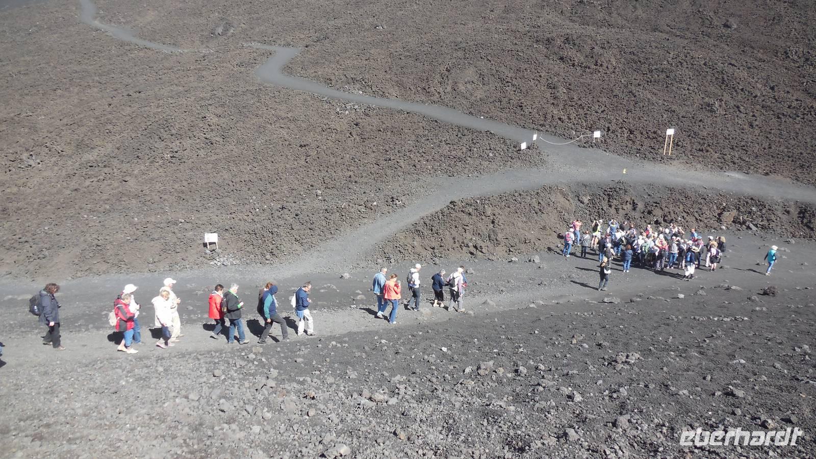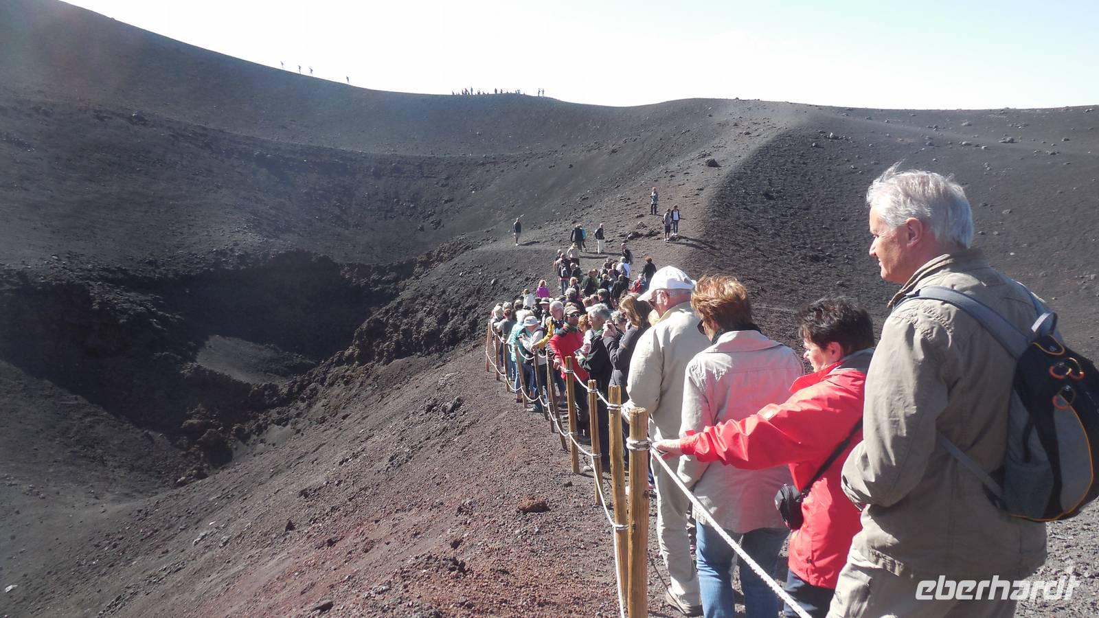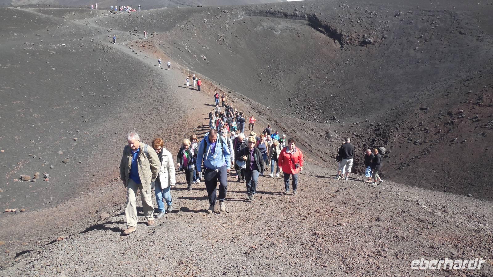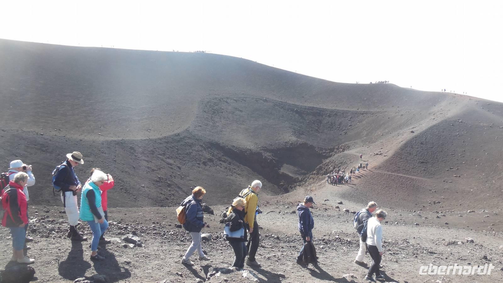 Heute entschlossen wir uns dazu unsere Tour auf den Ätna anzugehen und nach dem Frühstück starteten wir direkt mit dem Bus in die luftige Höhe von ca. 2200 Metern. Nachdem wir dort angekommen waren fuhren wir mit der Seilbahn auf etwa 2400 Meter und stiegen in die Jeeps um, denn das letzte Stück war nicht anders zu erklimmen. Auf 2960 Metern über dem Meeresspiegel erkundeten wir die Kraterlandschaft des Ätnas und seiner vielen faszinierenden Nebenkrater. Nach der Führung durch den Bergführer fuhren wir wieder zur Talstation der Seilbahn und trafen uns alle am Bus um wieder ans Meer zu fahren. Unser Mittagessen nahmen wir im Restaurant "La Terrazza" zu uns und hatten dabei einen weiten Blick über das Mittelmeer.