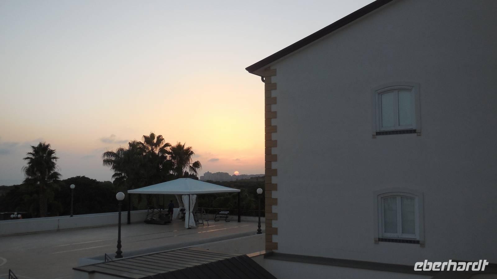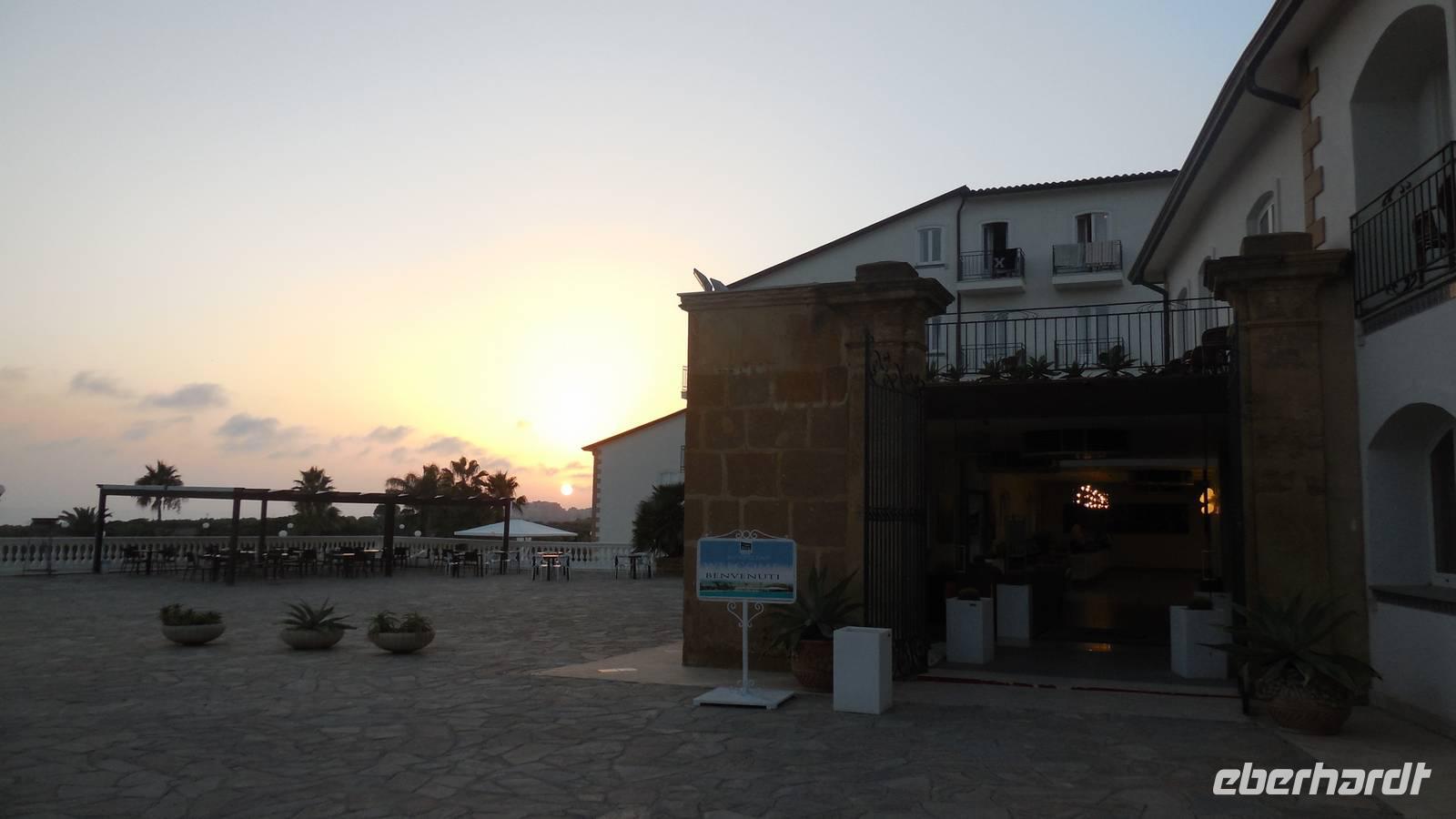 Unser Hotel in Campofelice stand unser drittes und letztes Hotel, das "Fiesta Athénee Palace" welches direkt am Meer gelegen war. Nachdem wir uns in den klimatisierten Zimmern etwas erholt hatten gingen wir gemeinsam zum Abendessen und wurden mit italienischen Klängen aus Flöte, Gitarre und Tamburin empfangen.