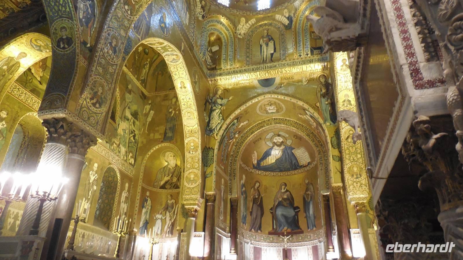 An dem fakultative Ausflug nach Monreal und Palermo nahmen bis auf zwei Gäste, die diese Städte bei einem Zwischenstopp einer Kreuzfahrt schon einmal erkundet hatten, alle anderen teil. Die Capella Pallatina empfing uns mit weiteren schönen Mosaiken und wir fotografierten was wir nur vor die Linse bekommen konnten um die Schönheit der damaligen Kunst einzufangen. Unsere Renate erklärte uns jedes Mosaik im Detail und man konnte gar nicht anders als fasziniert zu sein.