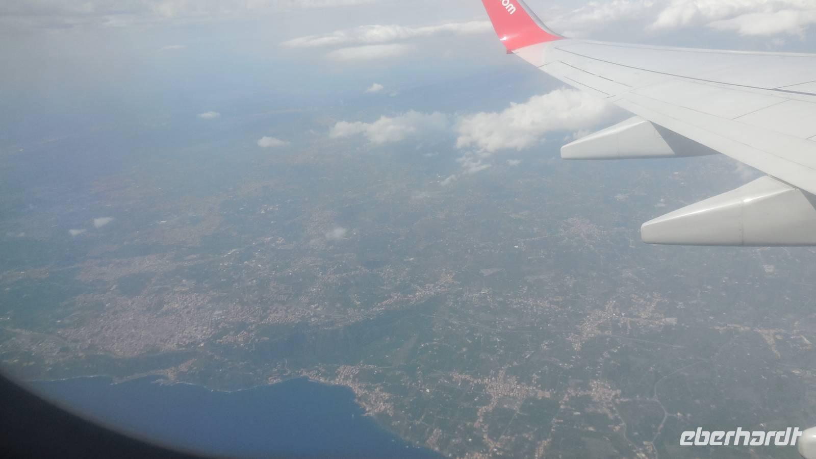 Der Flug nach Catania verlief ohne Zwischenfälle und es gab den allseits beliebten Tomatensaft und etwas zu essen.