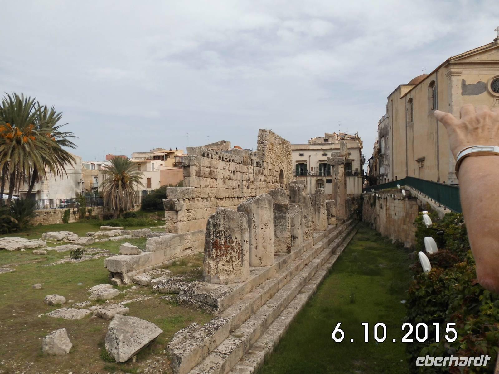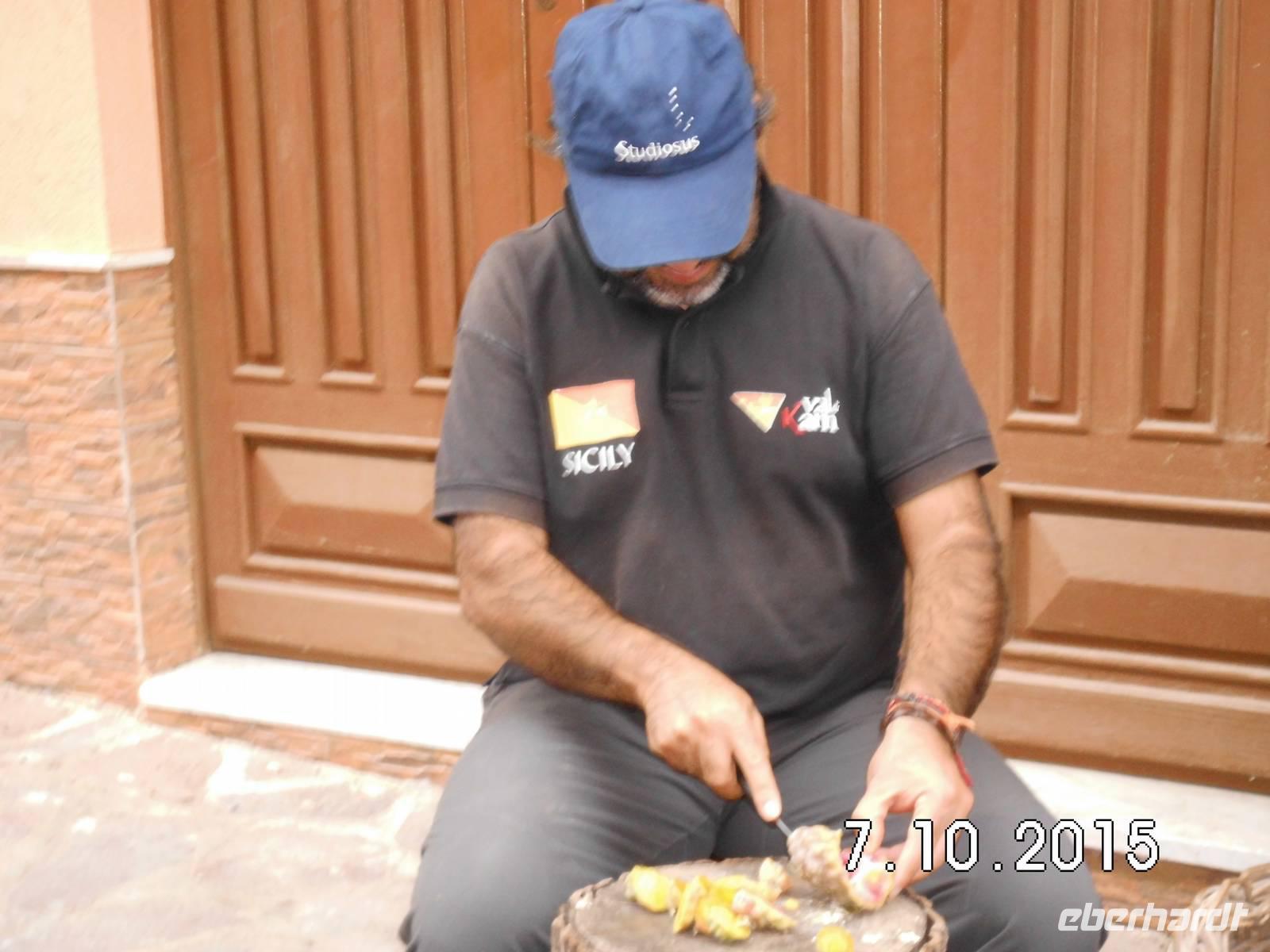 einheimische Obst kosten und natürlich auch sehr preisgünstig erwerben.Den Vorschlag,eine Schiffsfahrt zu unternehmen,nahmen wir gern an .Bei einem Stadtrundgang zeigte Renate uns die Insel Ortega und natürlich den Dom.Der Nachmittag gehörte ganz der Stadt Syrakus.Wir besichtigten die archäologische Zone mit dem Ohr des Dionysos und natürlich die Aretusaquelle.Im Cafe wurde auf Wunsch einer Dame ein ungewöhnlicher Eiscafe kredenzt,