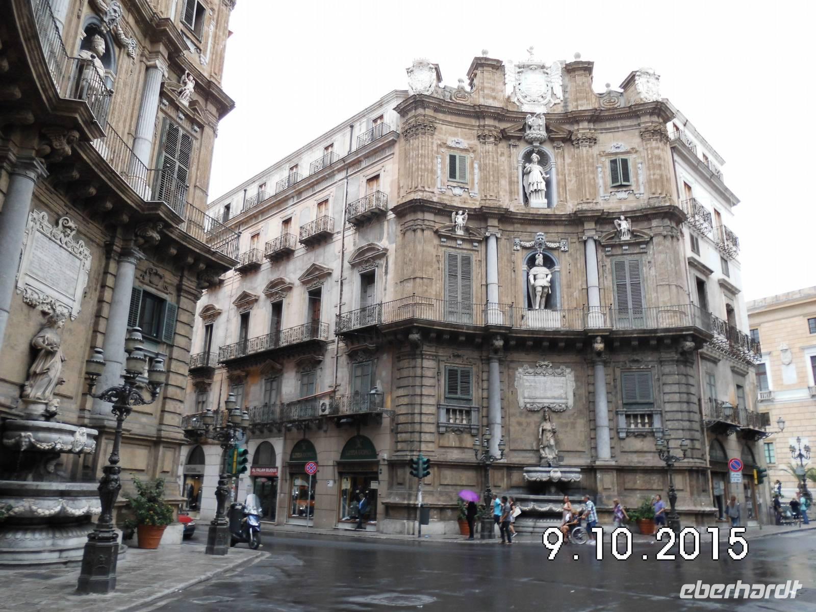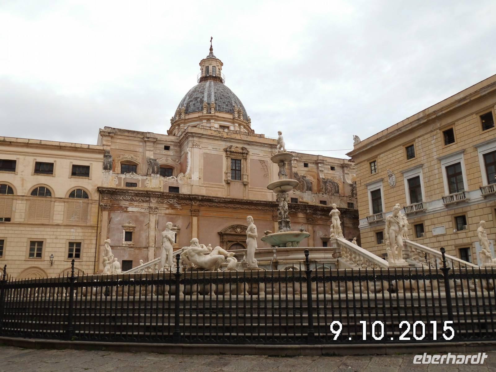 Kirchen umgebaut wurden.Auch den bekannten „Schambrunnen" und die Quattro Kanti zeigte Renate uns. Im Stadtpark hatten sie und unser Fahrer Antonio ein sizilianisches