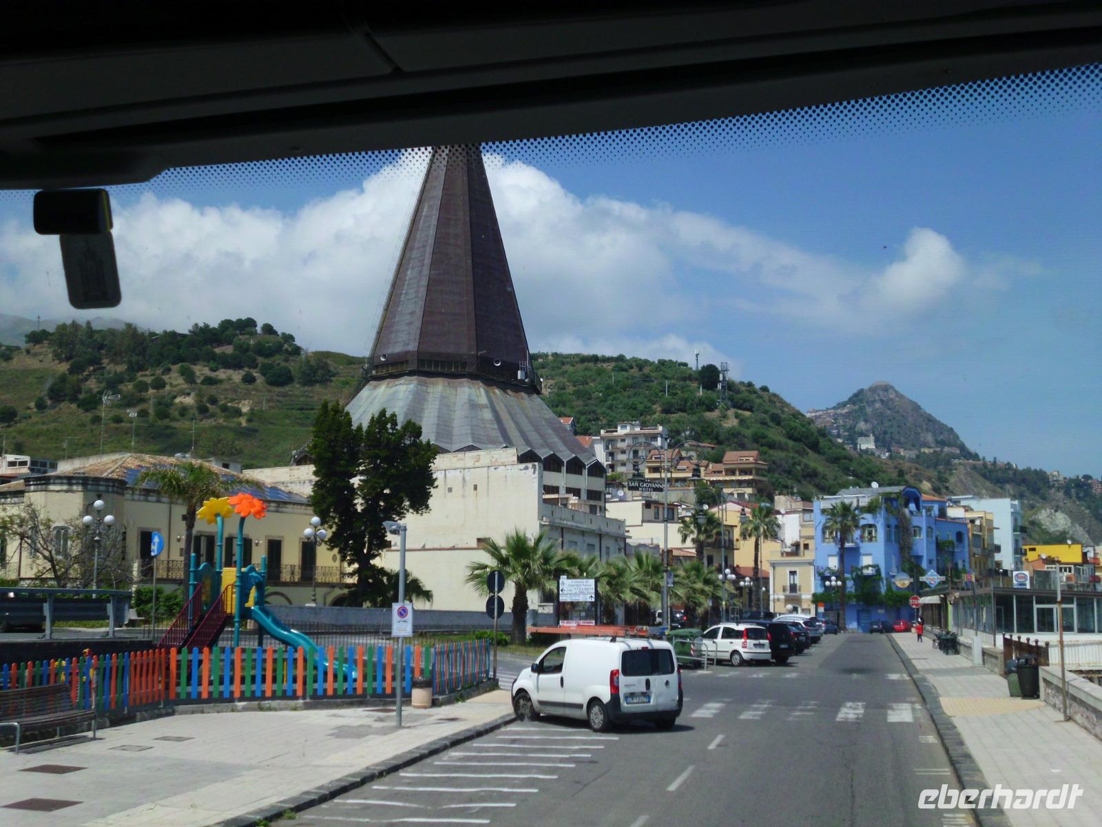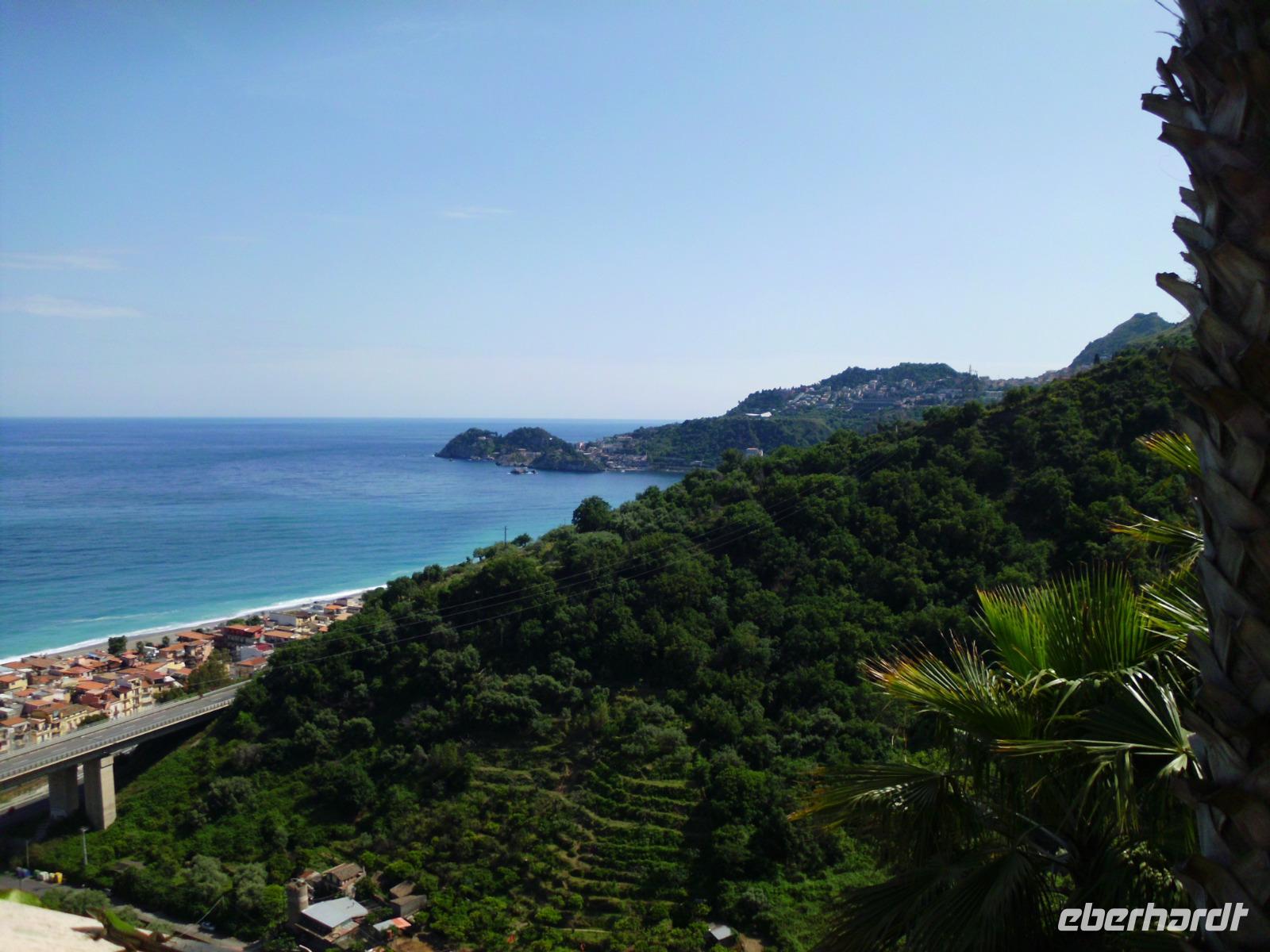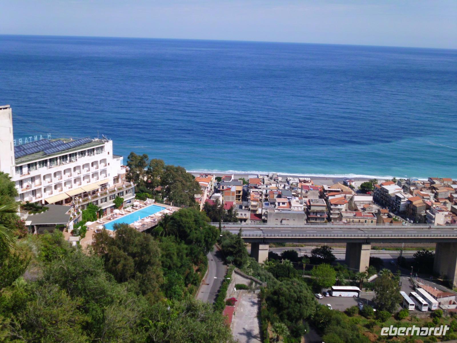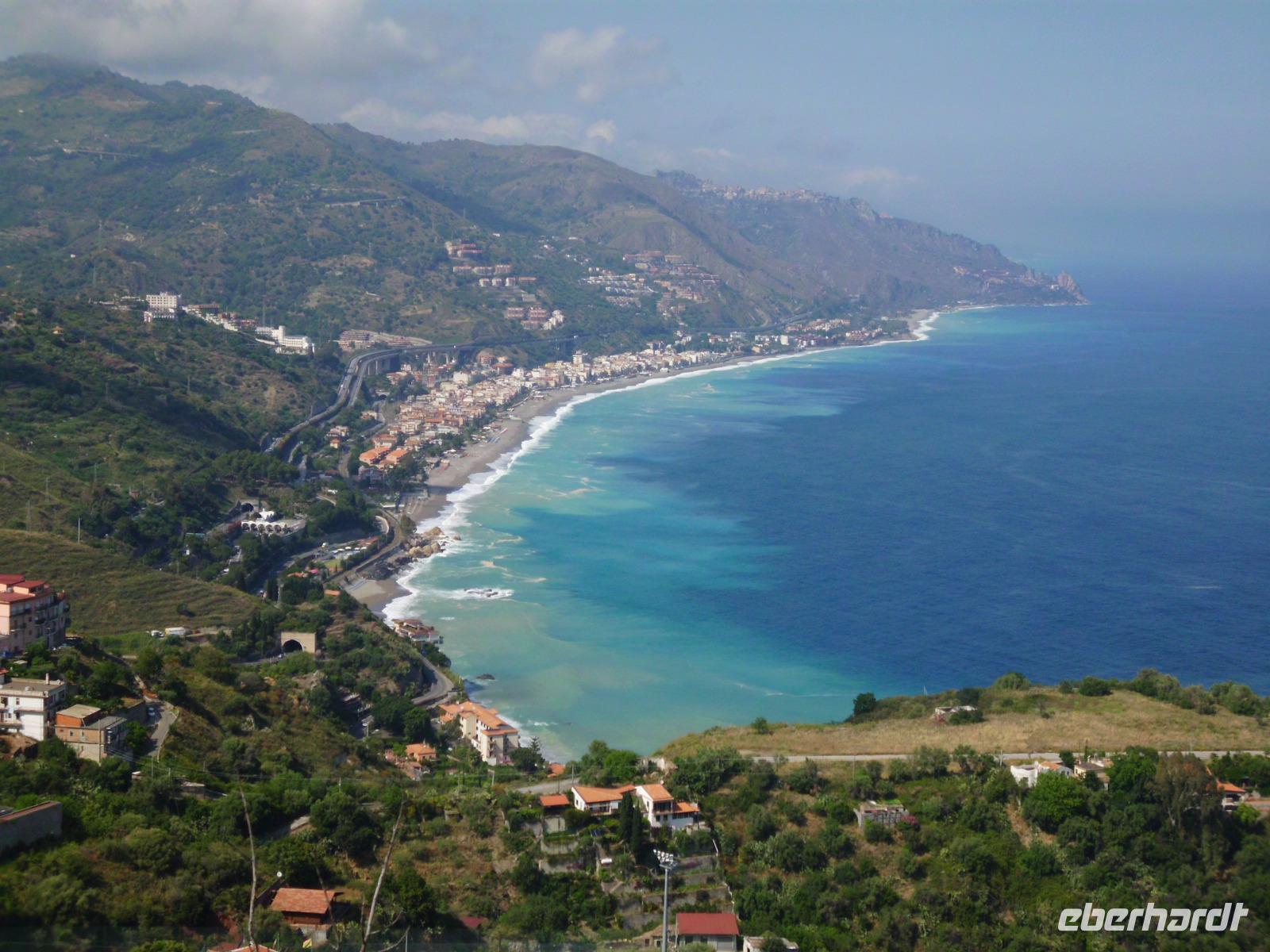 Bevor wir weiter nach Taormina fahren, verbringen wir unsere Mittagspause wieder in dem kleinen Restaurant am Meer in Giardini Naxos. Die schöne Stadt Taormina, die wir von hier aus nur aus der Ferne sahen ist nun zum Greifen nahe. Eindrucksvoll auch die Fahrt vorbei an der Küste von Taormina und der legendären Isola Bella. Nach Taormina bringt uns ein Shuttle-Bus, ein bisschen beschwerlich, da es nur mir Drängeln und Schubsen geht. Wir besichtigen das römische Theater, welches durch seine Lage am Meer und die besondere Bauweise eine hervorragende Akustik aufweist. Es bleibt noch Zeit durch diesen schmucken Ort mit seinen Gässchen und dem Umberto Corso zu bummeln, vorbei an herrlichen Konditoreien mit ihren üppigen Marzipanangeboten. Auf dem Piazza IX. Aprile mit seinem tollen Aussichtspunkt bietet sich ein Kaffeepäuschen regelrecht an.