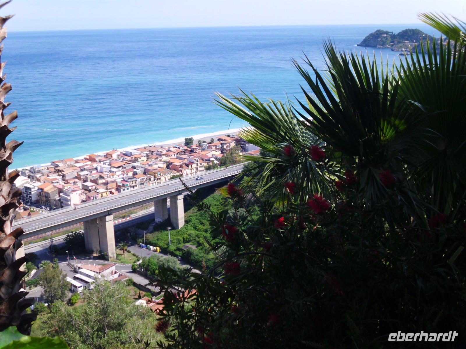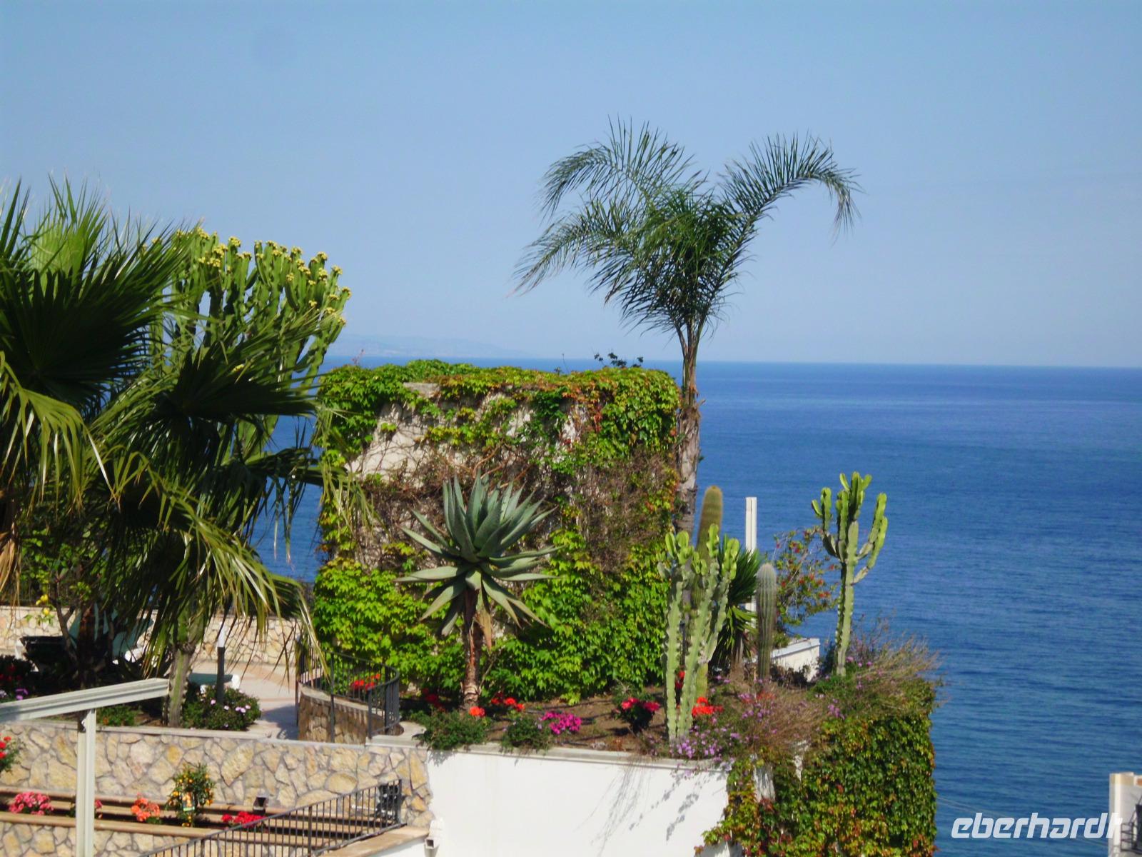 Am Abend checken wir ein im Norden der Insel in das „Hotel Fiesta Resort" in Campofelice di Roccella. Es erwartet uns ein großzügig angelegtes Hotel, direkt am Meer mit Pools und einem herrlichen Garten. Korrallenbäume, Zitronenbäume, Zylinderputzer - die Vegetation ist ein Traum. Unsere Bitte wurde erhört und alle Gäste können nun ein Meerblickzimmer beziehen.