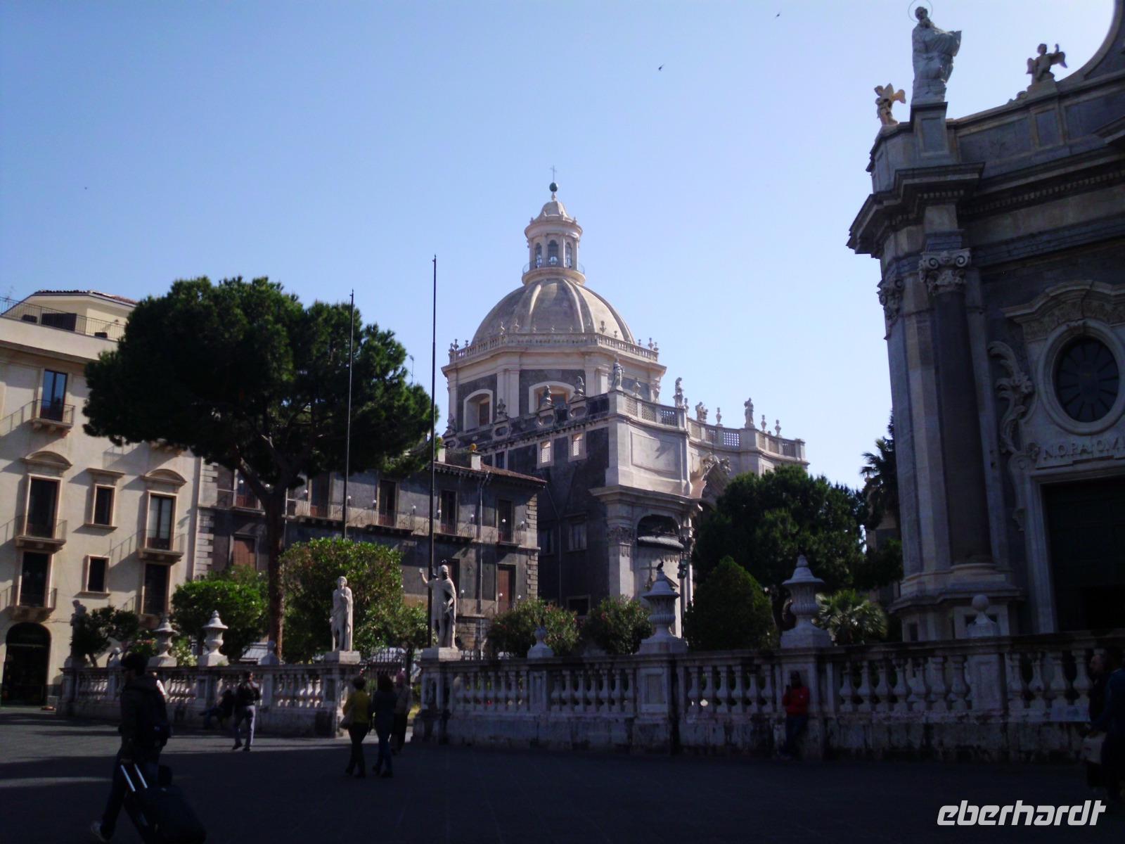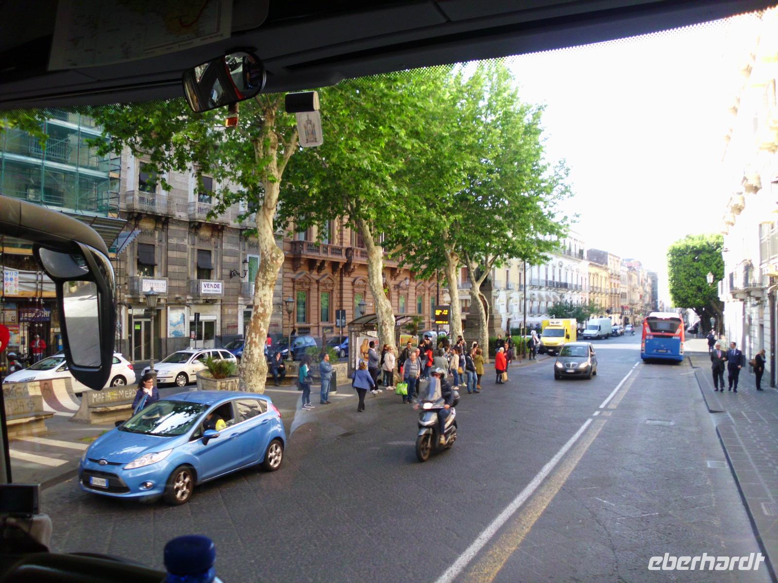 Heute stehen Catania und Syrakus, 2 geschichtsträchtige Städte auf dem Programm. Catania heißt übersetzt: auf Lava wieder aufgebaut, nachdem 1693 ein schweres Erdbeben die Stadt zerstörte. Auf dem allmorgendlichen Fischmarkt sind prächtige Exemplare des Meeres zu sehen; Schwertfisch, Thunfisch, Meeresche. Auch der angrenzende Gemüsemarkt mutet exotisch an, viele Gemüsesorten kennen wir nicht.