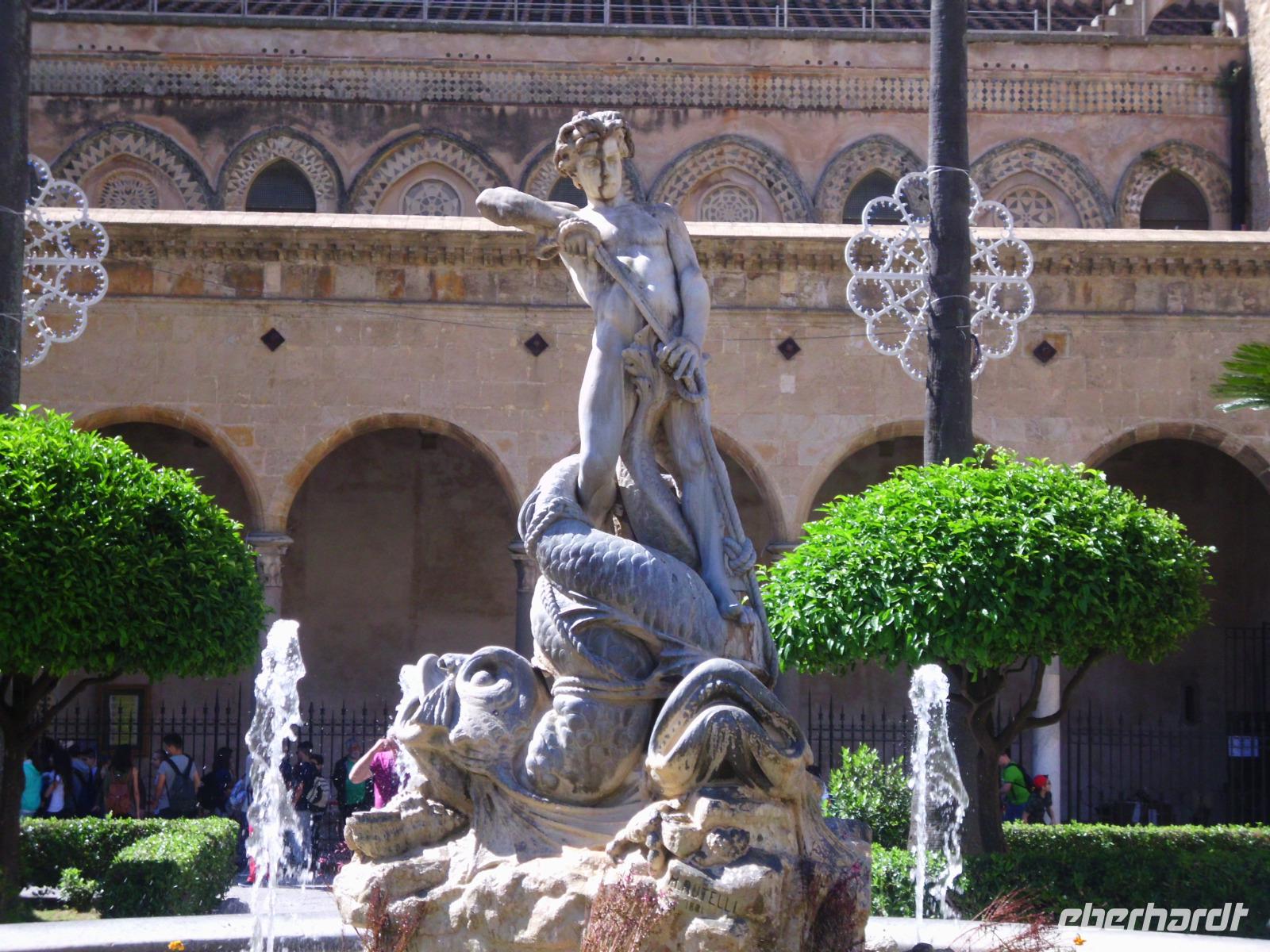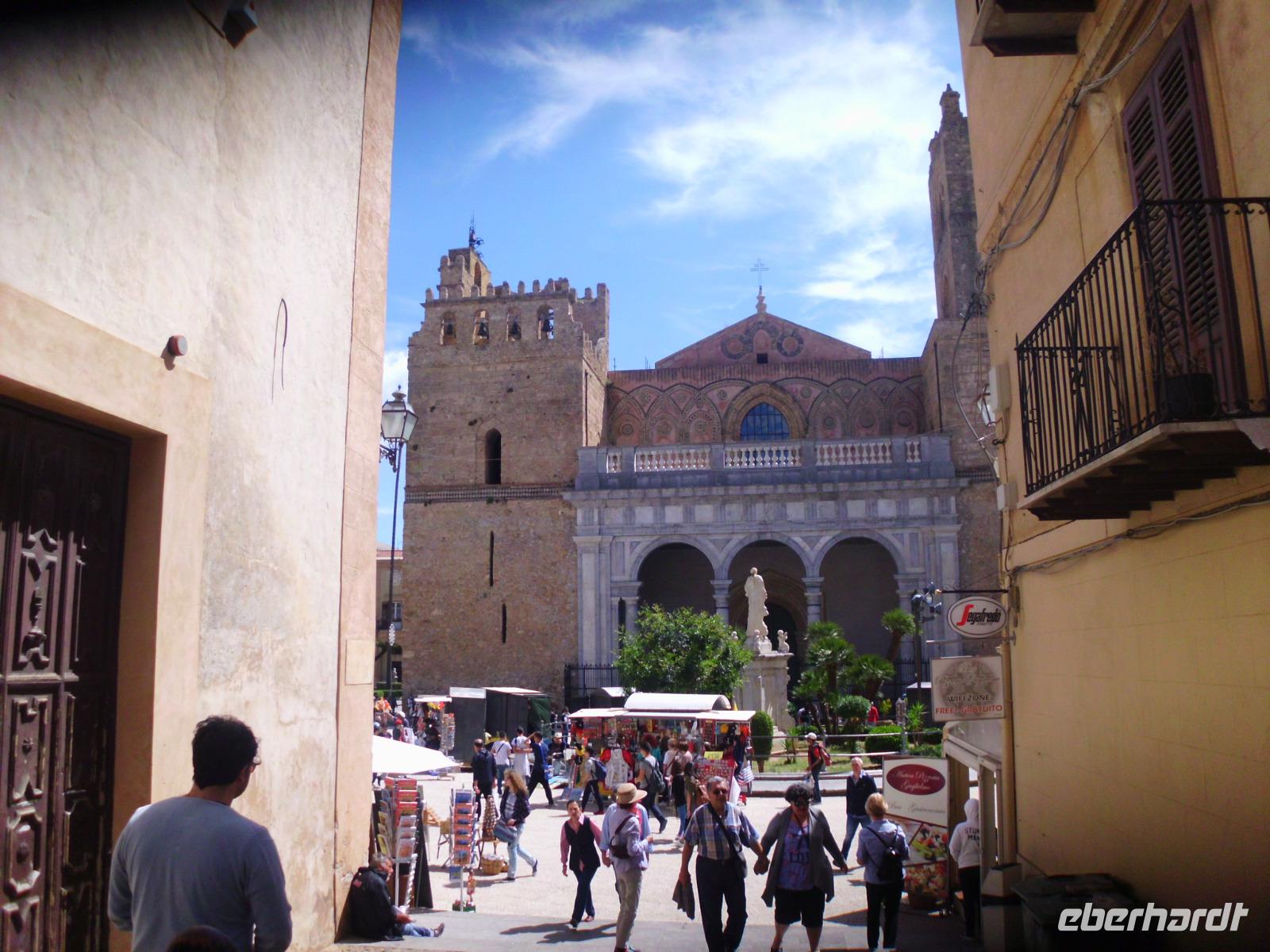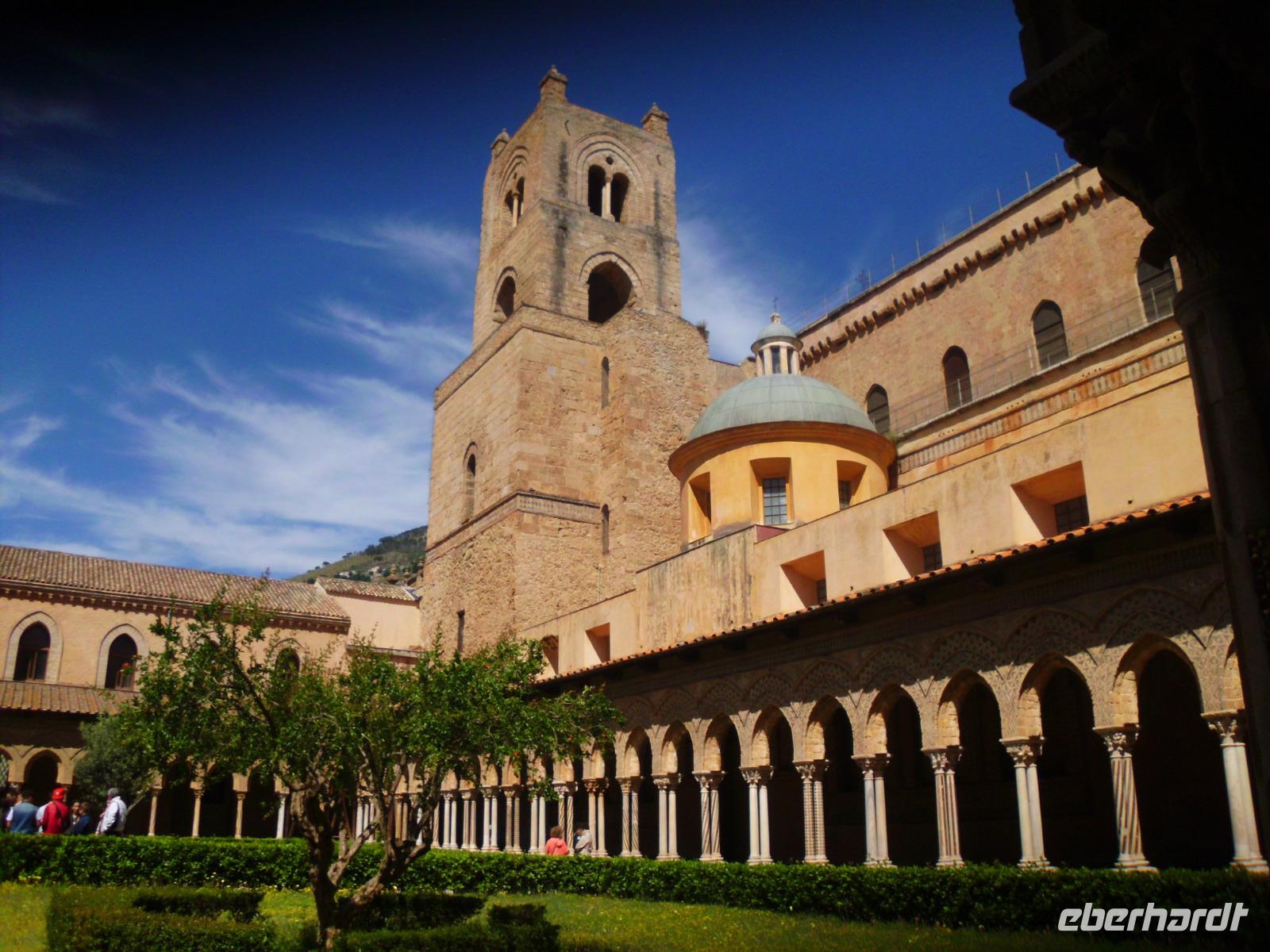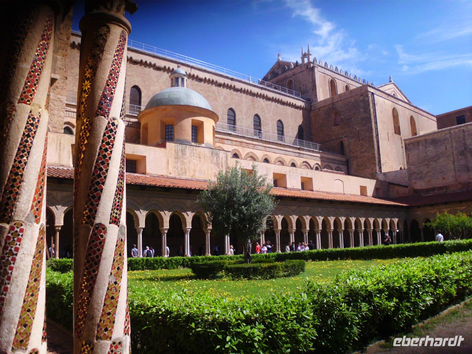 Es ist noch recht ruhig und beschaulich, als wir Monreale erreichen. Wir besichtigen den Dom und den Kreuzgang, haben noch einen herrlichen Blick auf Palermo und genießen das Flair von diesem idyllischen Stadtteil. In Palermo wird der Palazzo Reale (Normannenpalast) mit der darin erbauten Cappella Palatina besichtigt, später besichtigen wir die imposante Kathedrale in Palermo.