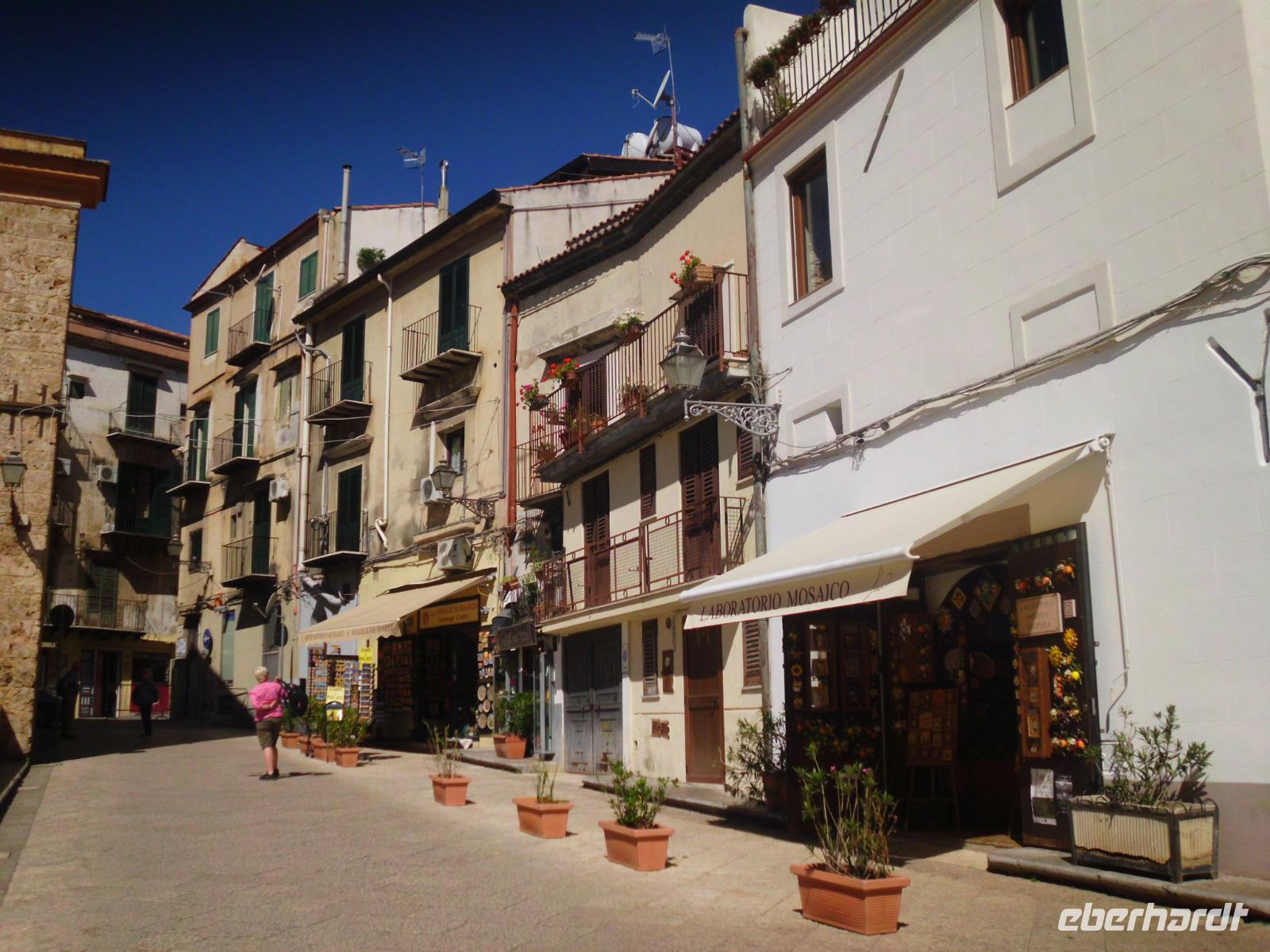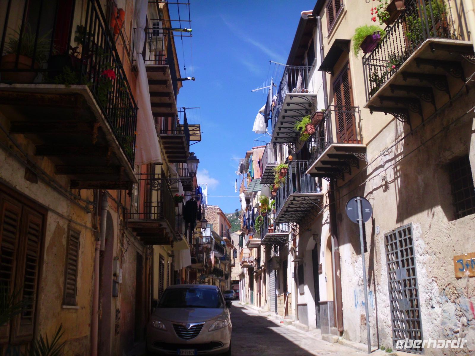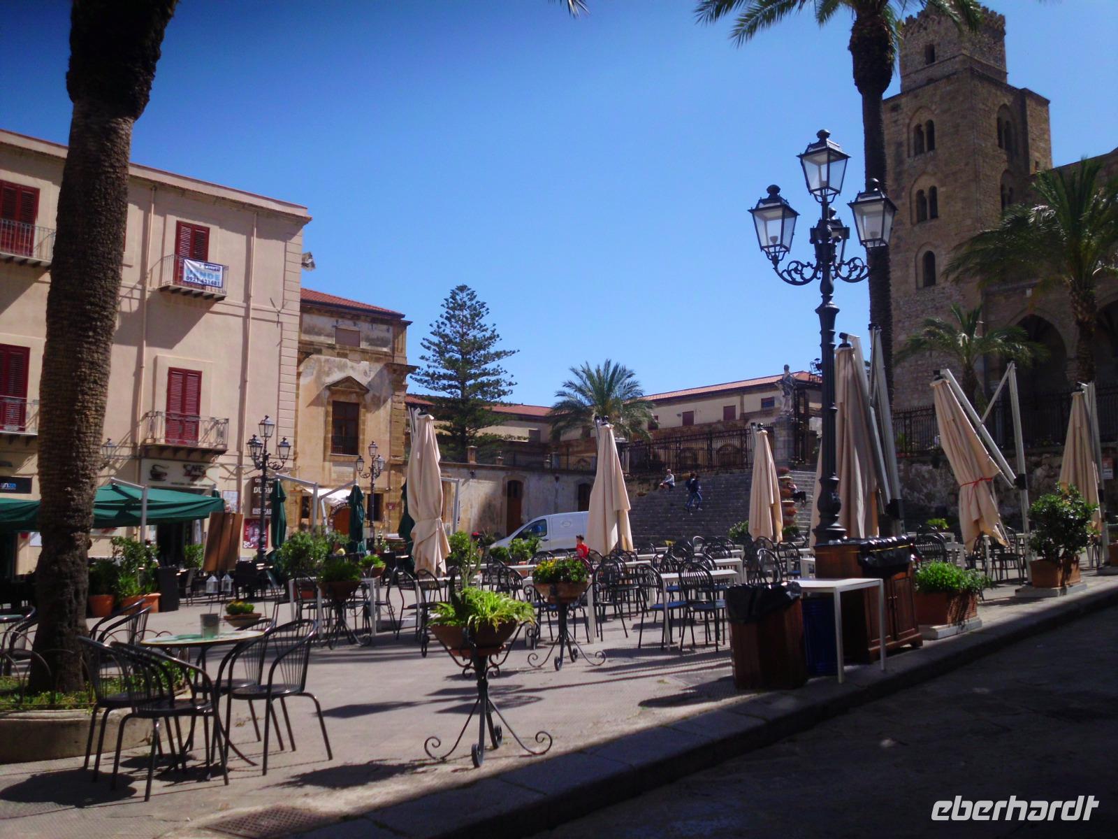 Es ist wirklich ein Ort schöner als der Andere, Taormina, Syrakus und jetzt sind wir gefesselt von Cefalu, welches so früh am Morgen gerade erwacht. Kaffeetrinkend und plaudernd erleben wir die Bewohner auf der Piazza unterhalb der Kathedrale, von Hektik keine Spur. Am Meer schmiegt sich eine Häuserfront fast bis ans Wasser. Die Kulisse ist einmalig schön.