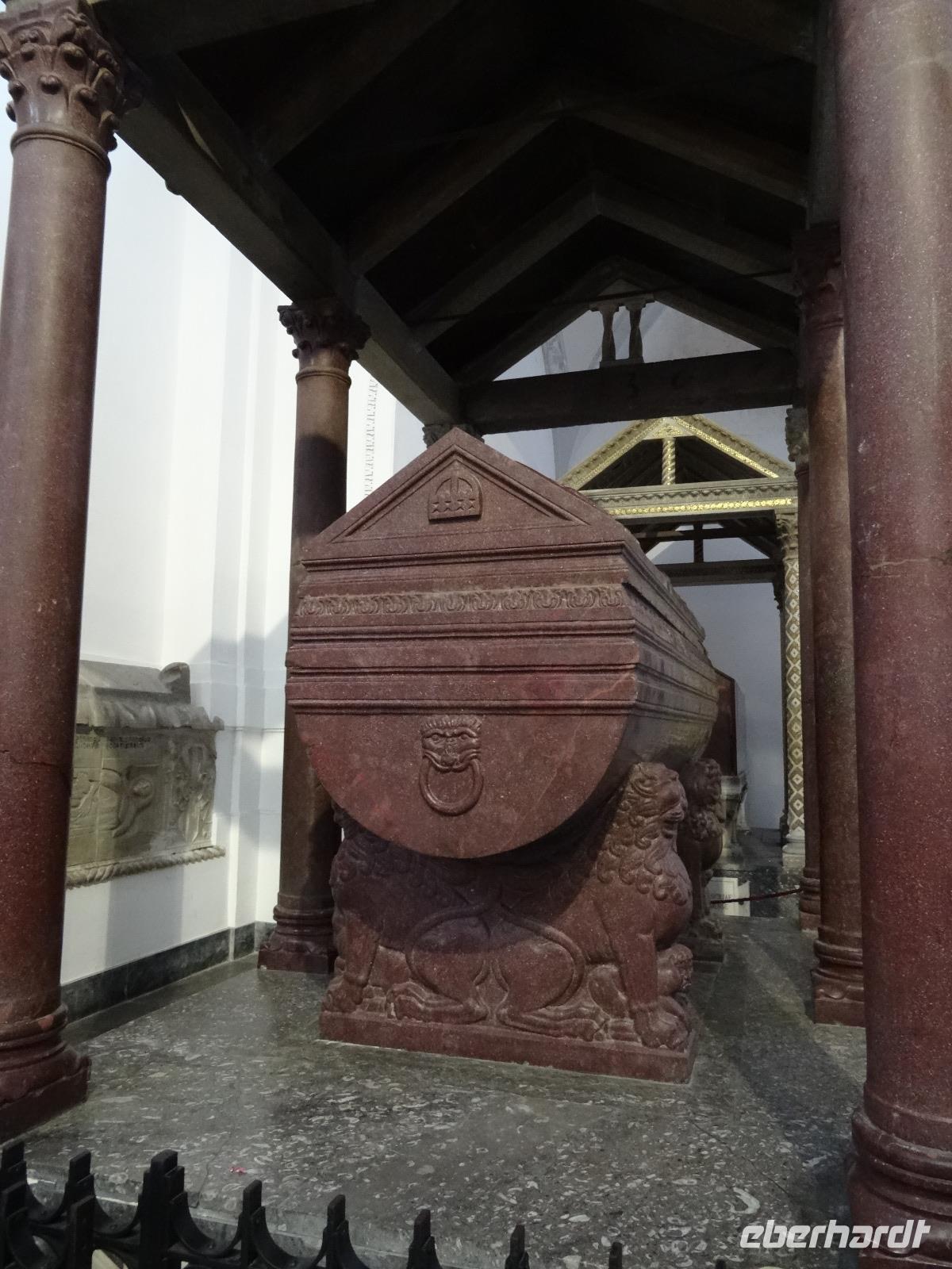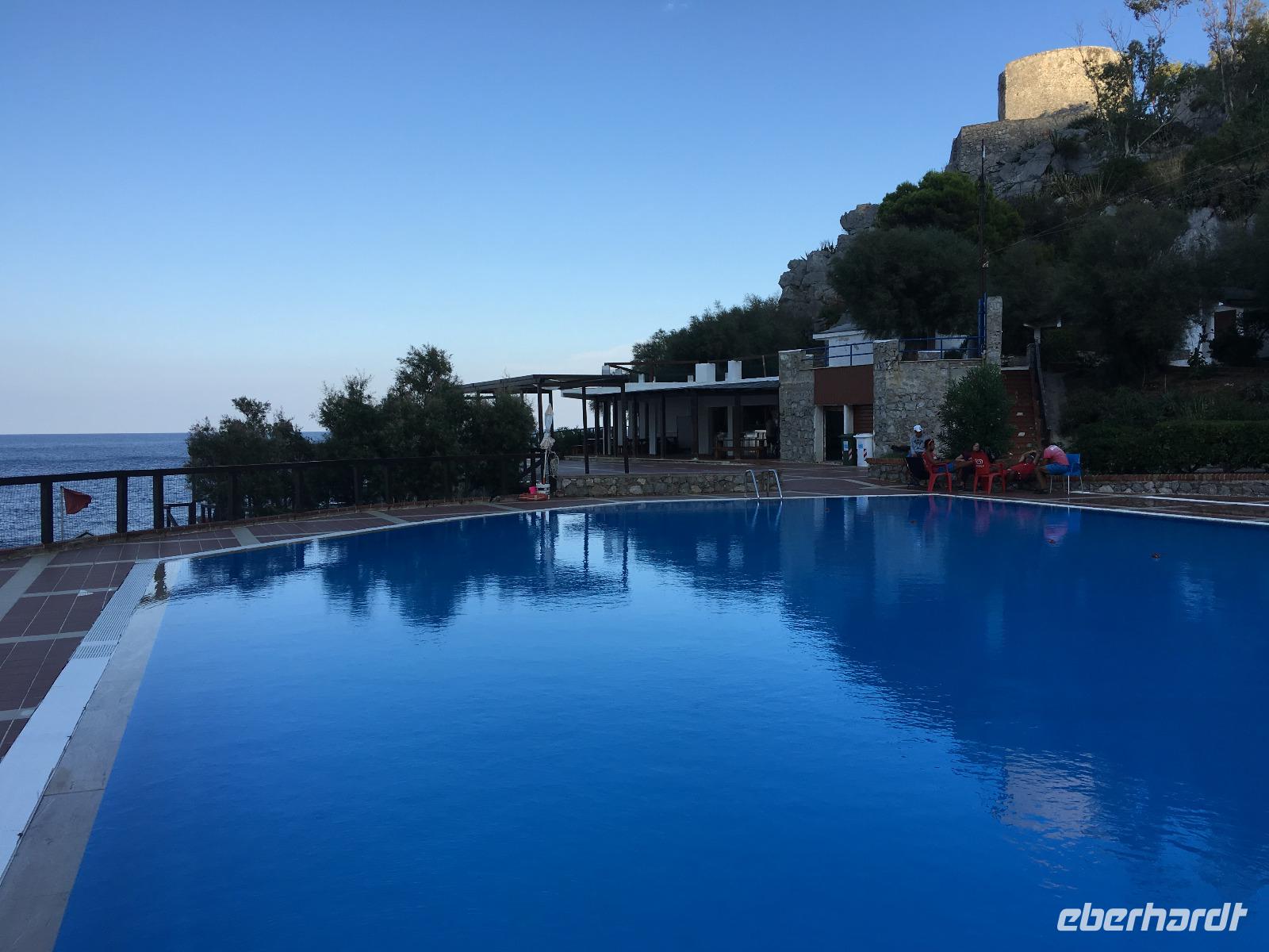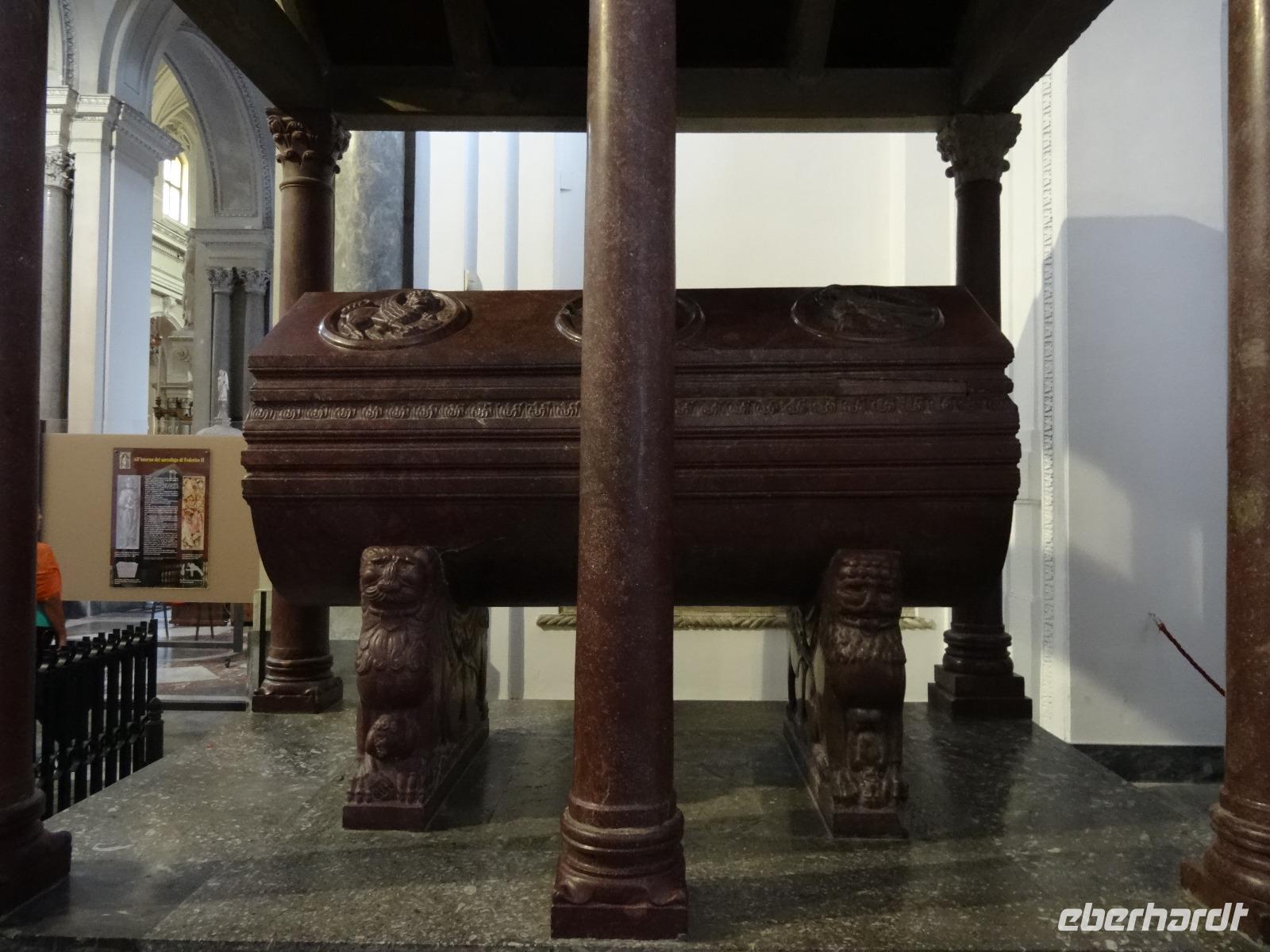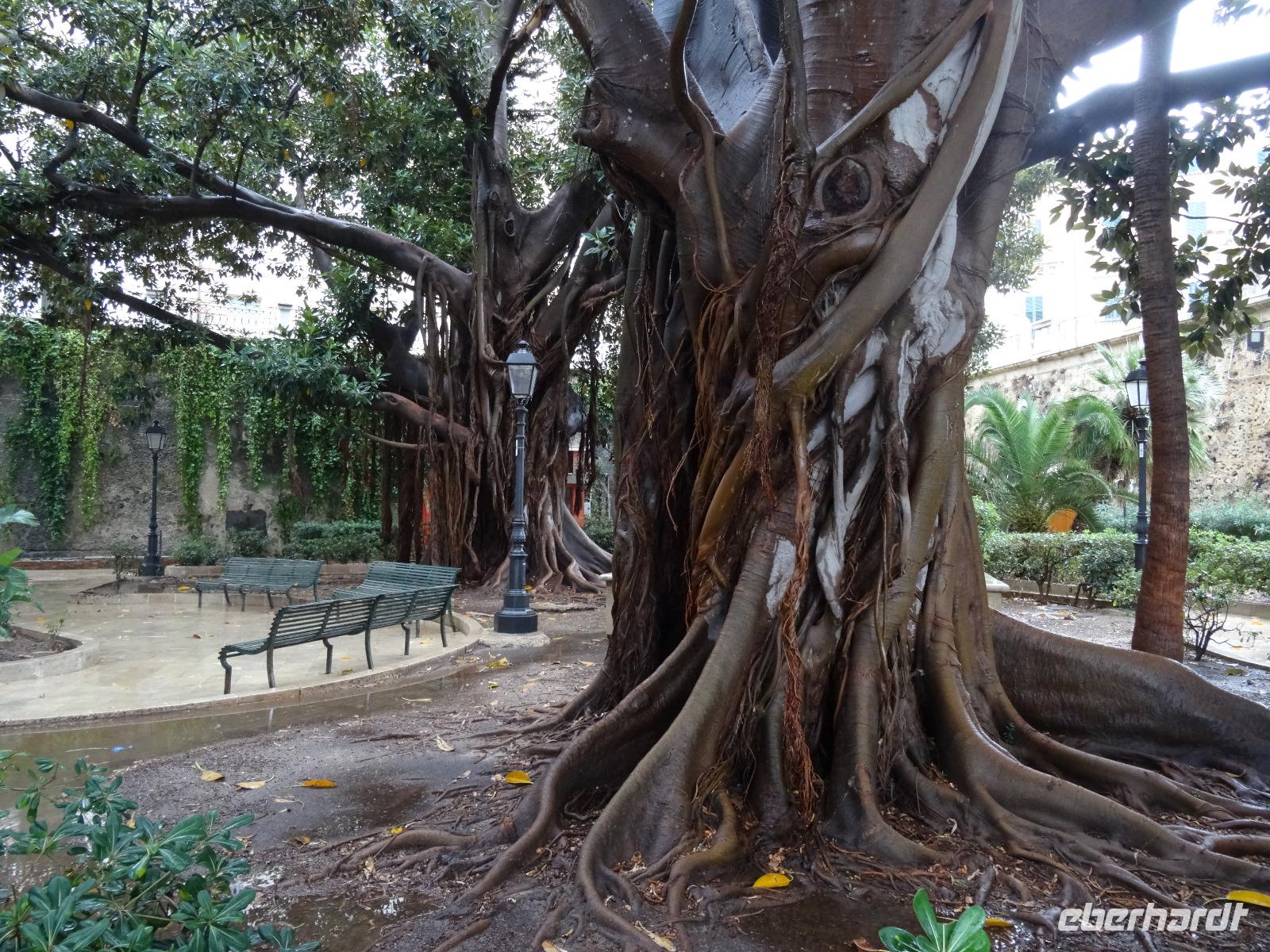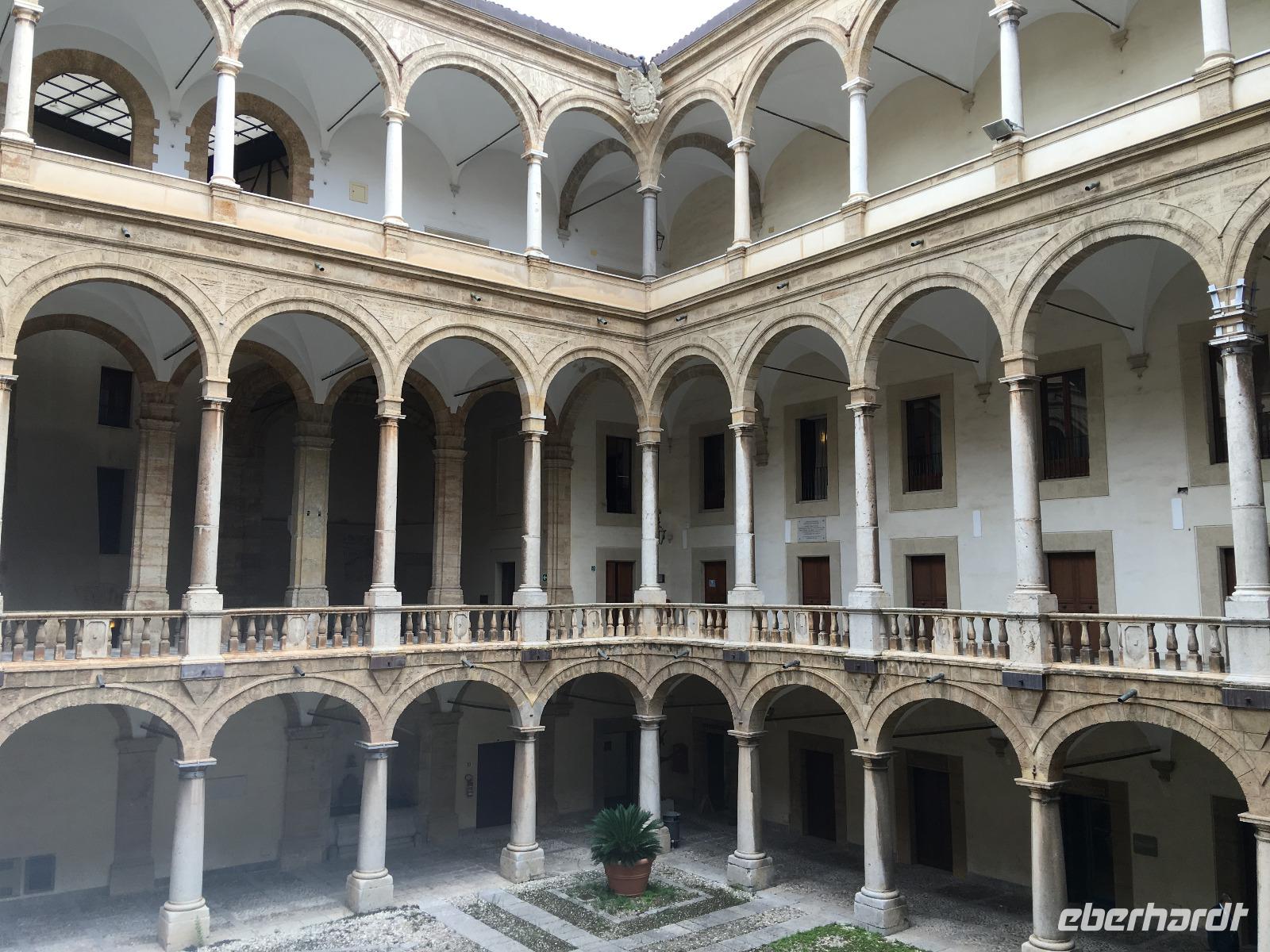 Der heutige Tag stand entweder im Zeichen von Geschichte und Kultur oder bot Freiraum für individuelle Betätigungen. Wer ein wenig Ruhe und Entspannung suchte, verbrachte den Tag am Pool oder bummelte durch Mondello, der andere Teil der Gruppe ging auf eine geschichtliche Entdeckungstour auf den Spuren der Araber, Normannen und Staufer. Erstes Ziel war der nur wenige Kilometer außerhalb Palermos gelegene Ort Monreale, in welchem eine aus dem 12. Jahrhundert stammende normannische Kathedrale mit romanischem Kreuzgang und angeschlossenem Benediktinerkloster steht. Den Höhenunterschied zwischen Park- und Domplatz überwand man über mehrere Dutzend Stufen, vorbei an den Auslagen der allgegenwärtigen Souvenirstände, oder man nutzte die bereitstehenden Taxen, um sich entspannt noch oben bringen zu lassen. Ein Rundgang durch die prunkvoll und wunderschön ausgestaltete Kathedrale sowie den dazugehörigen Kreuzgang mit den Erklärungen von unserer Reiseleiterin ließen die Kirchengeschichte auferstehen. Wir verließen um die Mittagszeit Monreale und fuhren zurück in die Provinzhauptstadt, um dem mächtigen Normannenpalast, dem Palazzo Reale, einen Besuch abzustatten. Heute Refugium des Parlaments war es in früheren Zeiten der Sitz der sizilianischen Könige. Nach dem Durchschreiten der Sicherheitskontrollen und dem Aufstieg in den ersten Stock des Gebäudes besichtigten wir die Capella Palatina, die mosaikgeschmückte, im arabisch-byzantinisch-normannischen Stil errichtete Hofkapelle. Unserer weiterer Programmablauf wurde bei verlassen des Palastes empfindlich gestört, hatte es doch mittlerweile zu regnen angefangen. Uns blieb vorerst keine andere Möglichkeit, als uns so gut es ging unterzustellen und den Regen vorbeigehen zulassen. Das glückte nur bedingt, so dass wir, statt zu laufen, mit dem Bus die wenigen Meter zur Kathedrale zurücklegten. Sie ist nicht nur das bedeutendste Kirchengebäude der Hauptstadt, sondern beherbergt darüber hinaus die Gräber von Heinrich dem 6. und von Friedrich dem 2., welche wir ebenfalls besichtigten. Nach diesem umfassenden Einblick in die kirchliche und weltliche Vergangenheit der Region machte sich Vorfreude auf das avisierte Picknick breit. Leider ließ das immer noch schlechte Wetter keine Freiluftveranstaltung zu, so dass wir uns die leckeren sizilianischen Spezialitäten im Bus schmecken ließen. Dieser parkte dabei am Rande eines kleinen Parks in unmittelbarer Nähe des Mittelmeeres, so das wenigstens die Umgebung eine gewisse Picknickatmosphäre aufkommen lies. Es gab Arancini, eine mit Hackfleisch gefüllte und frittierte Reiskugel, ein Stück schmackhafte Gemüse-Schinken-Pastete, Mandelgebäck, Obst und natürlich den obligatorischen Rotwein zu genießen. In kulinarischer Hinsicht ein kleiner Höhepunkt des Tages, der nur durch die widrigen Wetterbedingungen beeinträchtigt wurde. Gestärkt setzten wir bei einer kleinen Stadtrundfahrt die Erkundung Palermos fort, bevor wir am Opernhaus ausstiegen, um die Stadt noch auf eigene Faust "unsicher" zu machen. Manche besuchten das Stadtmuseum, manche ließen sich einen Café Latte auf der Piazza schmecken oder schaufensterbummelten die Ladenstraßen entlang. Nach der Rückkehr im Hotel genoss man noch schnell ein paar Schwimmzüge im Pool oder ließ den Blick von der Terrasse über die mittlerweile wieder im Sonnenschein liegende Bucht gleiten.