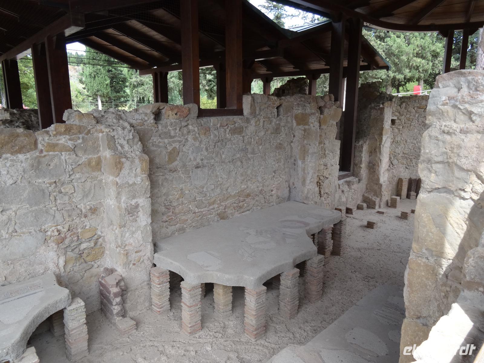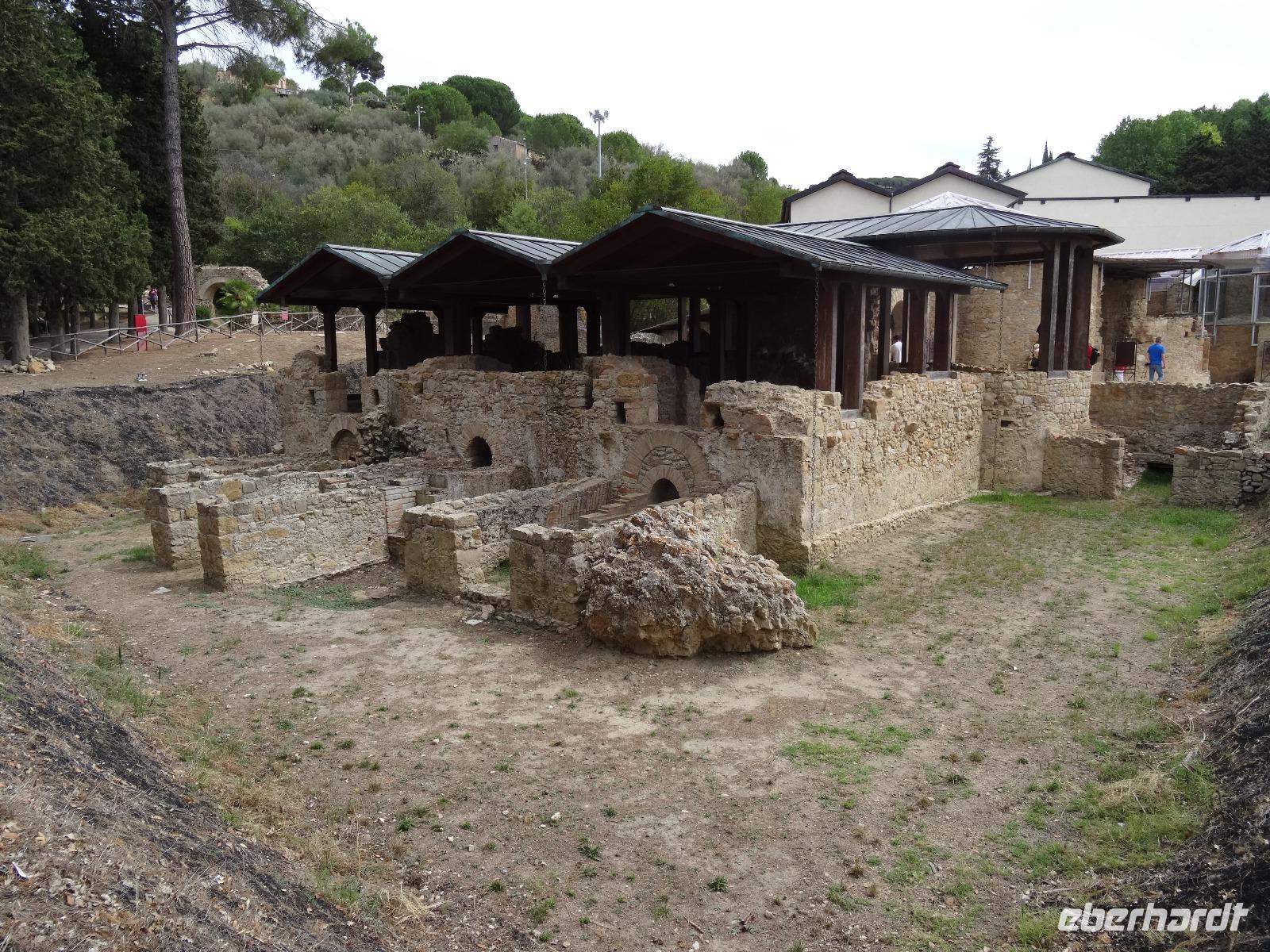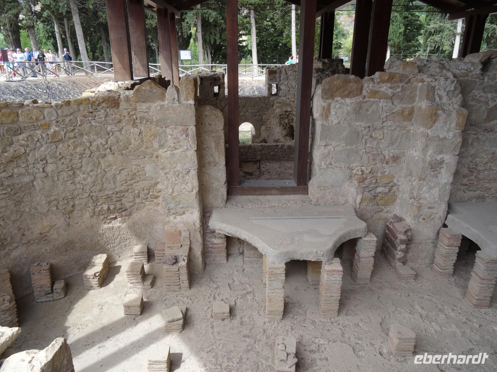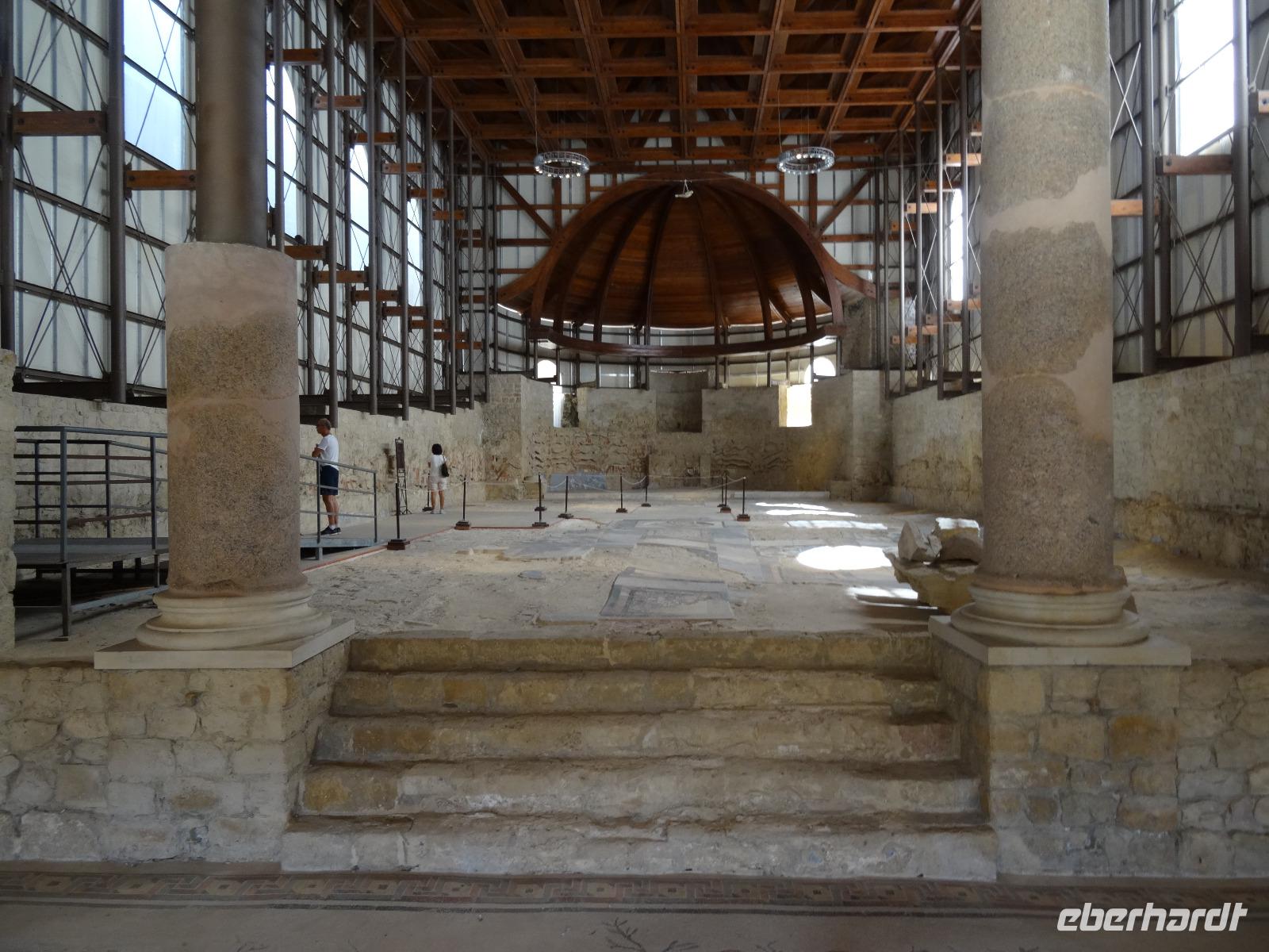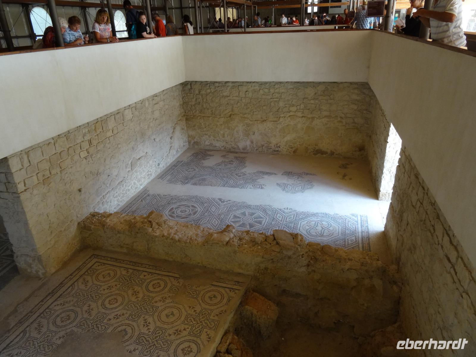 Wir verließen die Nordostküste Siziliens und folgten der Autostrada 18 bis Catania, bevor wir südlich des Ätnas ins Landesinnere abbogen. Die Landschaft formte sich links und rechts der Straße zu weichen Hügelketten, in denen sich pittoreske Dörfchen und weitläufige Nutzflächen abwechselten. Kurz vor dem Höchststand der Sonne durchfuhren wir den kleinen Ort Piazza Armerina, in dessen Einzugsgebiet sich die Villa Romana del Casale, unser erster Stopp an diesem Tag, befand. Weit über die Grenzen Siziliens hinaus berühmt geworden sind die Reste dieser römischen Villa durch ihre sehr gut erhaltenen Bodenmosaiken und durch die Größe und ehemaligen Ausstattung der Anlage. Der gesamte noch erhaltene Gebäudekomplex ist deshalb ein historisch bedeutendes Zeugnis der römischen Herrschaft auf Sizilien. Christiane führte uns durch die erst Mitte des 18. Jahrhunderts wiederentdeckte Villa und gab ausführliche Erklärungen zu den einzelnen Räumlichkeiten, den Darstellungen und Bedeutungen der wunderschönen Mosaiken. Anderthalb Stunden später und um viele Informationen reicher setzten wir unsere Fahrt nach Süden fort und erreichten, mit einem kurzen Toilettenstopp, am frühen Nachmittag das Tal der Tempel in der Nähe der Stadt Agrigent. Die mehrere Hektar großen archäologischen Stätten beherbergen die Überreste der antiken griechischen Stadt Akragas, welche im fünften Jahrhundert vor Christi zu den bedeutendsten Städten auf Sizilien gehörte. Einige gut erhaltene Bauwerke waren das Ziel unseres Rundganges, unter anderem der Hera- oder Juno-Tempel, der Concordia- sowie der Herkules-Tempel. Entlang der antiken Stadtmauer, im dürftigen Schatten der Mandel- und Olivenbäume schritten wir von Tempel zu Tempel und bestaunten die Baukunst der alten Griechen und die Anmut ihrer Schöpfungen. Mit eindrucksvollen Bildern vor Augen erreichten wir am frühen Abend unser Hotel in Agrigento. Nach einer kurzen Ruhephase nahmen wir ein viergängiges Abendessen zu uns und entspannten im Anschluss bei einem guten Glas Wein an der Bar oder auf der Terrasse des Hotels.