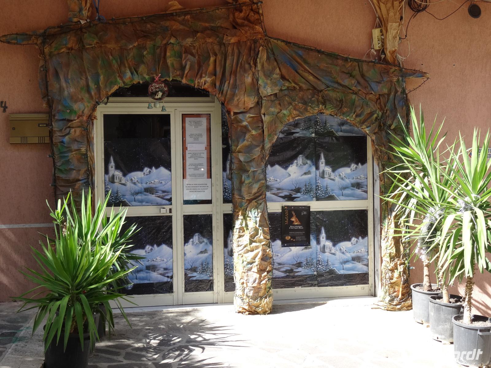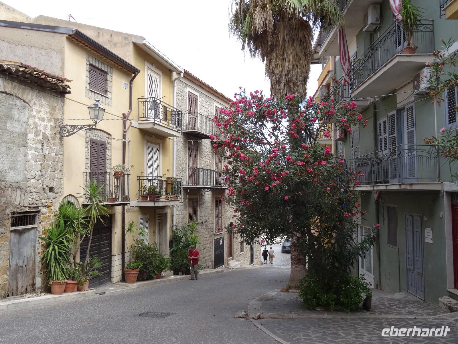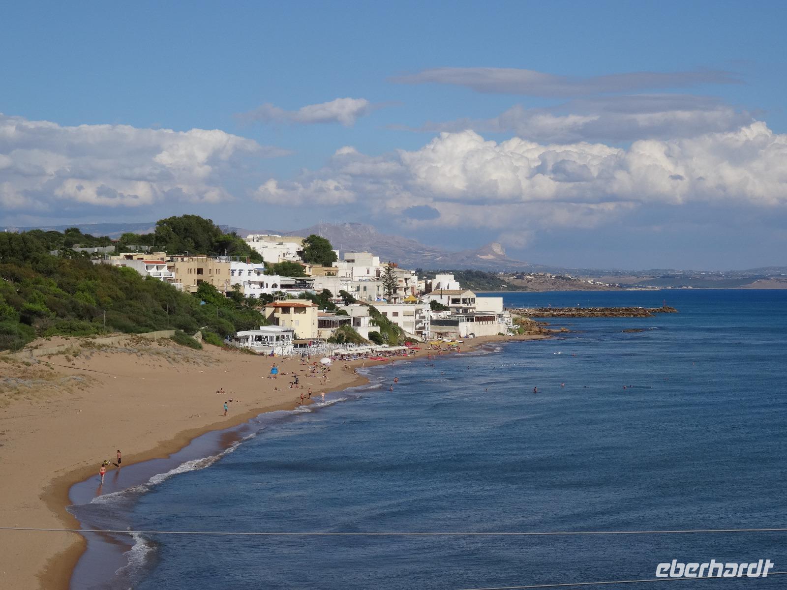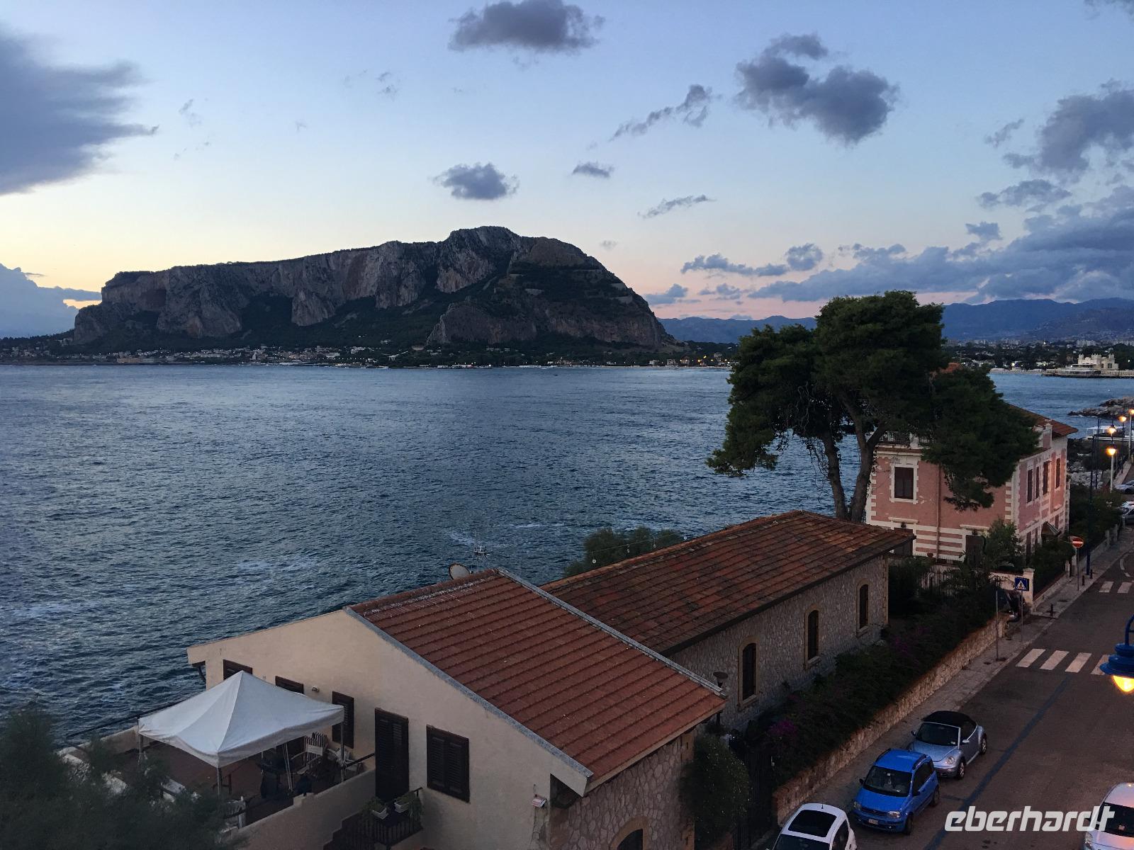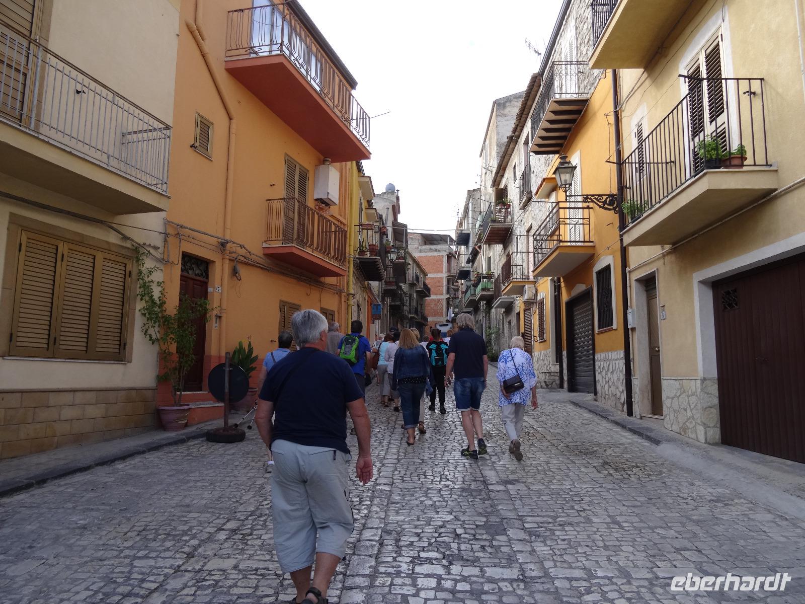 Nach einer ruhigen Nacht abseits des allgegenwärtigen Straßenlärms hieß es schon wieder Abschied nehmen. Wir verließen die Südküste und bewegten uns knapp 40 Kilometer landeinwärts, wo wir am zeitigen Vormittag in dem kleinen Bergdörfchen Sant Angelo Muxaro erwartet wurden. Pierre-Filippo, der Chef der örtlichen Kooperative, begrüßte uns aufs herzlichste und machte uns in den nächsten Stunden mit dem ursprünglichen sizilianischen Dorfleben vertraut. In einer Käserei erfuhren wir von Senora Olga, wie Ricotta, der Frischkäse aus Schafsmilch, hergestellt wird. Nach anfänglichem Zögern wurde schließlich kräftig verkostet und der frische, angenehm fluffige Schafskäse für lecker befunden. Zwei Straßen weiter trafen wir auf die Bäckerei von Maria und ihrem Mann, die uns mit frischem, mit Olivenöl bestrichenem Brot empfingen. Wir erfuhren, dass sie und ihre Familie zeitweise in Großbritannien gelebt haben, aber immer wieder in ihr Dorf auf Sizilien zurückgekehrt sind. Was im übrigen auf einige Einwohner von Sant Angelo zutreffen musste, denn bei unseren Gesprächen waren immer wieder Städtenamen aus der Fremde zu vernehmen, wo man gearbeitet und gelebt hatte, doch den Lebensabend verbrachte man doch wieder am Ort seiner Kindheit. Nach ein paar leckeren Mandel-Honig-Keksen setzten wir unseren Rundgang durchs Dorf fort und besuchten Onkel Lillo, der uns seine ganzjährig betriebene Weihnachtskrippenausstellung zeigte. Das Ganze war natürlich schon etwas skurril, da wir unseren Besuch bei 28 Grad Außentemperaturen und Sonnenschein machten, was definitiv keine krippenkonforme weihnachtliche Stimmung aufkommen ließ. Zumal die dargestellte Krippenwelt für deutsche Verhältnisse sehr schneearm daherkam. Was Wunder, wenn hier die Winter beinahe noch zum Baden im Meer taugen. Nach dem anschließenden Besuch des Museo Archeologico de Sant Angelo Muxaro und einiger Ausführungen zur örtlichen Kirche lud man uns zu einem einfachen, aber urige Mittagessen in eine kleine Seitengasse ein. Bei selbstgemachter Pasta und gedünstetem Gemüse erzählte Pierre-Fillipo über die Arbeit in der Kooperative und die Bedingungen für die hiesige Landwirtschaft, welche unter zunehmender Konkurrenz aus den Mittelmeeranreinerstaaten zu kämpfen hat, unter anderem bei der Pistazienproduktion. So aktuell das Problem auch war, für einen echten Sizilianer gehörte ein gutes Glas Rotwein zur Erörterung dazu. Während wir seinen Ausführungen lauschten, ließen wir uns deshalb auch den guten Wein schmecken. Irgendwann kam dann der Zeitpunkt, wo wir unsere Tour fortsetzen mussten und so verabschiedeten wir uns von den gastfreundlichen Dorfbewohnern und machten uns auf den Weg nach Selinunte. Die Reste der antiken griechischen Siedlung liegen im Südwesten der Insel und zeugen durch die Größe der Anlage von der einstigen Bedeutung in vorchristlicher Zeit. Nach unserer Ankunft am späten Nachmittag besichtigten wir die Akropolis mit den imposanten Resten des Apollon-Tempels (die einzelnen Tempel werden hier allerdings mit Buchstaben bezeichnet, da den Archäologen die göttliche Zuordnung nicht zweifelsfrei möglich ist), während uns Christiane in bildhafteren Worten die Entstehung und den Niedergang dieser altgriechischen Polis am Mittelmeer näherbrachte. Zum Abschluss unseres Selinunte-Besuches erklommen wir die Stufen zum Tempel E, wahrscheinlich der Göttin Hera gewidmet, der durch seine Lage an exponierter Stelle und durch die Möglichkeit, ihn zu betreten, Anziehungspunkt für die meisten Besucher sowie für eine dort stattfindende Trauungszeremonie war. Mit den Strahlen der untergehenden Sonne verließen wir die Südküste und durchquerten die Insel mit dem Übernachtungsziel Mondello, einem Vorort der sizilianischen Hauptstadt Palermo. Eingebettet in eine schöne Bucht zwischen dem Monte Pellegrino und dem Monte Gallo nahmen wir hier Quartier für die nächsten Tage.
