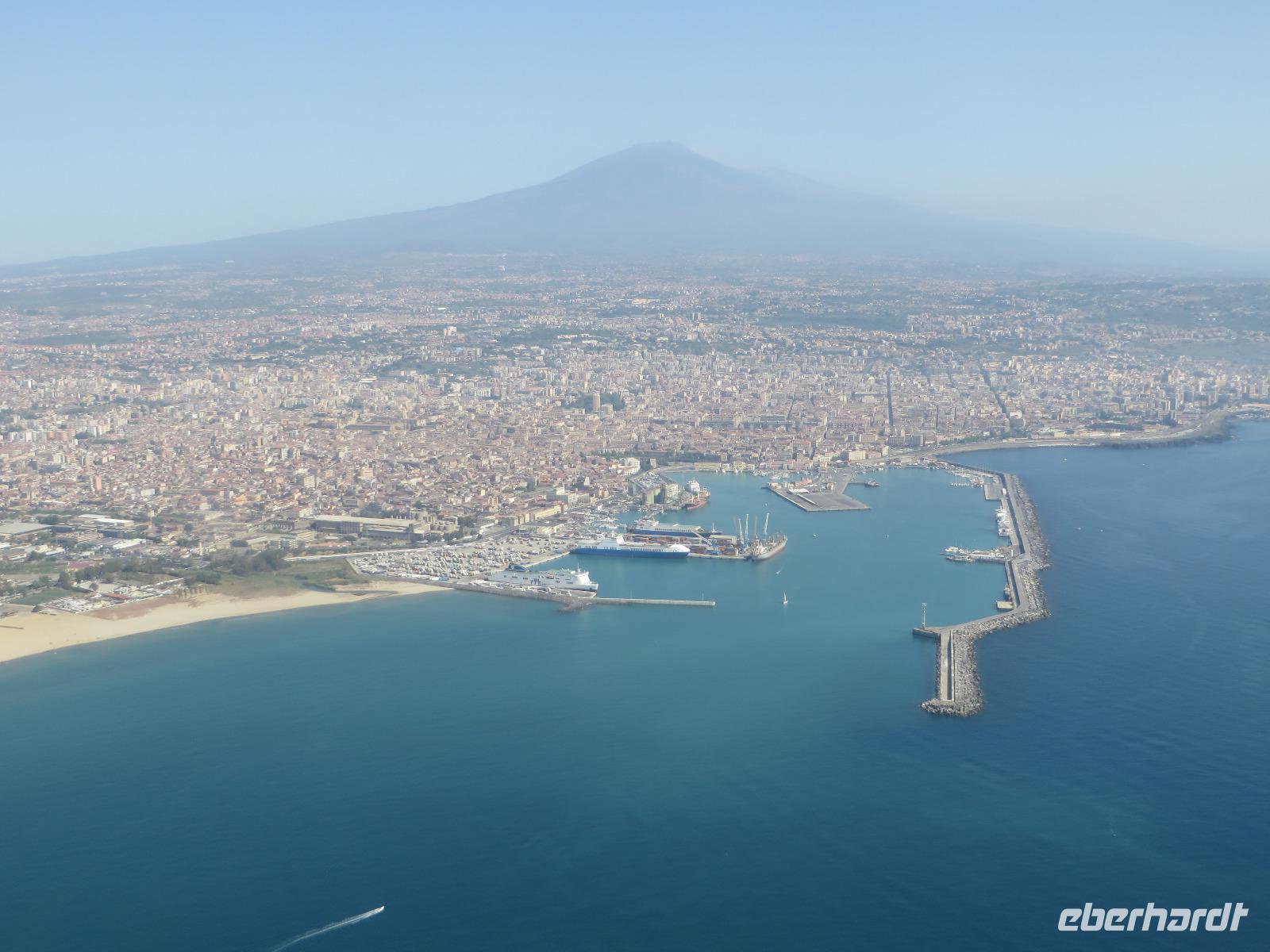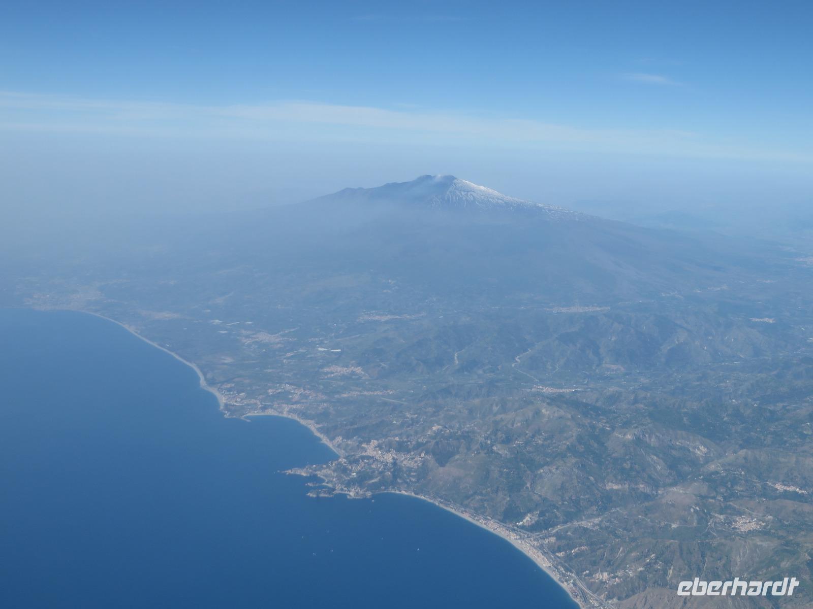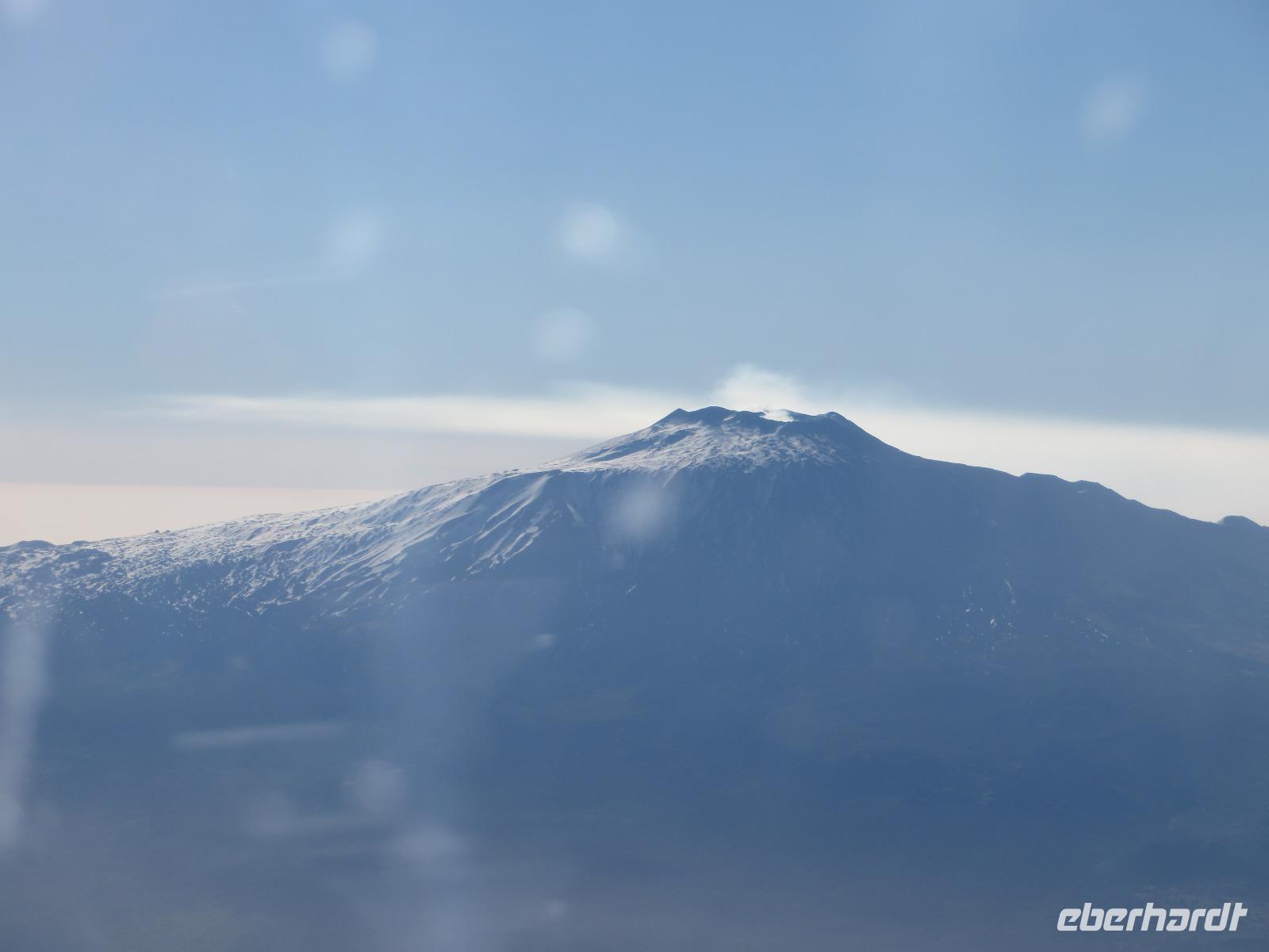 Auf dem Hinflug hatte die Gruppe schon herrliche Aussichten. Während die Gäste auf der rechten Seite den Vesuv sahen, beobachteten die Personen auf der linken Seite kurze Zeit später den majestätischen, schneebedeckten Ätna.