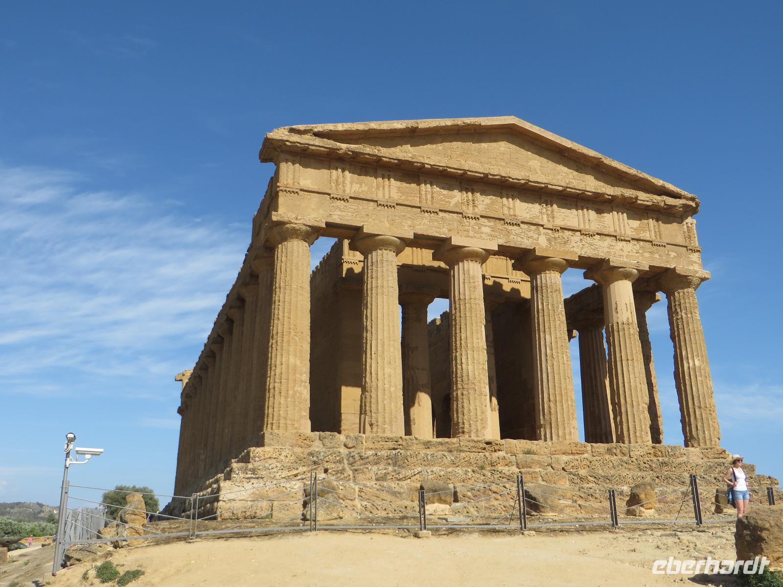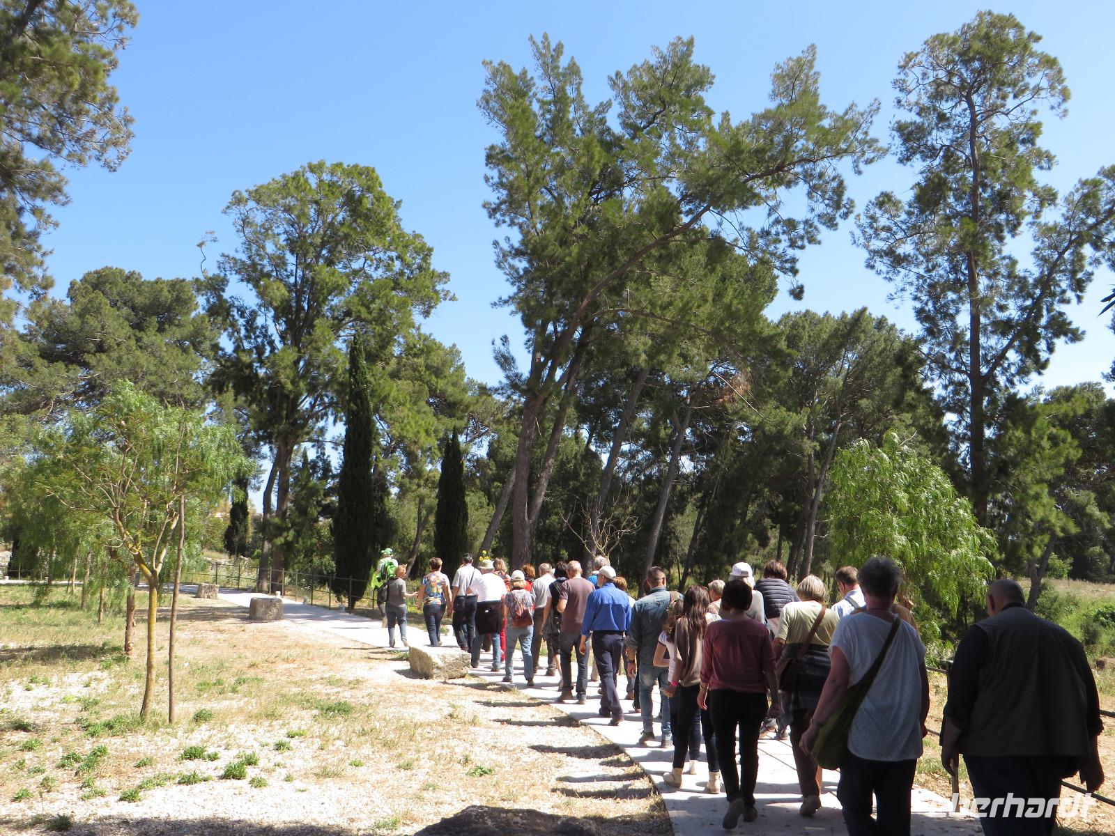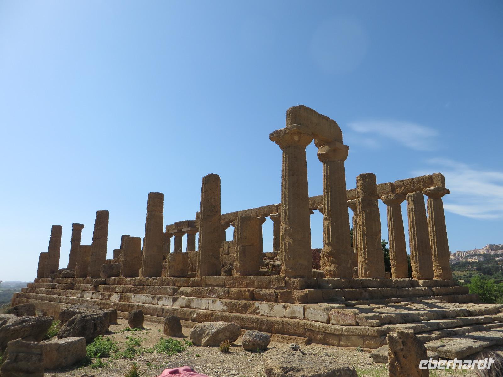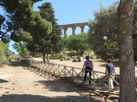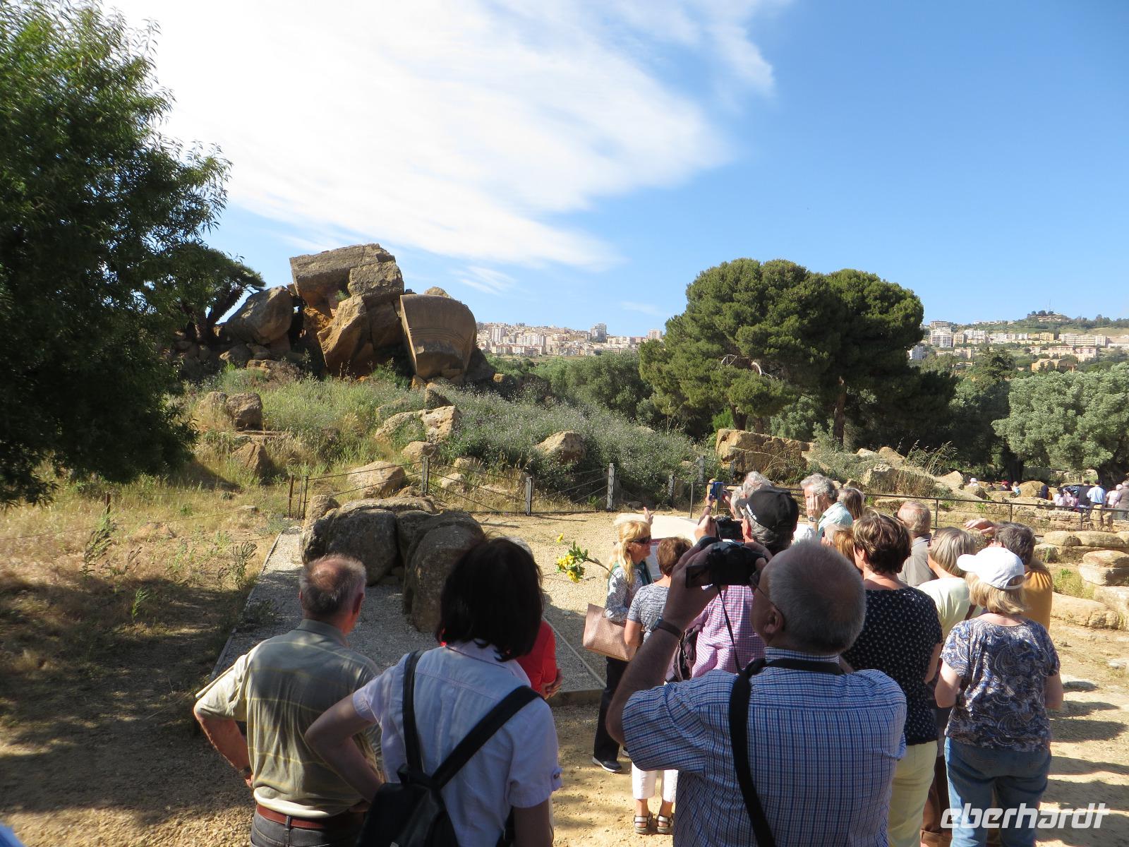 Nach einem sehr reichhaltigen Mittagessen im Restaurant „Primavera" setzten wir unsere Fahrt bei sizilianischen Klängen im Bus nach Agrigent fort. Das blaue Meer mit Kitesurfern und Gewächshäuser prägten das Bild während der Fahrt zum „Tal der Tempel". Der Hera- und Concordia-Tempel bildeten eine eindrucksvolle Kulisse für unser Gruppenfoto.
