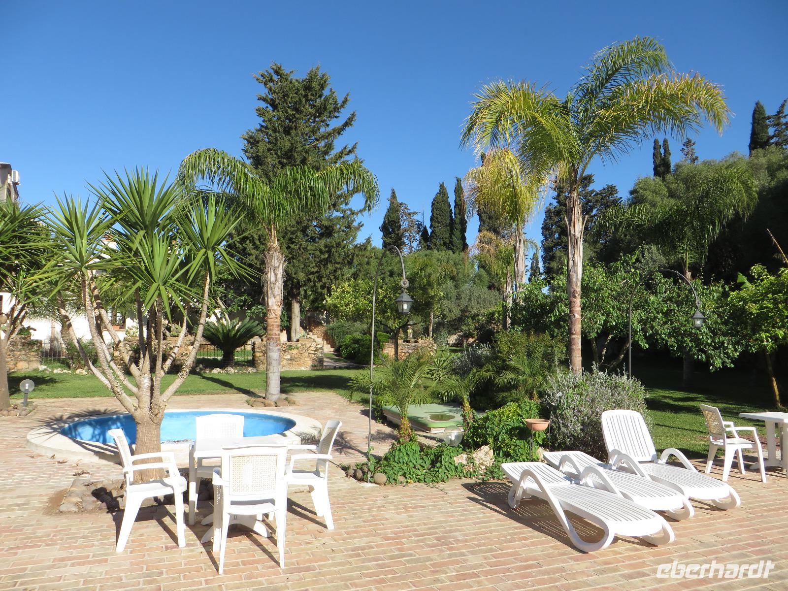 Nach unserer Rückkehr ins Landhotel erfrischten sich einige Gäste im Swimmingpool. Am Abend gab es einen erfreulichen Anlass, ein noch fehlender Koffer der Kundin aus Hannover war endlich angekommen. So wurde die erste Getränkerunde von dieser Familie übernommen.