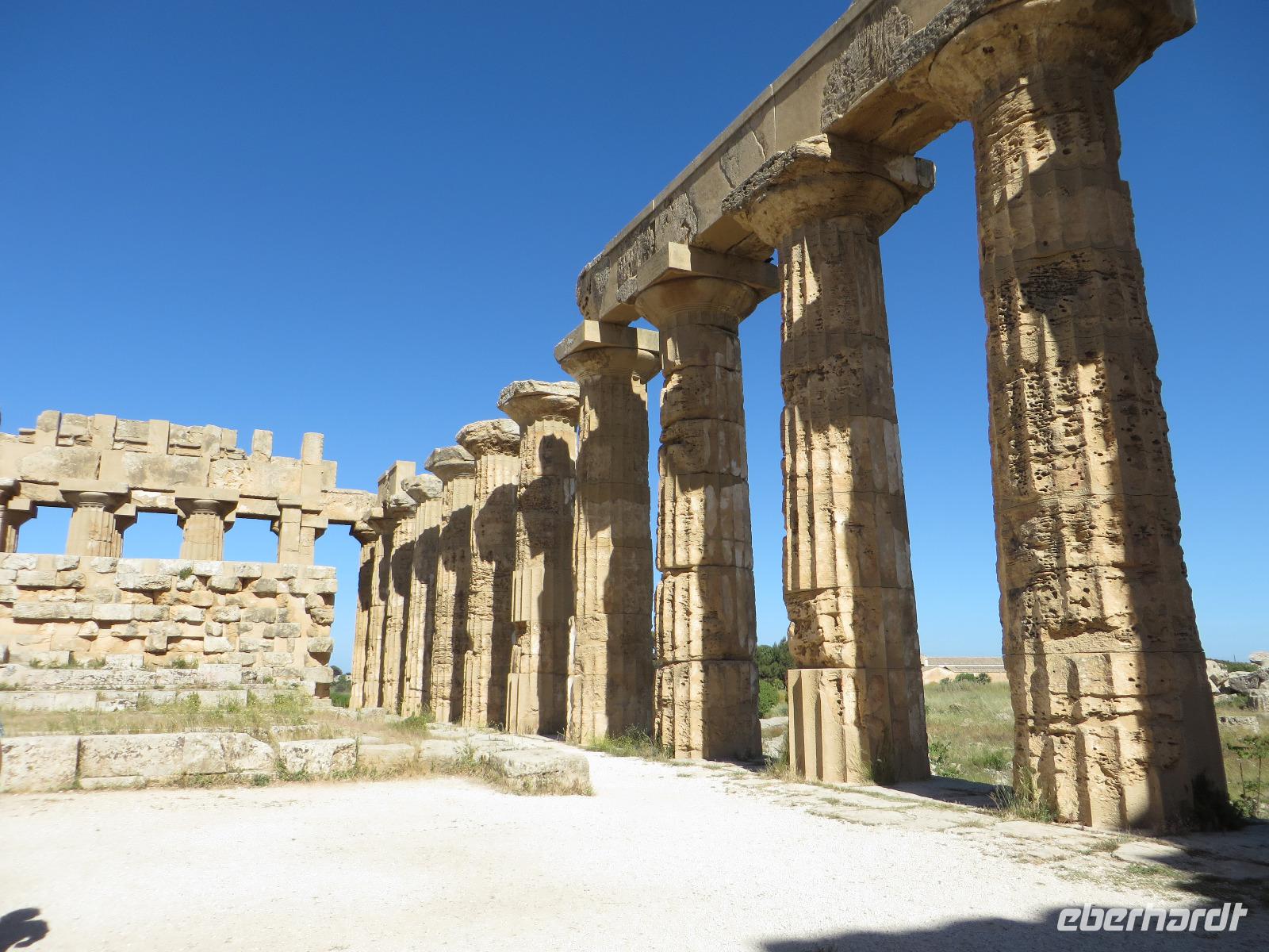 Anschließend fuhr ein Großteil der Gruppe nach Selinunte. Der archäologische Park der Stadt zählt zu den bekanntesten Sehenswürdigkeiten Siziliens. Ein Erdbeben zerstörte die Stadt vor vielen Jahrhunderten. Da zwei Tempel jedoch seitlich einstürzten, war es möglich, diese wieder aufzurichten. Wir waren sprachlos über die Größe des Arials und die Dimensionen der Steinblöcke.