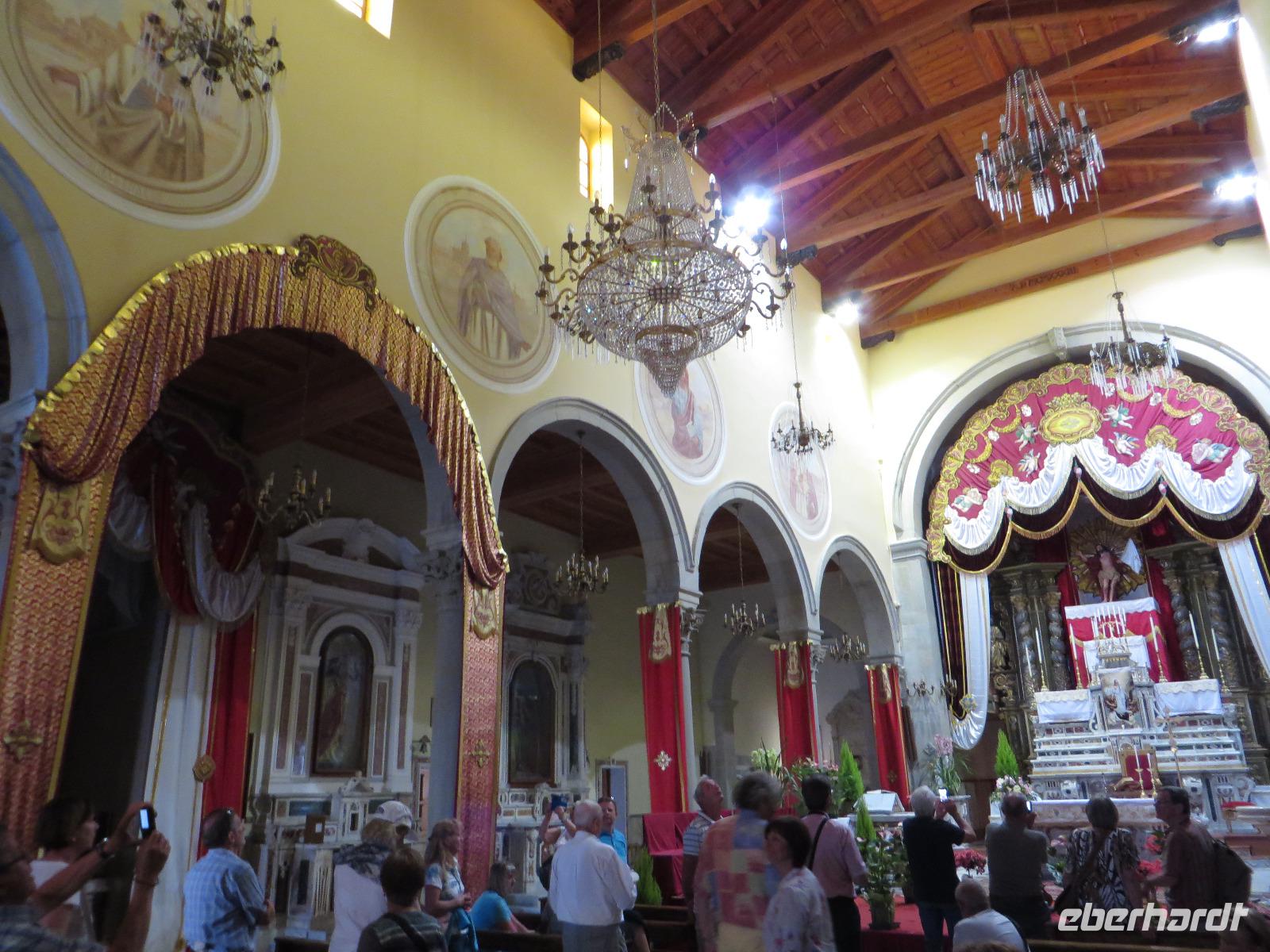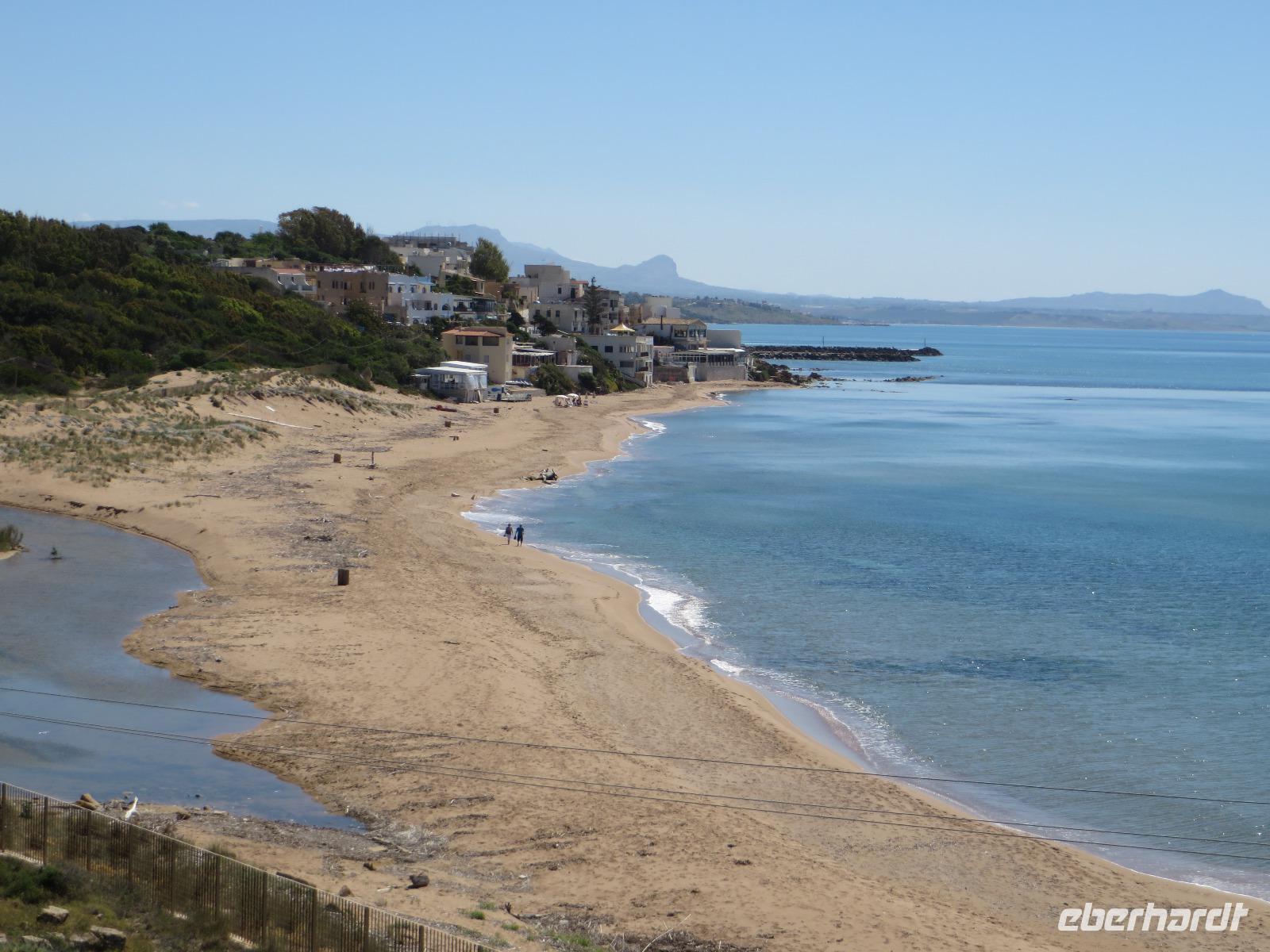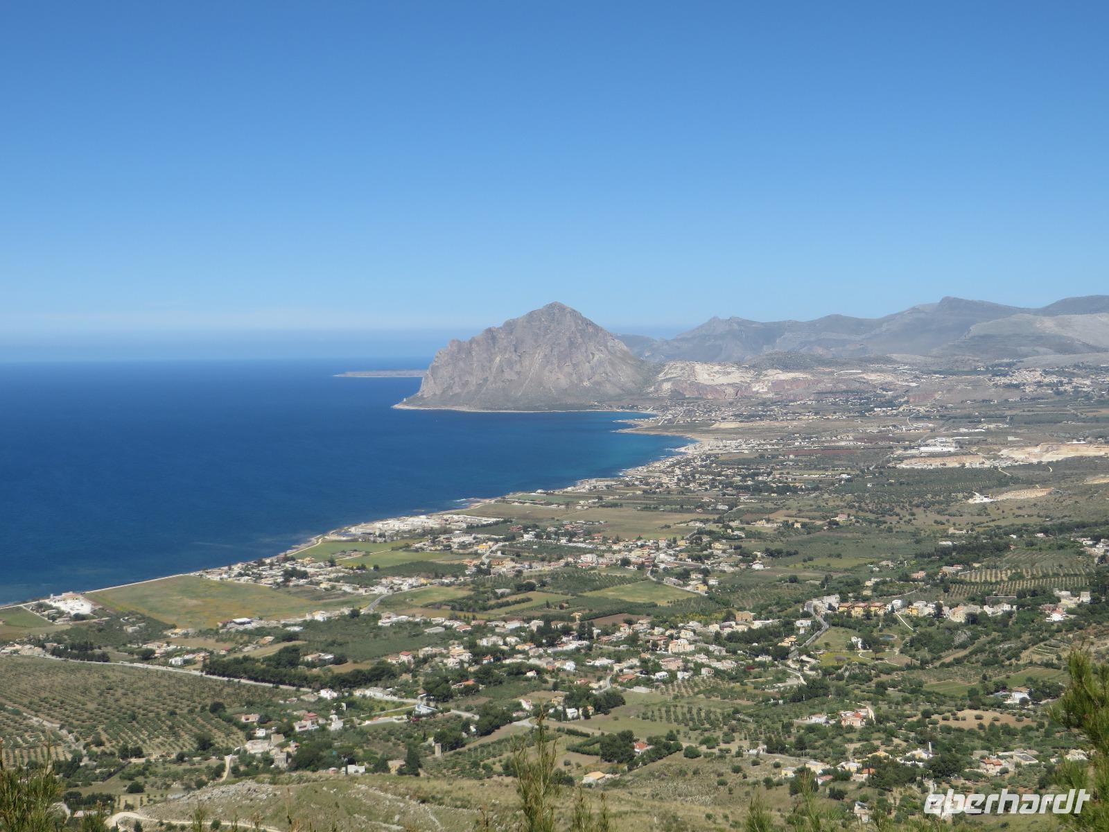 Die letzte Etappe zur Inselumrundung von Sizilien stand an. Zunächst ging es ein Stück zurück in Richtung Cefalù. Wir sahen von weitem die Wallfahrtskirche von Tinderi mit der davor liegenden Sandbank. Dazu hörten wir von Renate die entsprechende Sage von der „schwarzen Madonna" und dem „geretteten Kind".