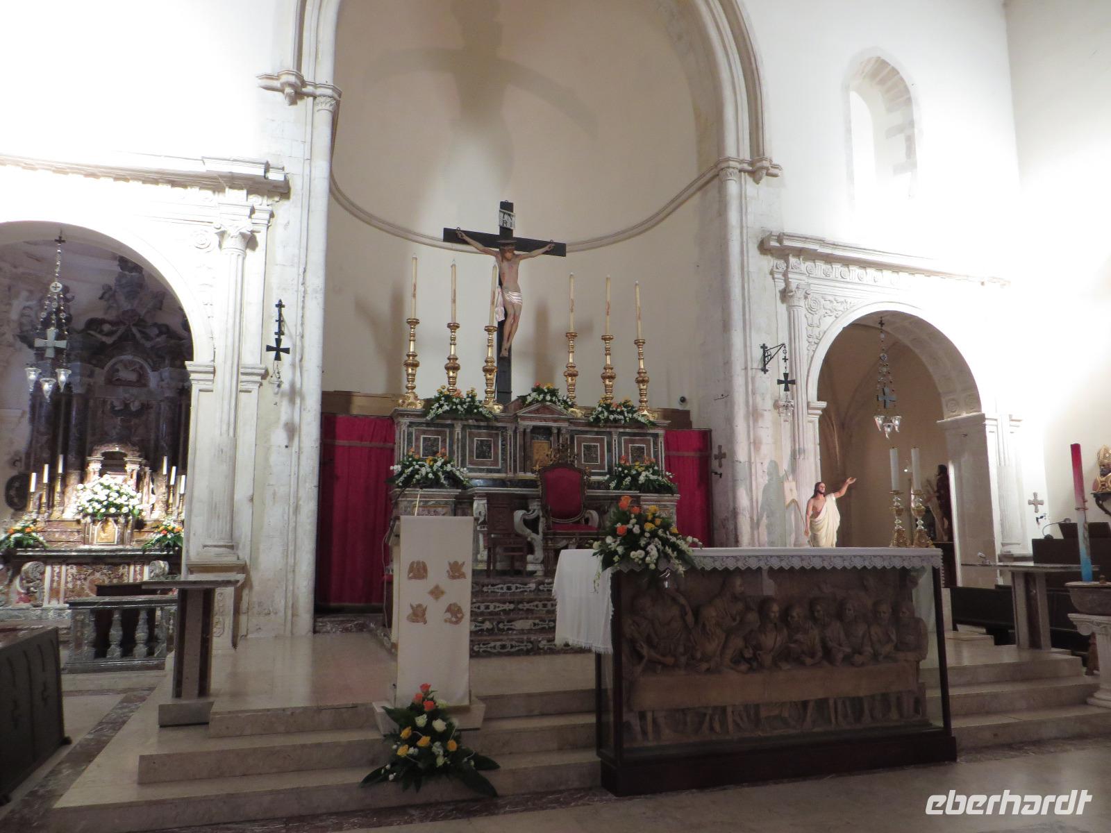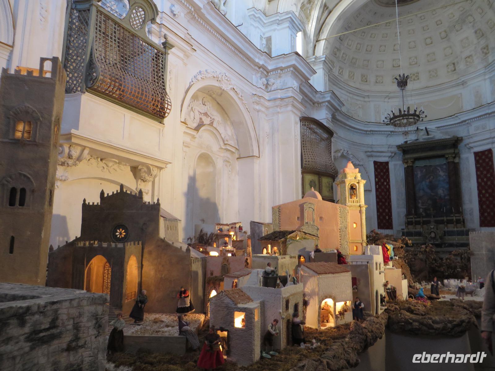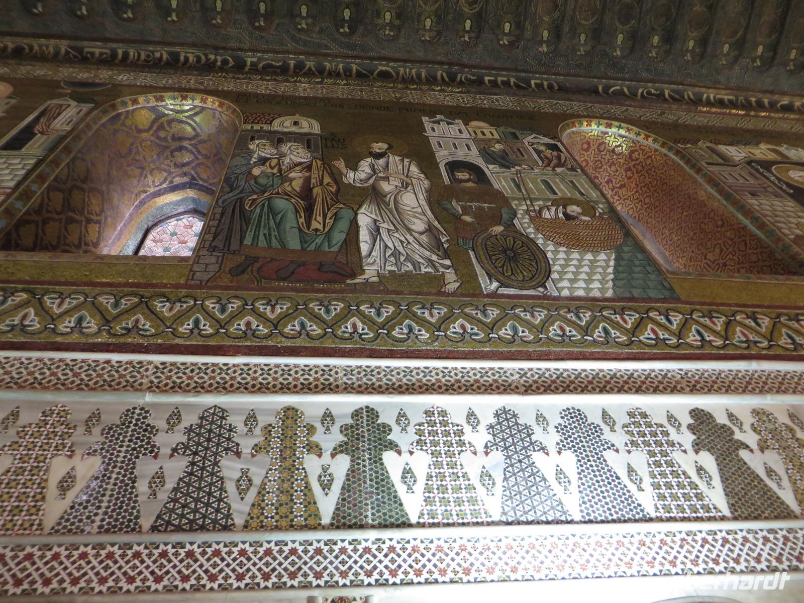 Dort besichtigten wir den Normannenpalast mit der Capella Palatina. Es war erstaunlich, dass im unteren Bereich arabische Elemente zu sehen waren, während im oberen Bereich mit Hilfe von Mosaiken die Entstehung der Weltgeschichte erklärt wurde. Anschließend begannen wir unseren Stadtrundgang, welcher uns zunächst zur Kathedrale führte. Hier besuchten wir das Grabmal von Giuseppe Puglisi, welcher wegen seines Engagements gegen die Mafia umgebracht wurde. Renate erzählte uns in diesem Zusammenhang während der Busfahrt sehr viel über die sizilianische Mafia, von Schutzgeldern, Morden und dass Sizilianer selbst im Ausland noch von ihr verfolgt werden.