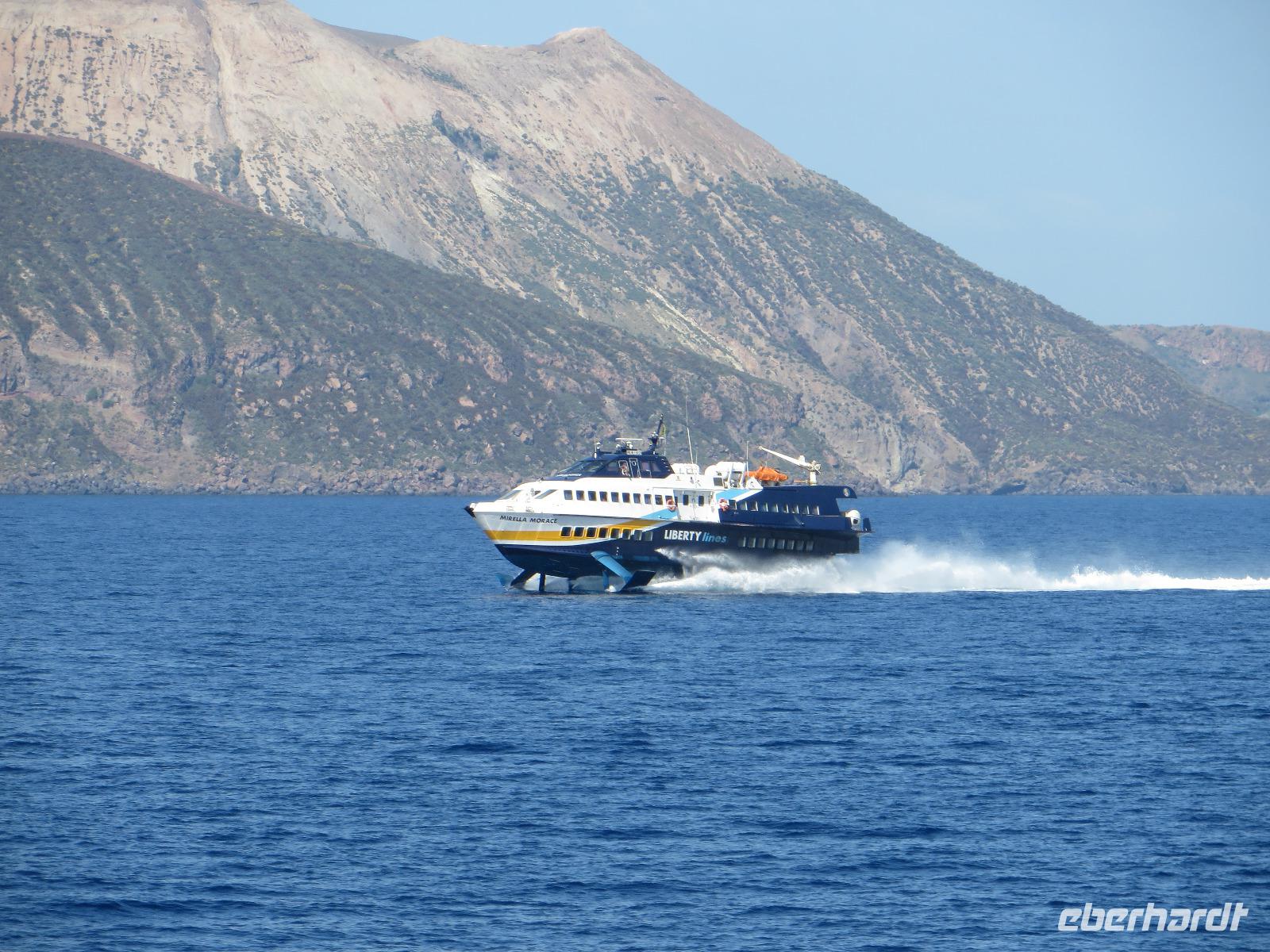 Nach einem leckeren Eis traten wir die Rückfahrt an. Das Meer war belebter als am Morgen, so dass immer wieder Wasser über das obere Sonnendeck spritzte und uns abkühlte.
