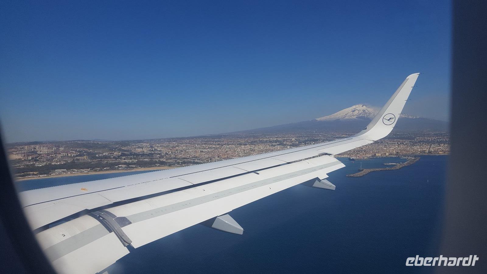 Der Ätna, größter Vulkan Europas, begrüßt uns schon vom Flugzeug aus und so sind wir auch schon gegen 11.00 Uhr in Catania angekommen.
