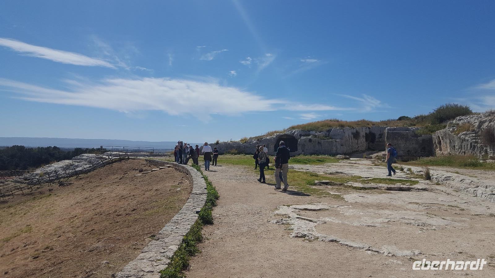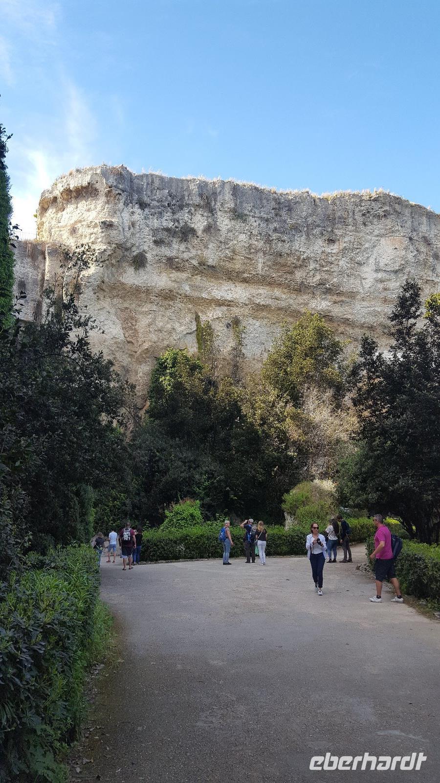 Im Bus hatten wir uns endlich wieder erwärmt und begannen gemeinsam mit Desiree die Führung durch die Archäologische Zone, in welcher wir ein ehemaliges römisches Amphitheater sahen und im "Ohr des Dionysios" waren. Dieser Name steht für einen Steinbruch aus der Antike der ca. 23 m hoch ist und eine ausgezeichnete Akustik hat. Eine Legende besagt, dass Dionysios Gefangene dort eingesperrt hat und deren Gespräche im anderen Teil der Höhle belauscht hat.