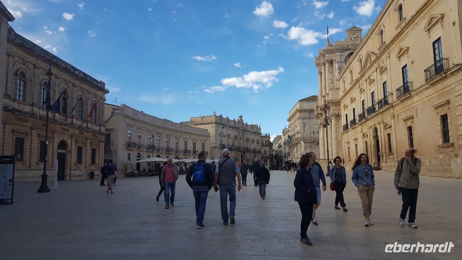 Im Anschluss an die Führung ging es zu unserem letzten Tagesziel, der kleinen Hafenstadt Ortigia. Dort machten wir einen kleinen Bummel und sahen die Quelle der Nymphe Arethusa, sowie den Dom von Syrakus. Nach einer kurzen Eis-Pause ging es langsam zum Bus zurück.