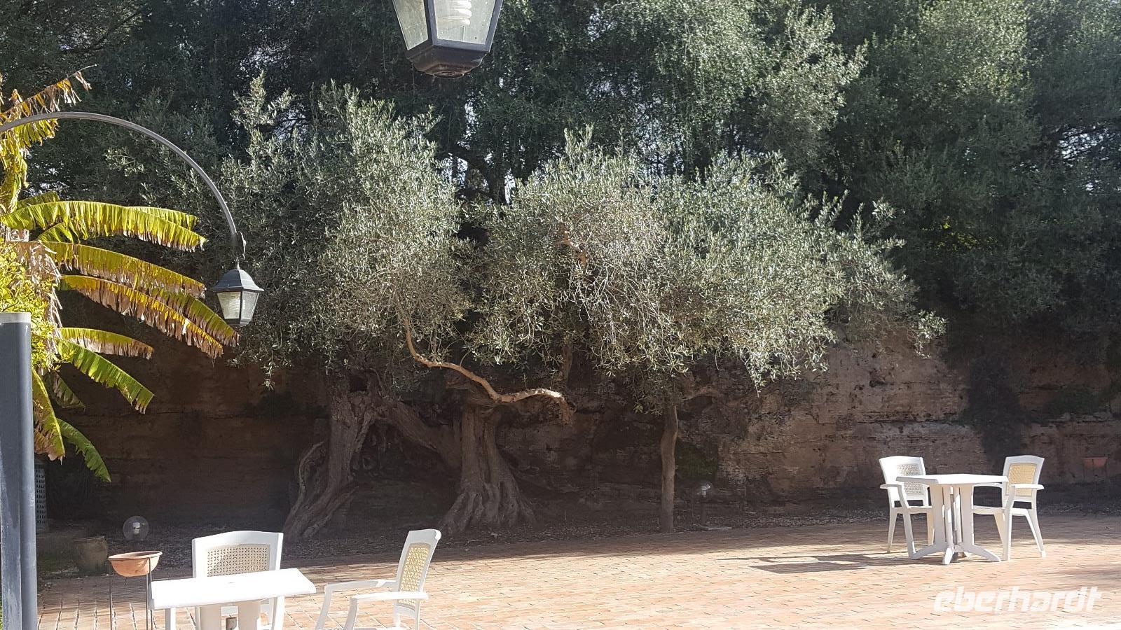 Bevor wir heute unser Tagesprogramm in Angriff nahmen, fand für uns eine kleine Olivenölverkostung statt. Das auf dem Agriturismo "Case di Latomie" hergestellte Olivenöl, gehört zu den Besten der Welt und wird aus den zum Teil hundertjährigen Olibenbäumen, welche sich auf dem Grundstück befinden, gepresst. Der Chef zeigte uns, wie man Olivenöl richtig verkostet, denn zuerst muss es zwischen den Handflächen mit der eigenen Körpertemperatur erwärmt werden. Danach wird ein kleiner Schluck in den Mund genommen und zwischen den Zähnen gezogen. Wenn ein leicht brennendes Gefühl im Hals entsteht, ist das Öl genau richtig. Dies denke ich, konnte jeder von uns bestätigen :-)
