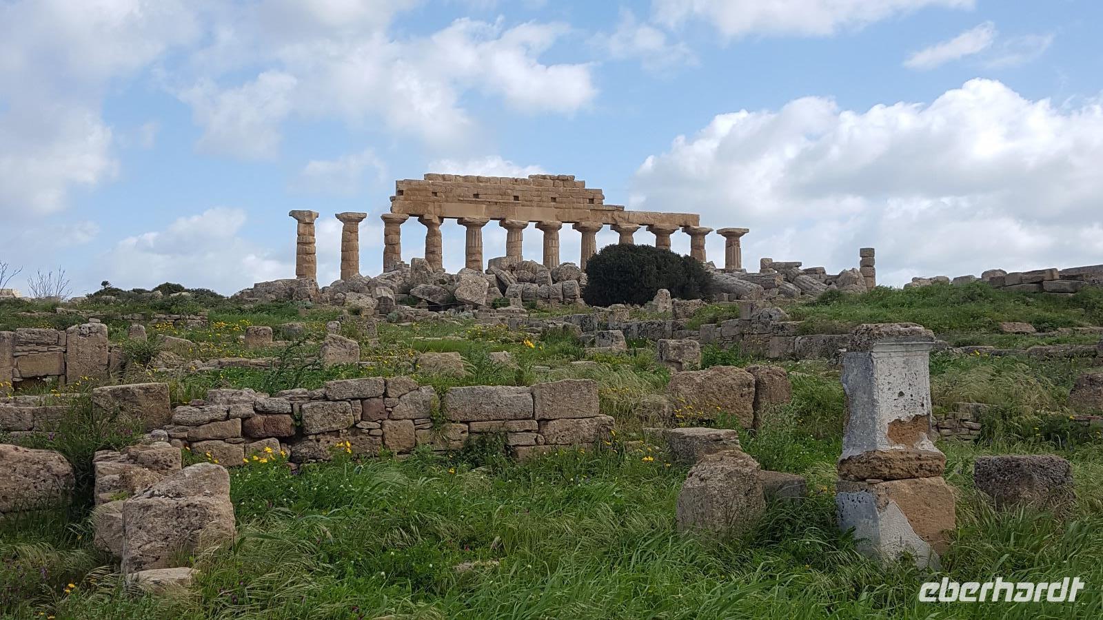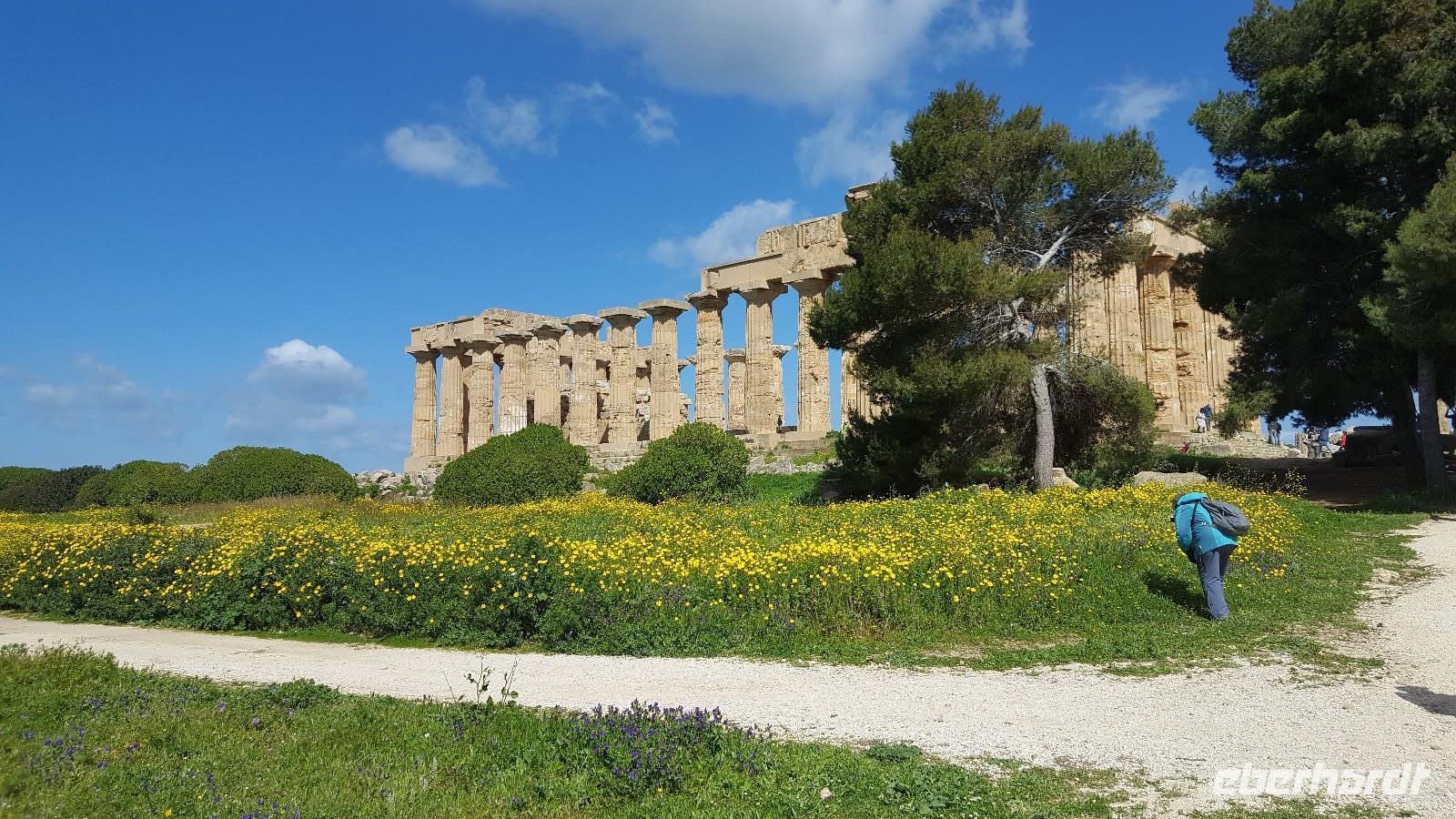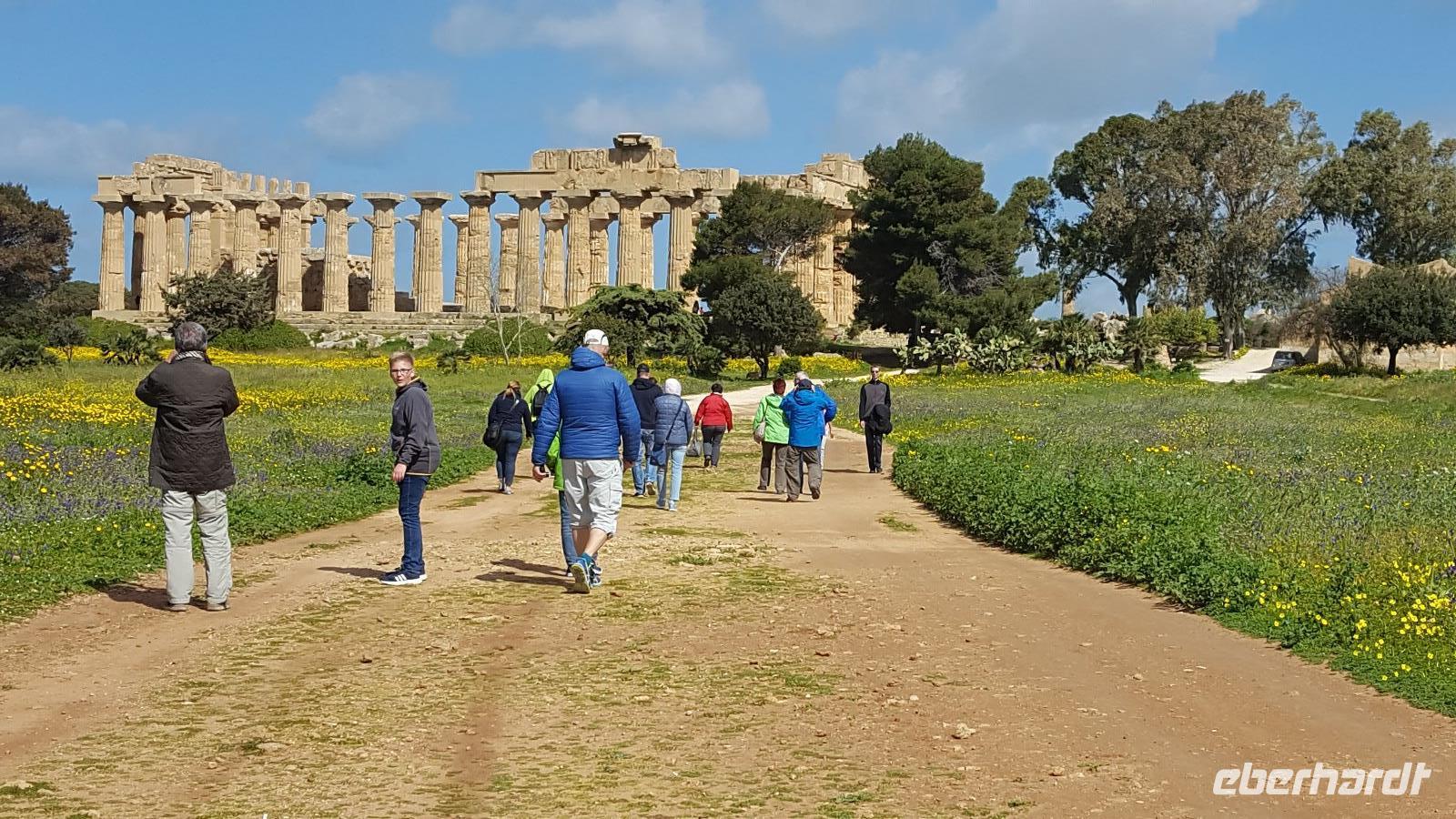 Anschließend ging es mit dem Bus in ungefähr 10 Minuten nach Selinunte, wo wir uns die Ausgrabungen und die Tempel C und E anschauten, die beeindruckend zwischen großen blühenden Wiesen hervorragten. Natürlich durfte hier das Gruppenbild nicht fehlen.