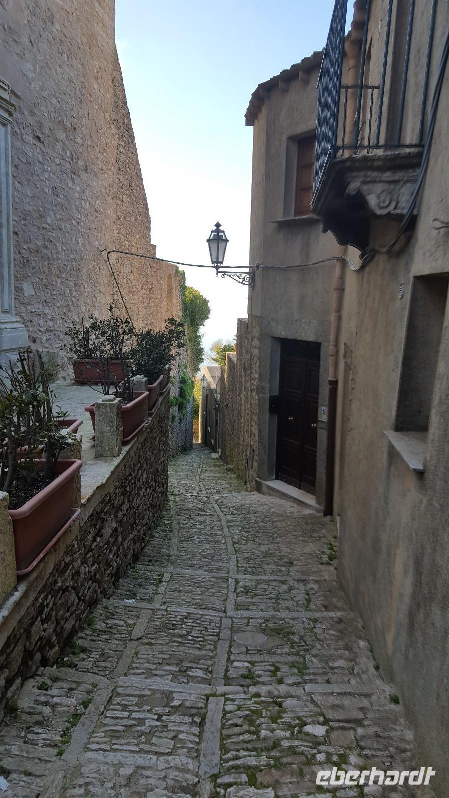 Nach 1h und erneuten zahlreichen Serpentinen erreichten wir Erice, ein kleiner Ort direkt auf einem Berg gelegen. Zusammen mit Desiree spazierten wir gemütlich durch die Gassen und hatten auch in einem kleinen Lädchen die Gelegenheit etwas Süßes für die Nerven zu kaufen oder einfach sich nur einen Espresso schmecken zu lassen.