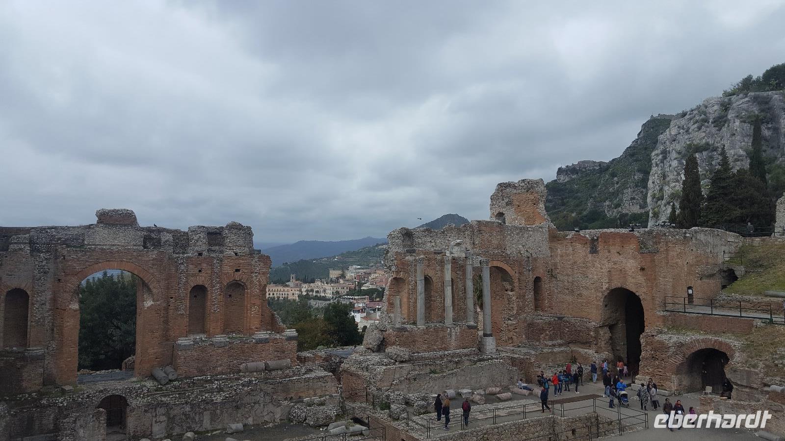 Taormina ist eine Stadt direkt auf einem Hügel gelegen und bietet einen fantastischen Blick auf das Ionische Meer. Bekannt ist es außerdem für sein griechisch-römisches Theater, in dem auch in der heutigen Zeit noch verschiedene Stücke aufgeführt werden. Wir genießen den Rundumblick und natürlich darf das ein oder andere Foto und Selfie nicht fehlen.